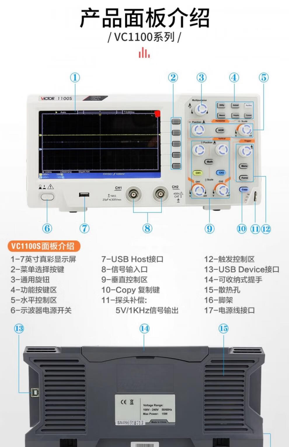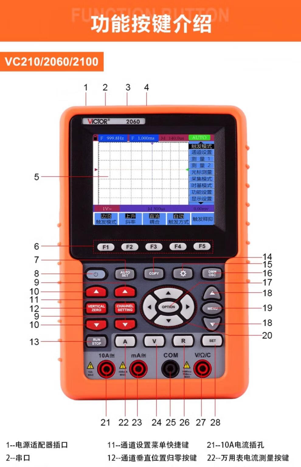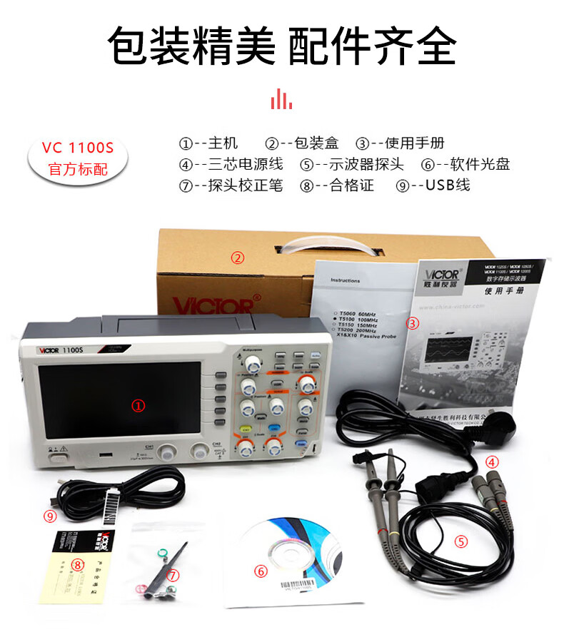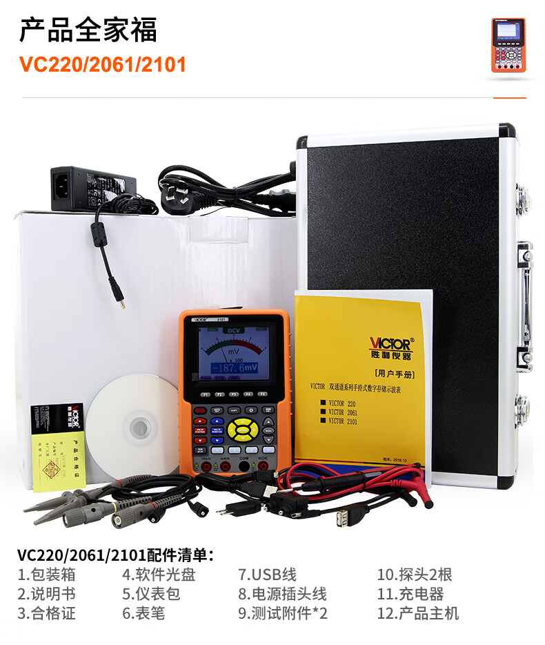 Handheld digital oscilloscope, portable mini auto repair instrument, high performance multi-function signal source VC2101 100MHz dual channel. Storage. RS232