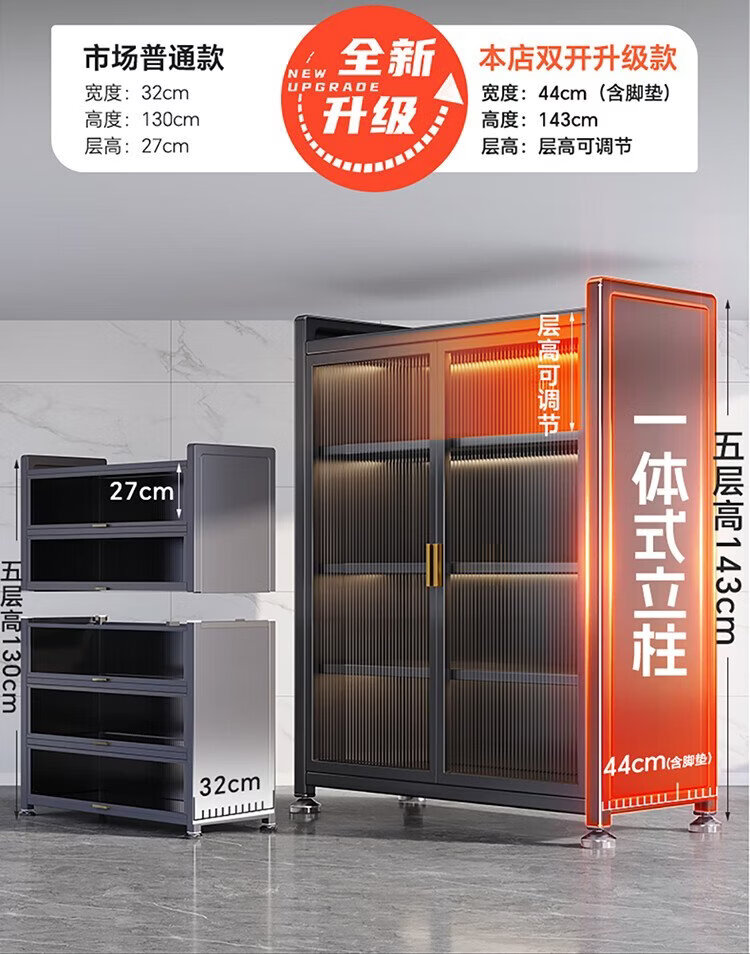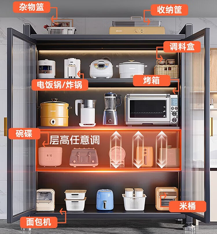 Shuaishi (shuaishi) kitchen storage rack floor-standing multi-layer storage rack microwave oven pot storage cabinet household multi-functional cabinet integrated bracket丨adjustable layer height丨super load-bearing gray 6 layers 120 long 42 deep