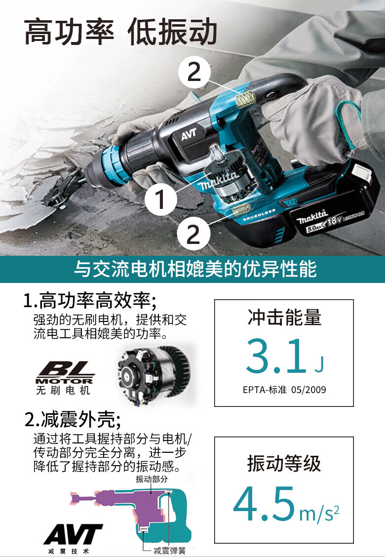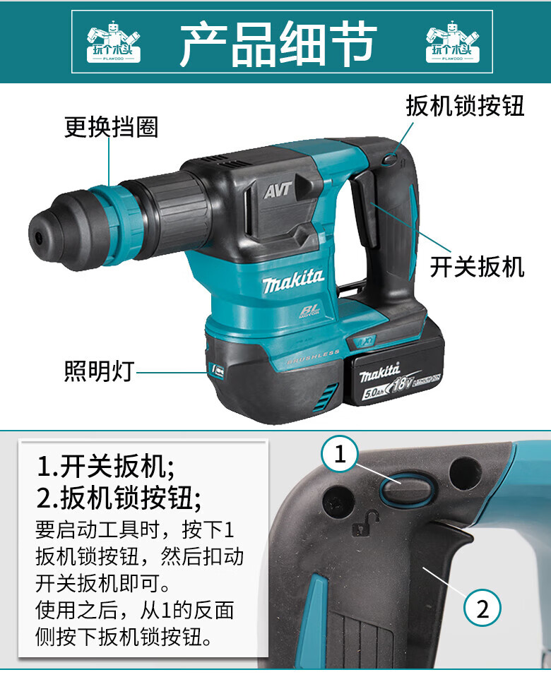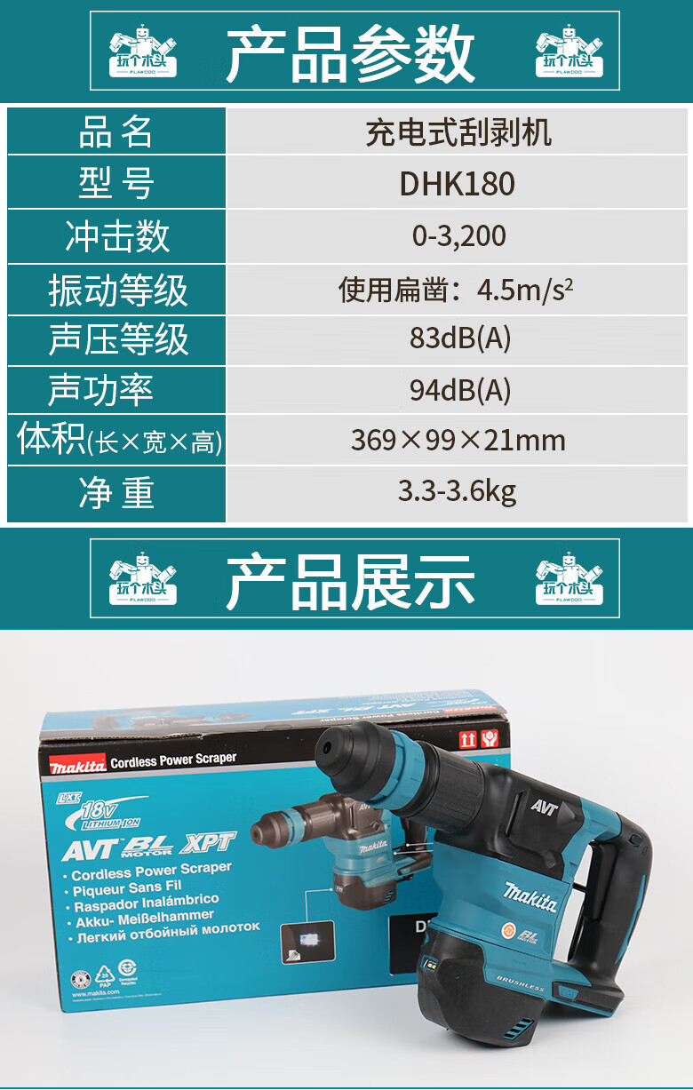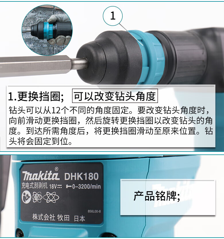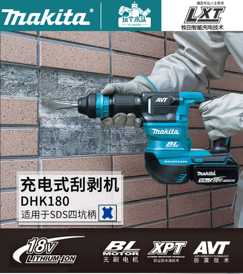 MAKITA Makita 18V brush rechargeable electric pick scraper industrial grade slotting wall breaking power tool DHK180Z bare metal