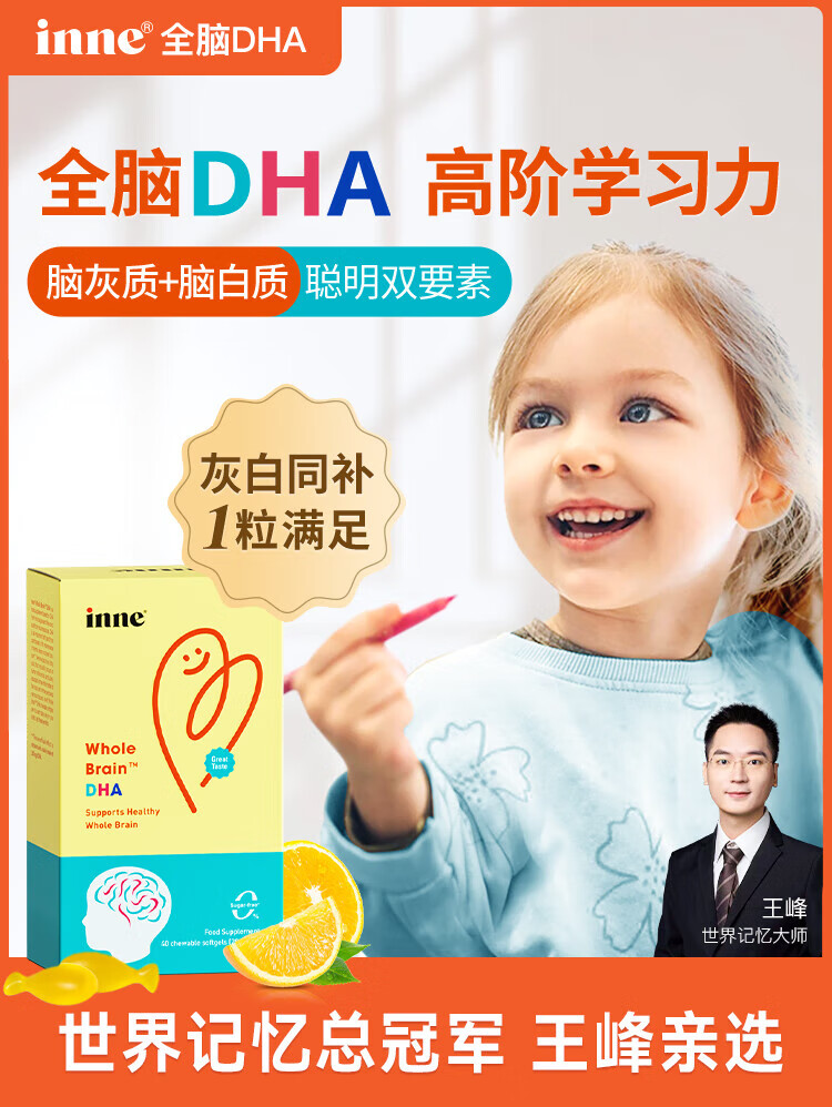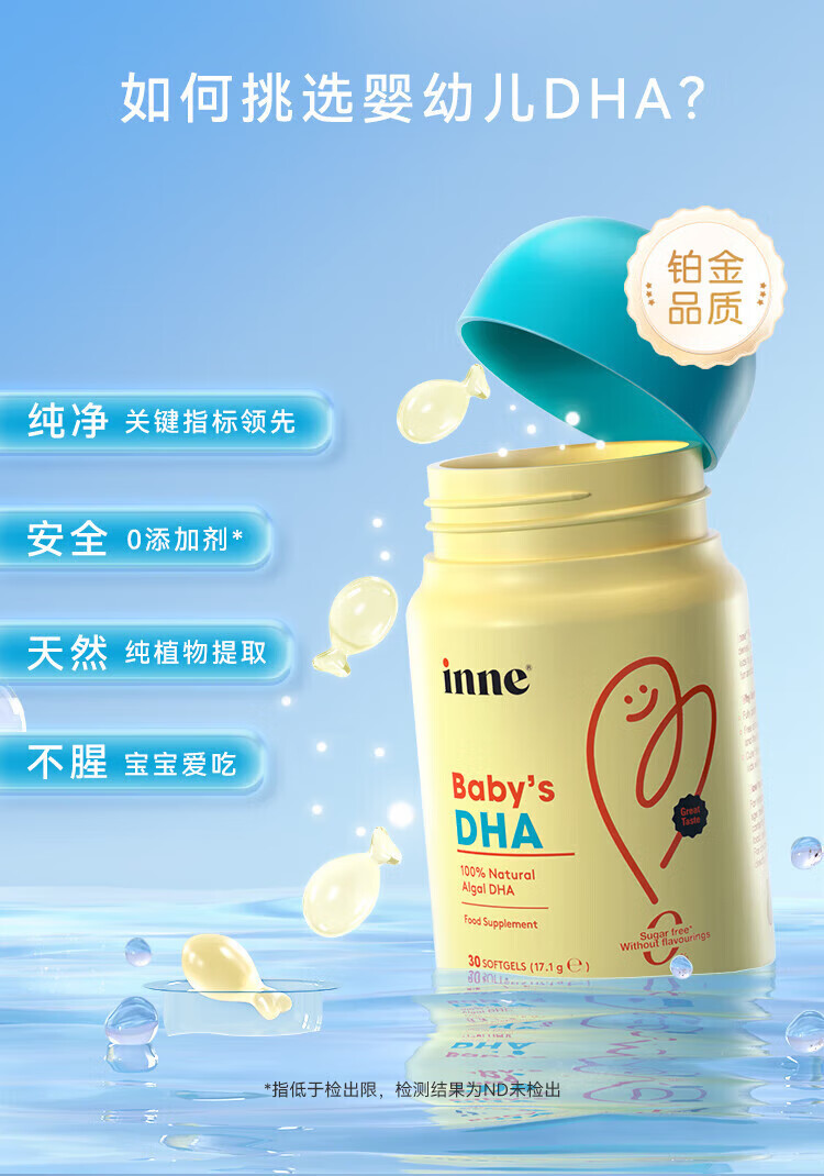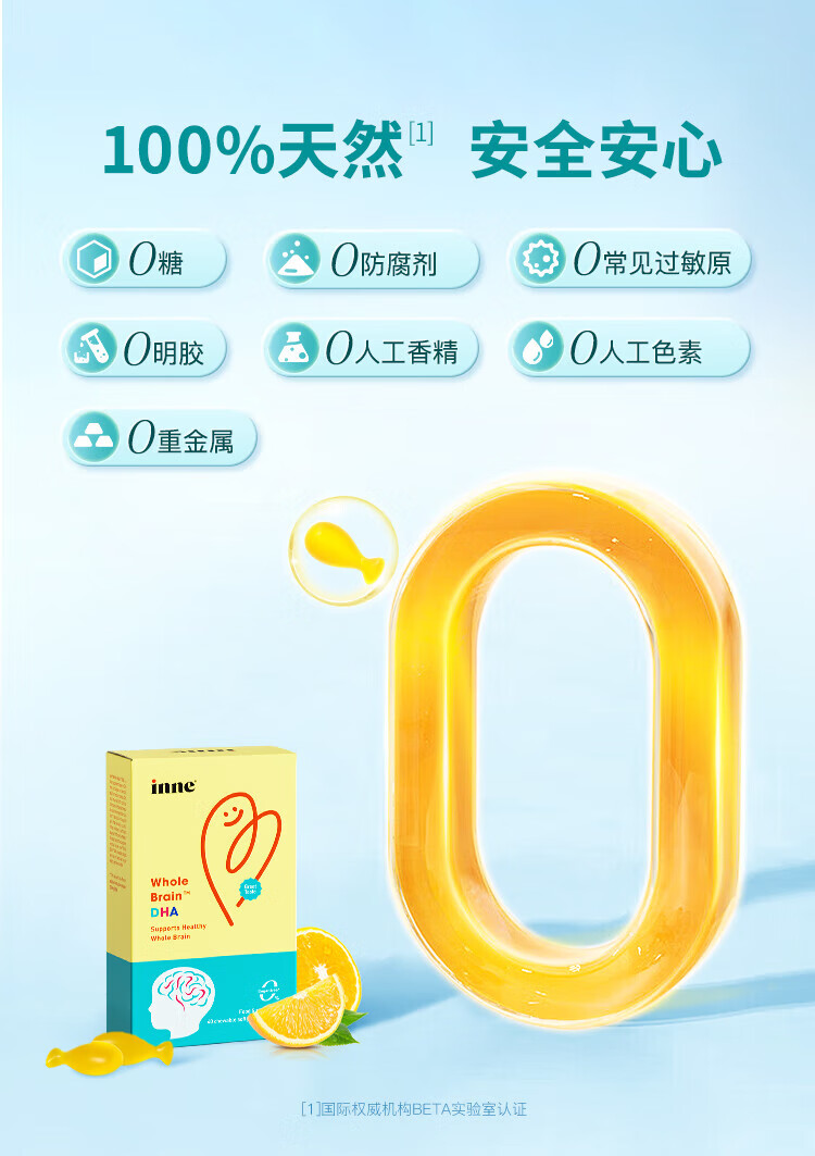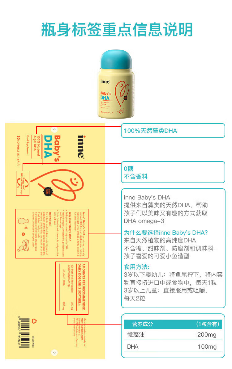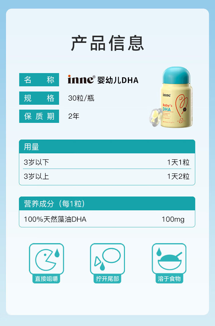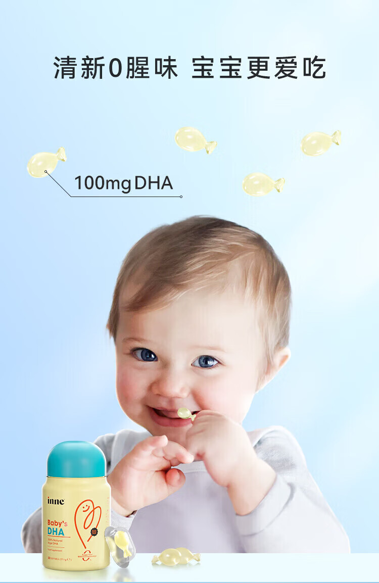 Inne for you dha infants 0-3 years old dha children 3-12 years old algae oil DHA children high purity 0 added calcium magnesium zinc strawberry flavor trial pack 60ml*1 bottle