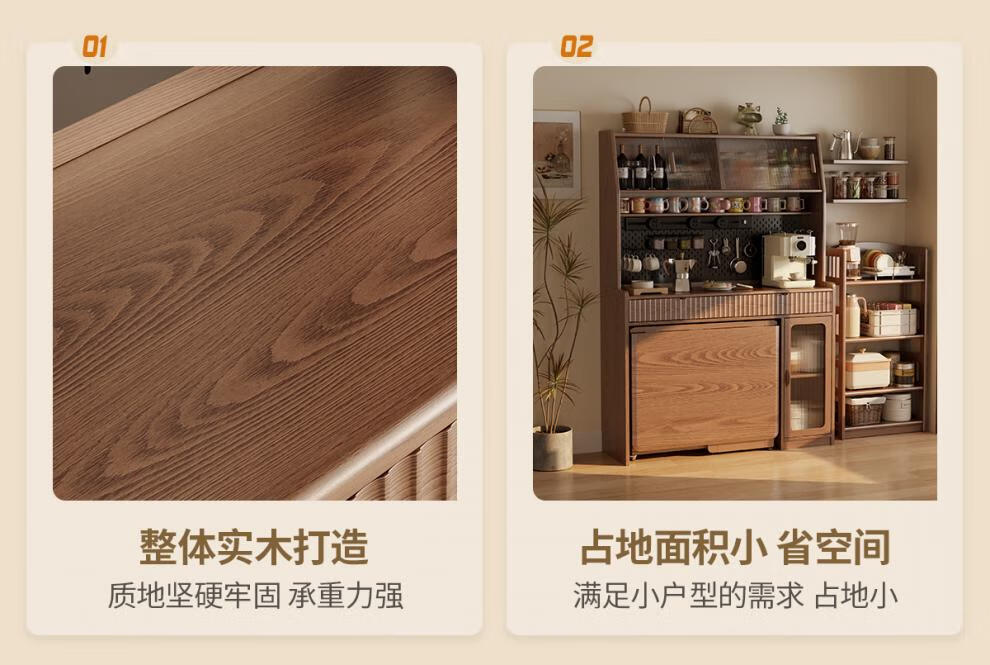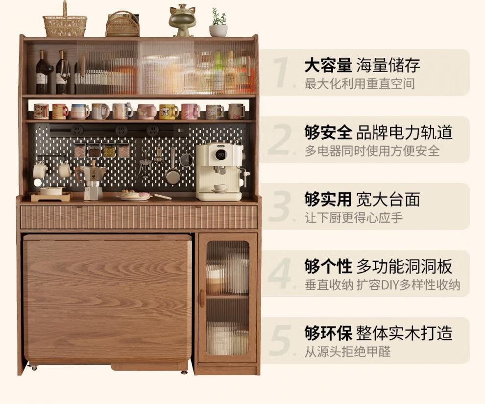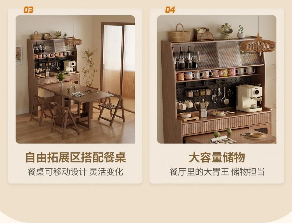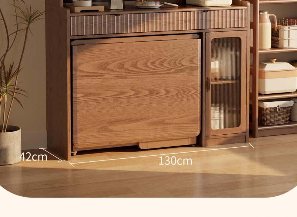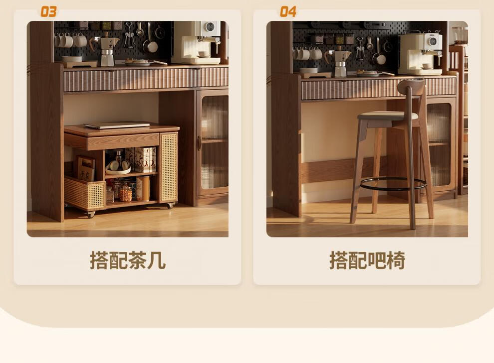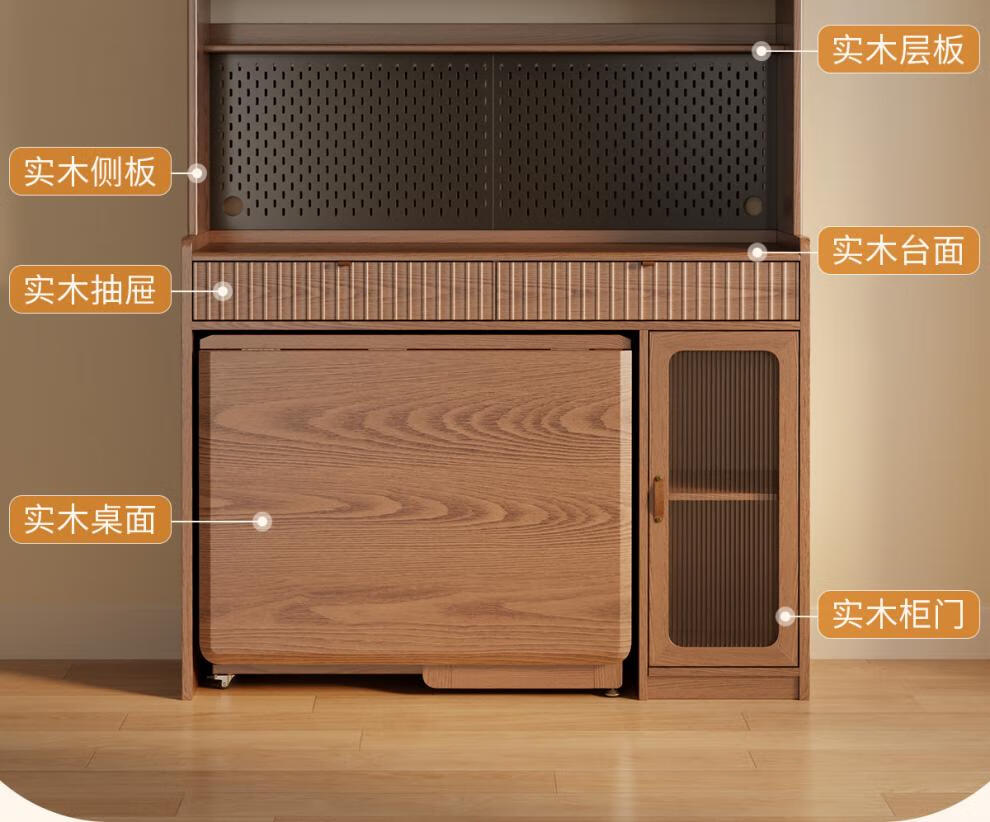 He Jiagong solid wood sideboard dining table integrated wall storage cabinet wine cabinet modern simple storage cabinet kitchen with dining table cabinet sideboard 120CM-walnut color