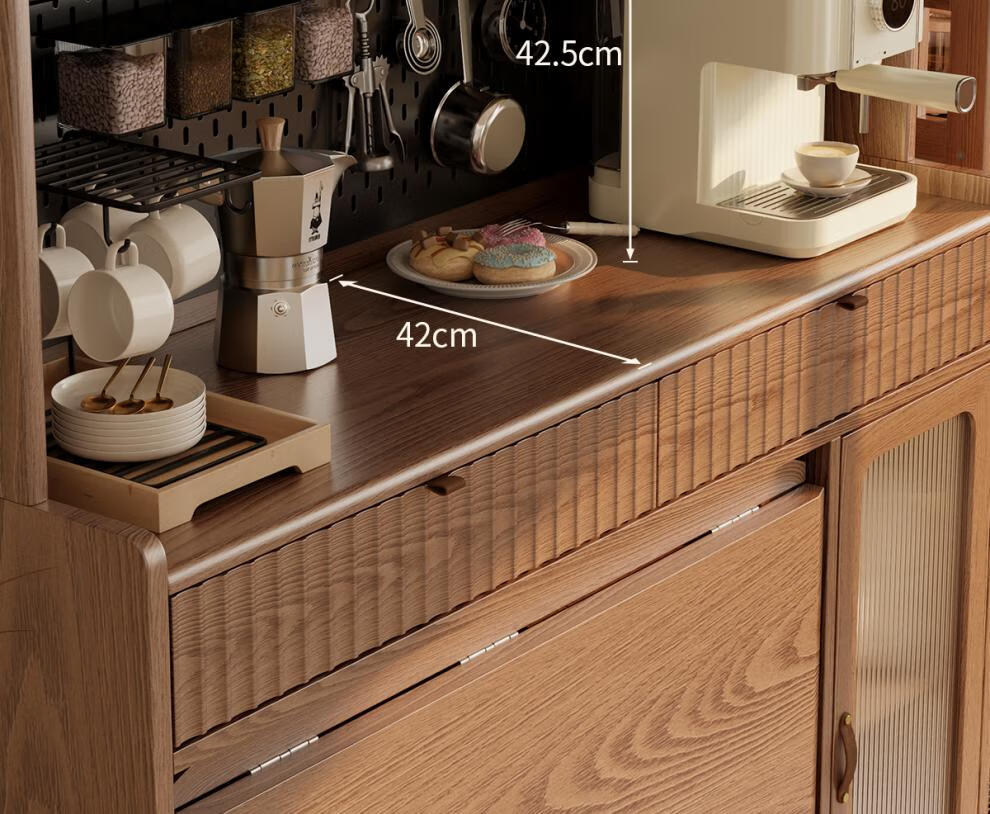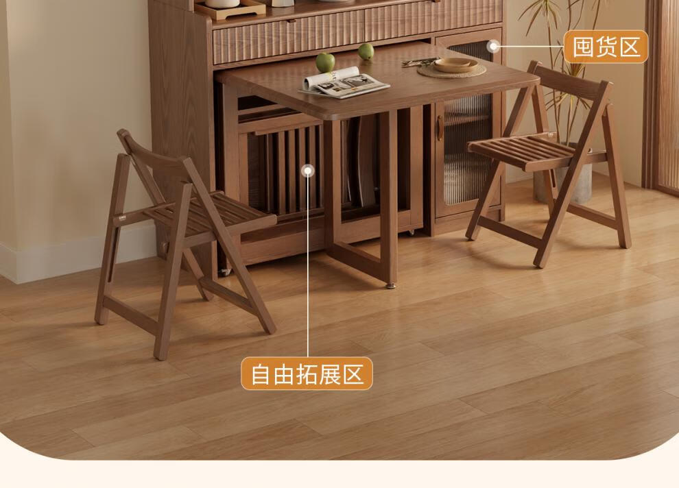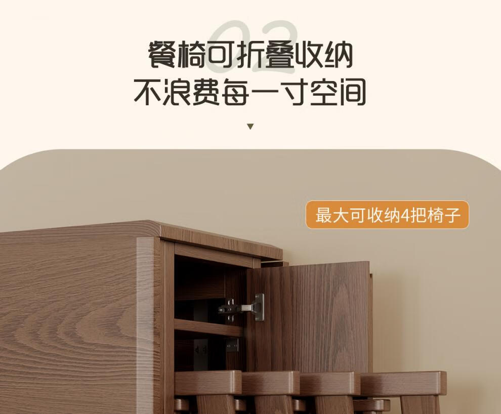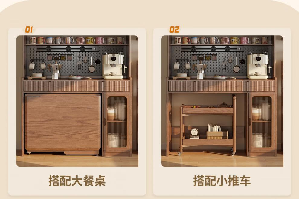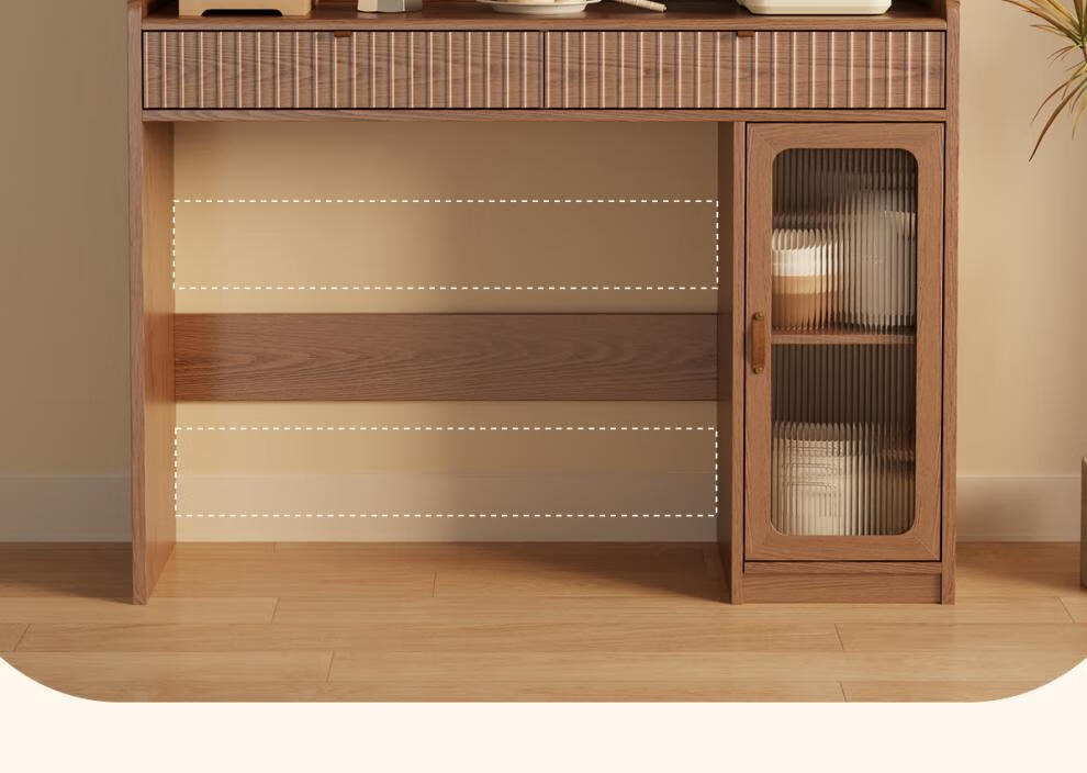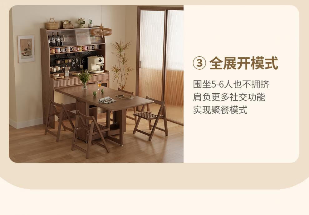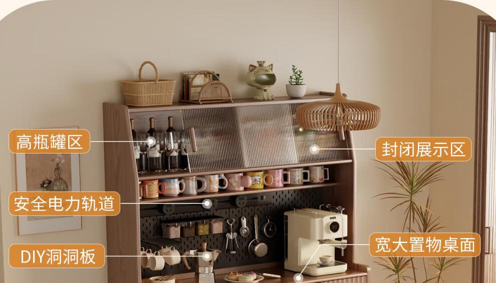 He Jiagong solid wood sideboard dining table integrated wall storage cabinet wine cabinet modern simple storage cabinet kitchen with dining table cabinet sideboard 120CM-walnut color