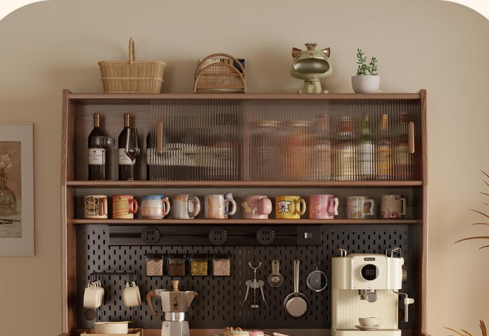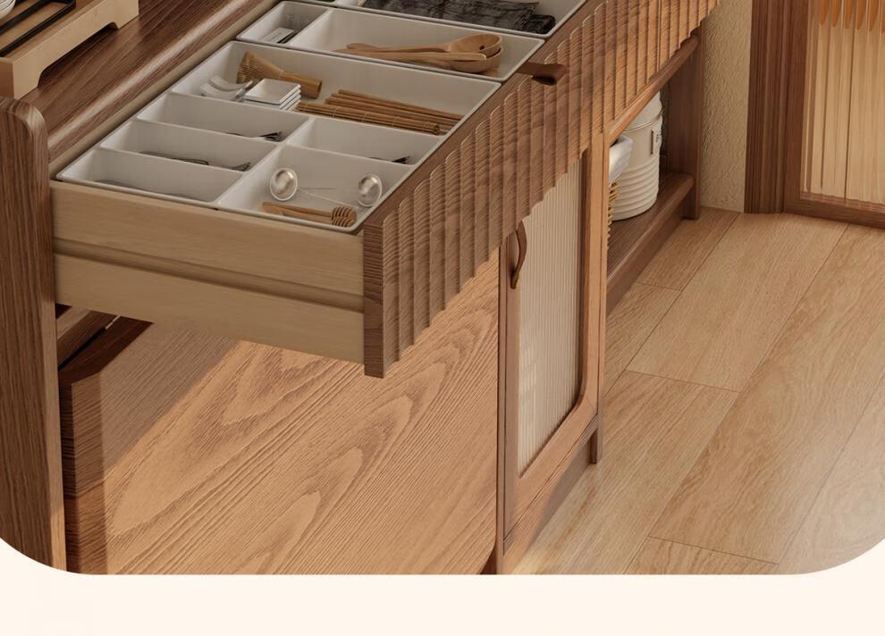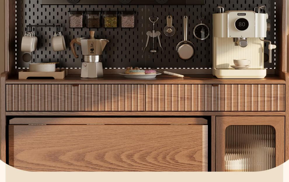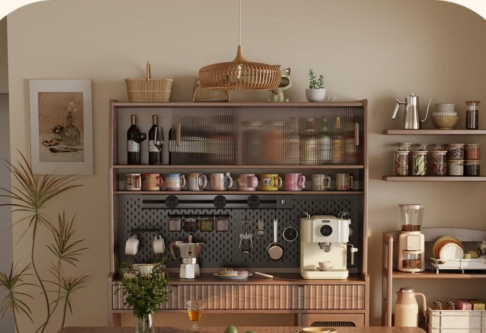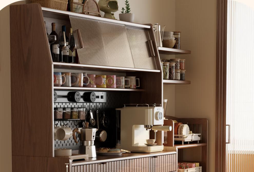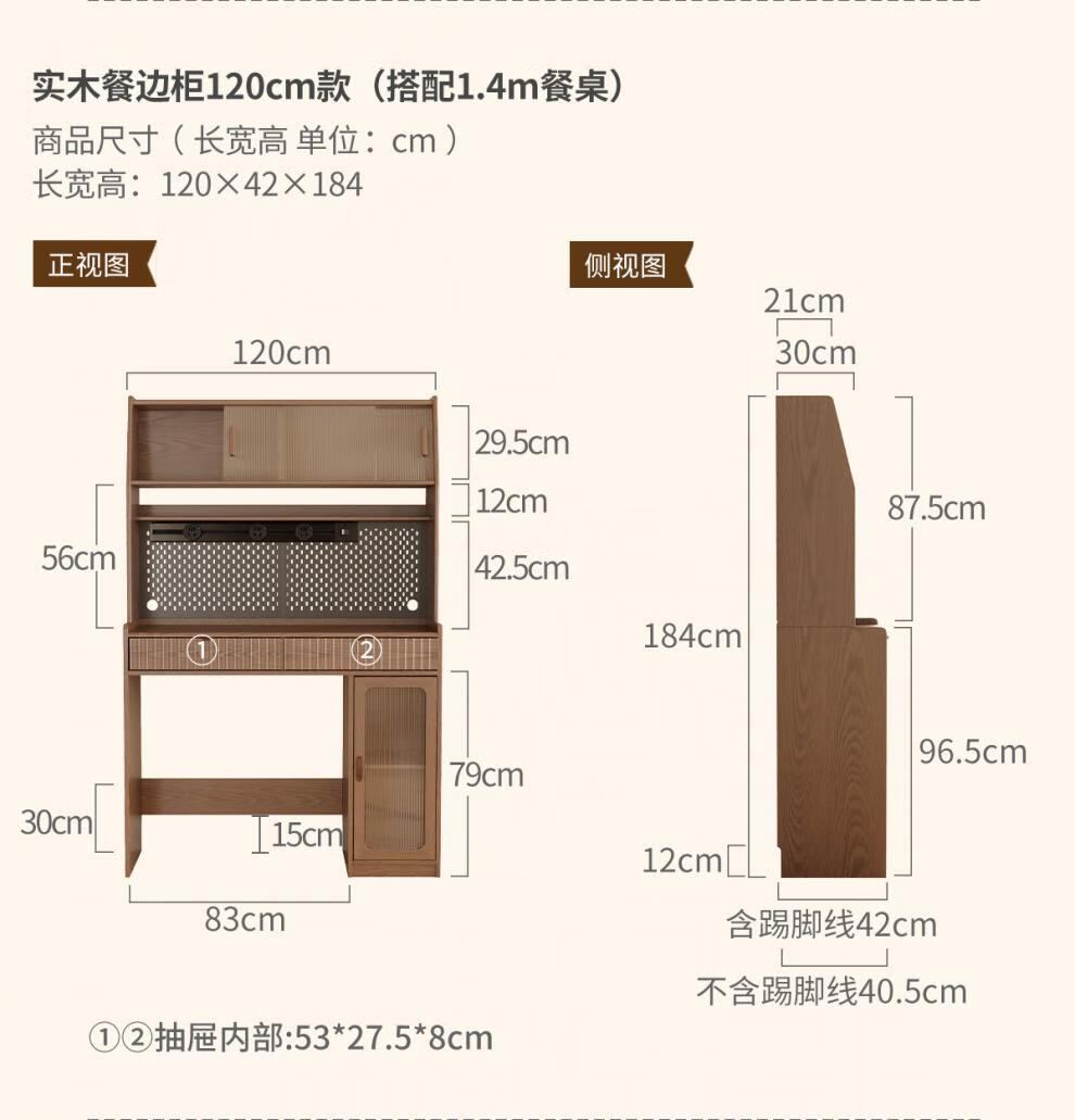 He Jiagong solid wood sideboard dining table integrated wall storage cabinet wine cabinet modern simple storage cabinet kitchen with dining table cabinet sideboard 120CM-walnut color