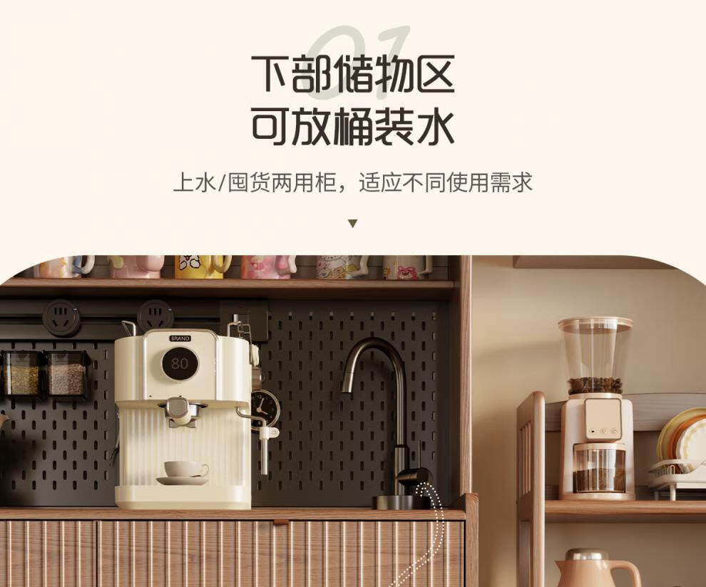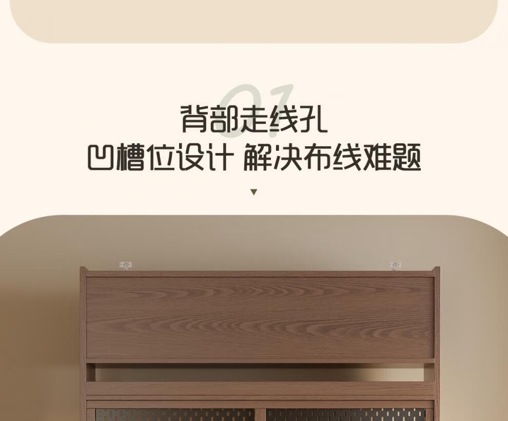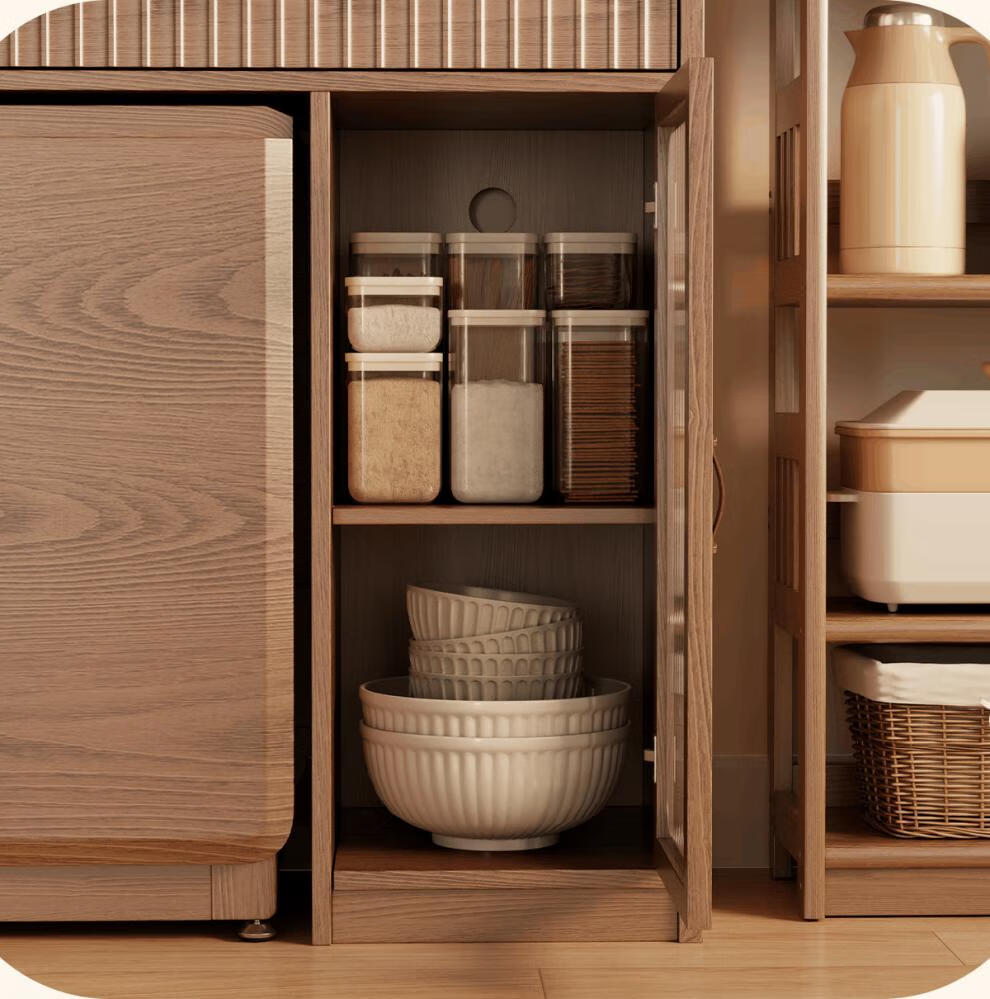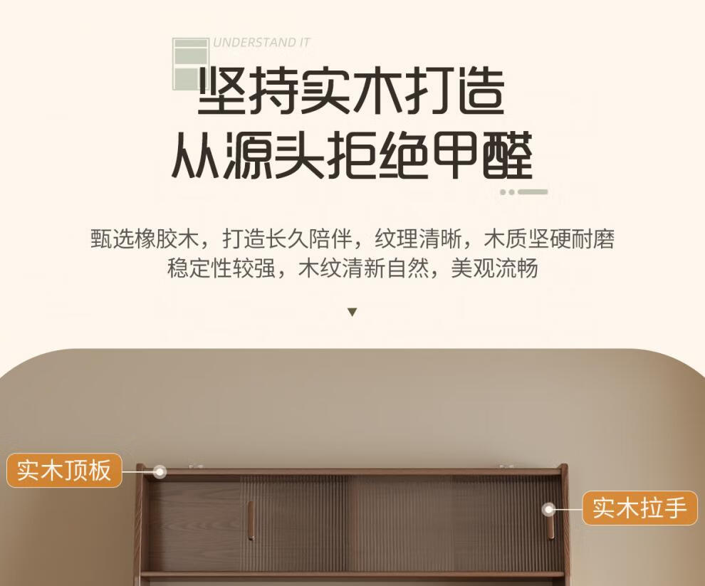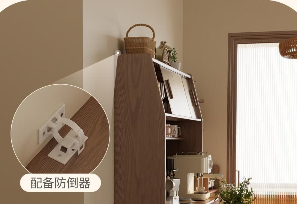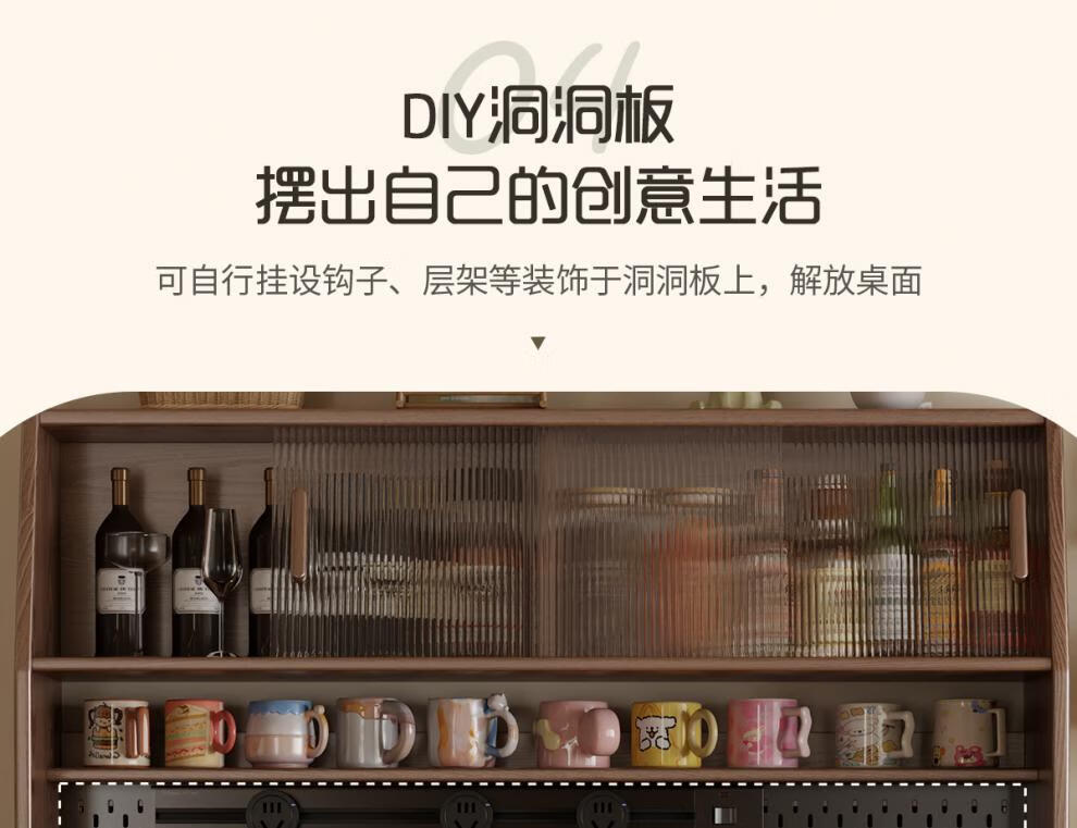 He Jiagong solid wood sideboard dining table integrated wall storage cabinet wine cabinet modern simple storage cabinet kitchen with dining table cabinet sideboard 120CM-walnut color