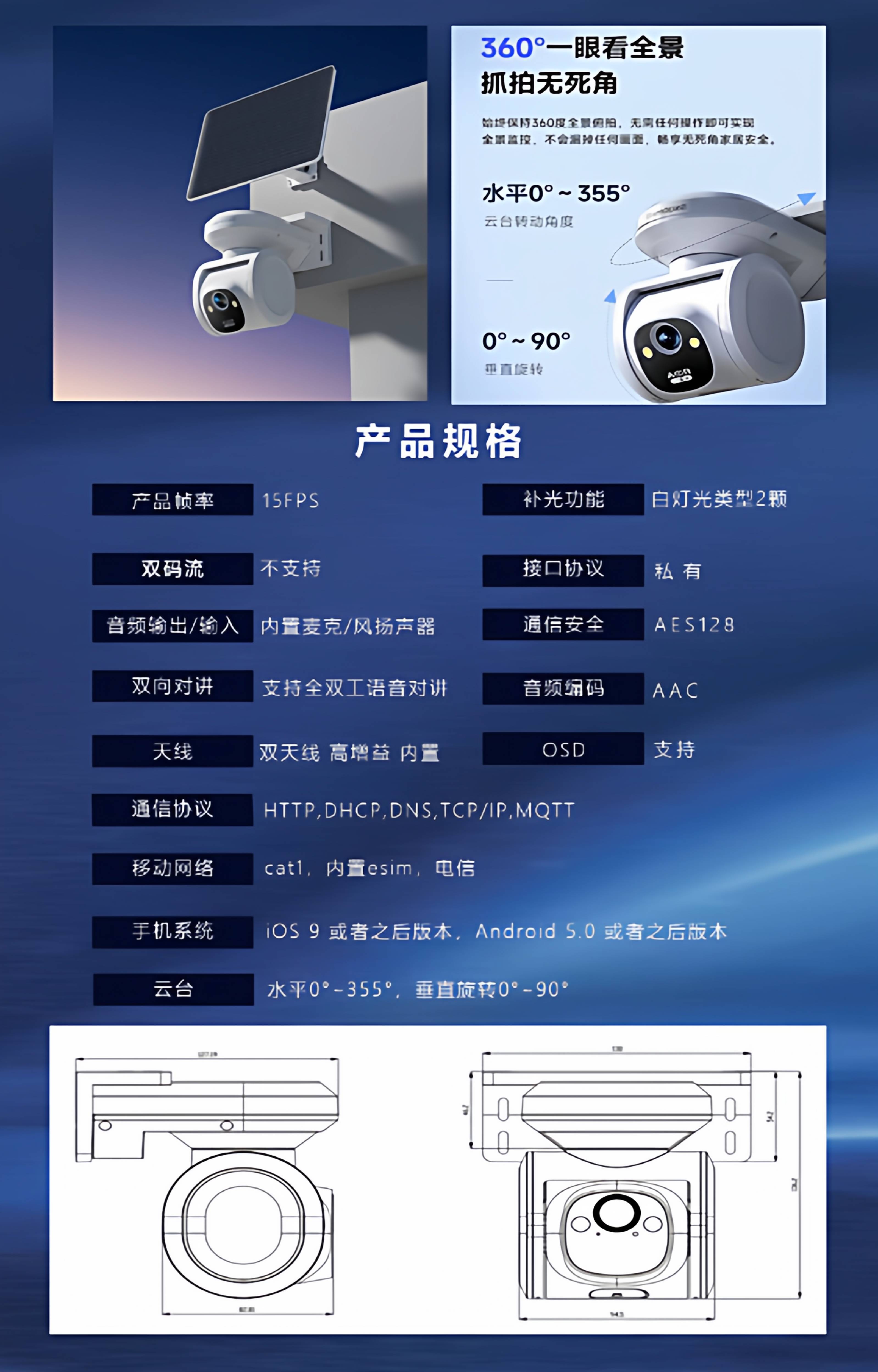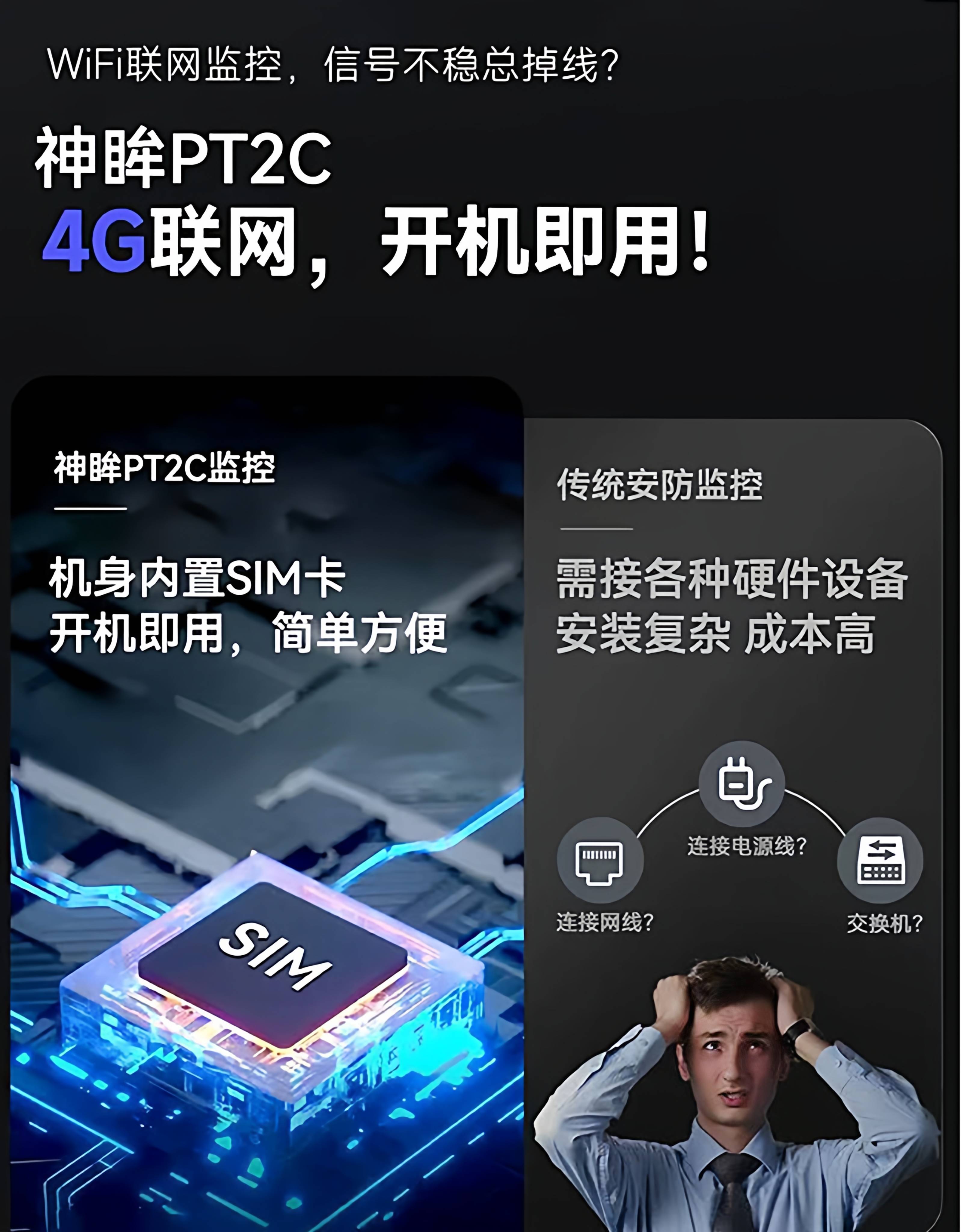 RIHAO Shenmo PT2C surveillance camera, plug-in-free, solar-powered outdoor monitoring, 24-hour recording, built-in 4G traffic card, PT2C 400W pixel white, large quantity, favorable customer service for negotiation