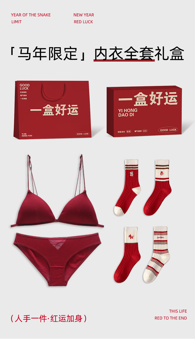 Miss Polly's 2026 zodiac year of the horse animal year clothes red underwear and underwear set for women and the year of the horse gift for girls, practical and high-end sense 1. The animal year of the underwear red suit (with 2 pairs of horse year socks type A) M (34/75ABC universal)