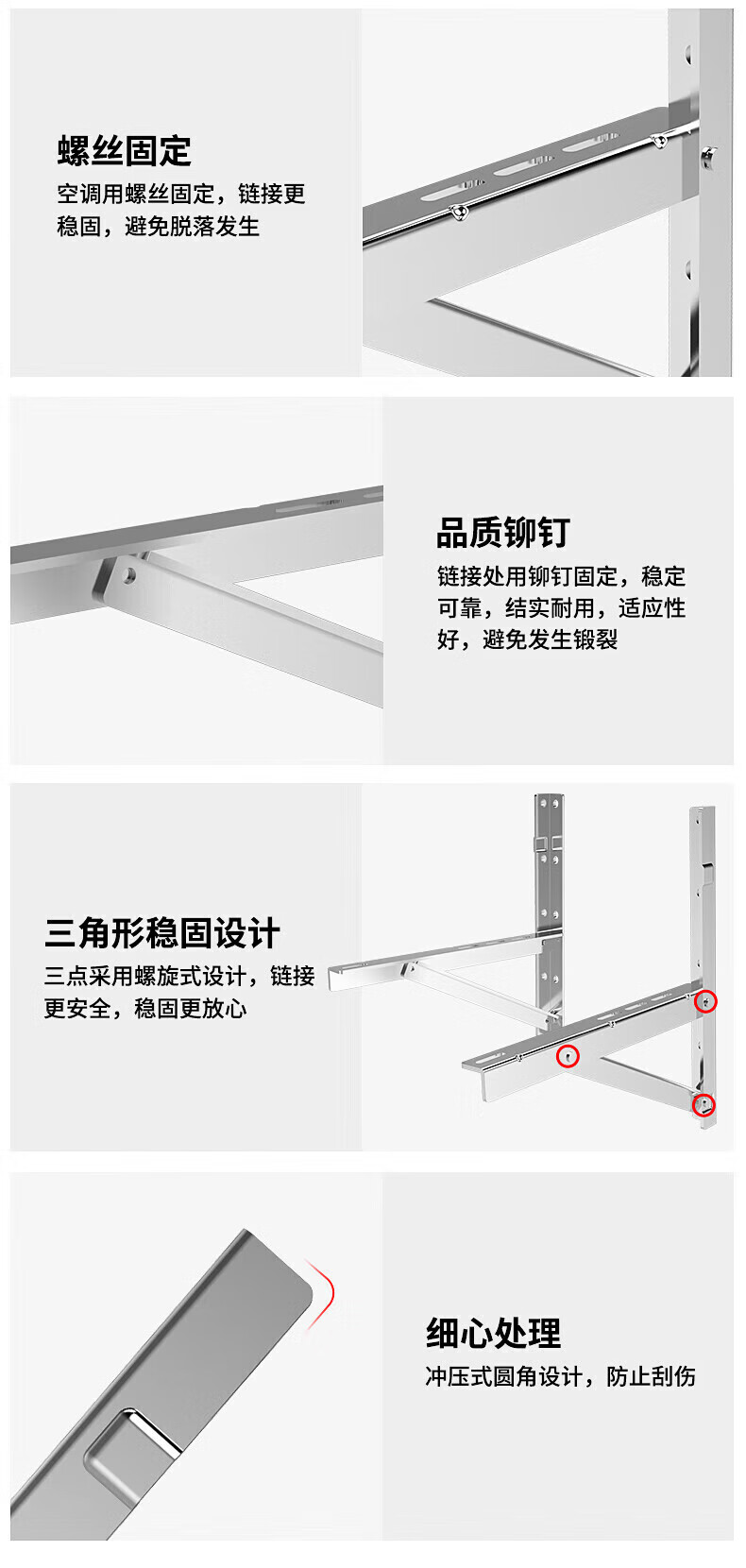Fantasy thickened 304 stainless steel air conditioner outdoor unit bracket is suitable for 15P2P3P shelf 115P standard stainless steel 2P thickened stainless steel thickness 1 point 8MM bearing