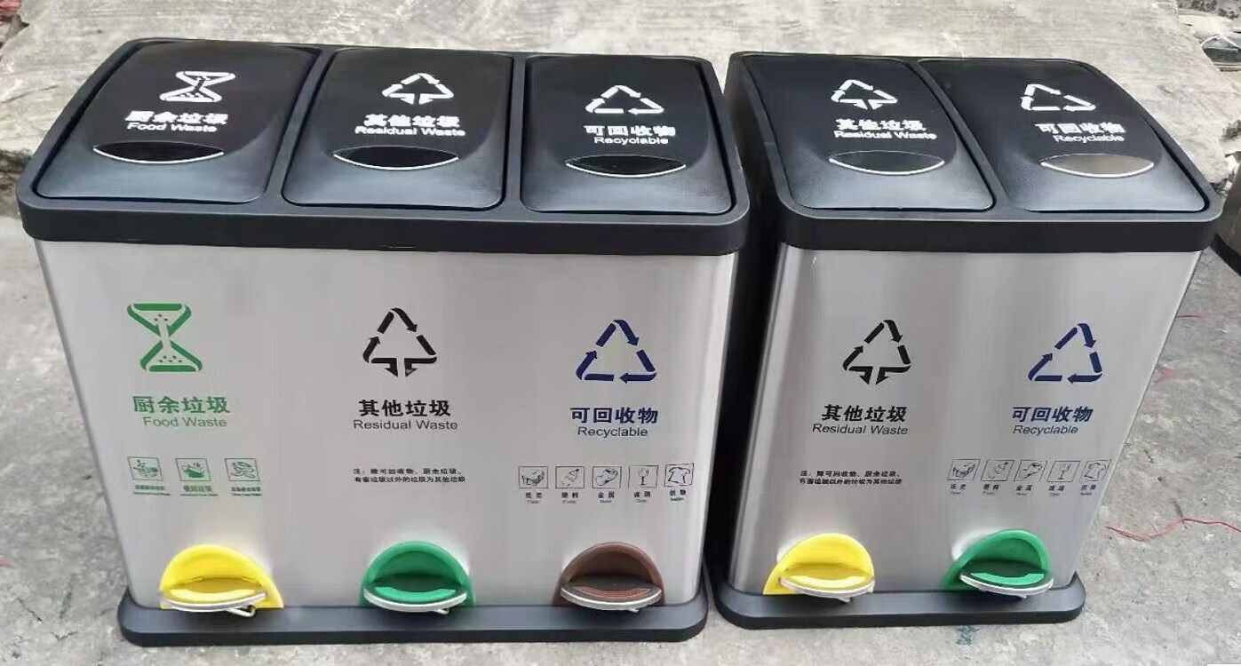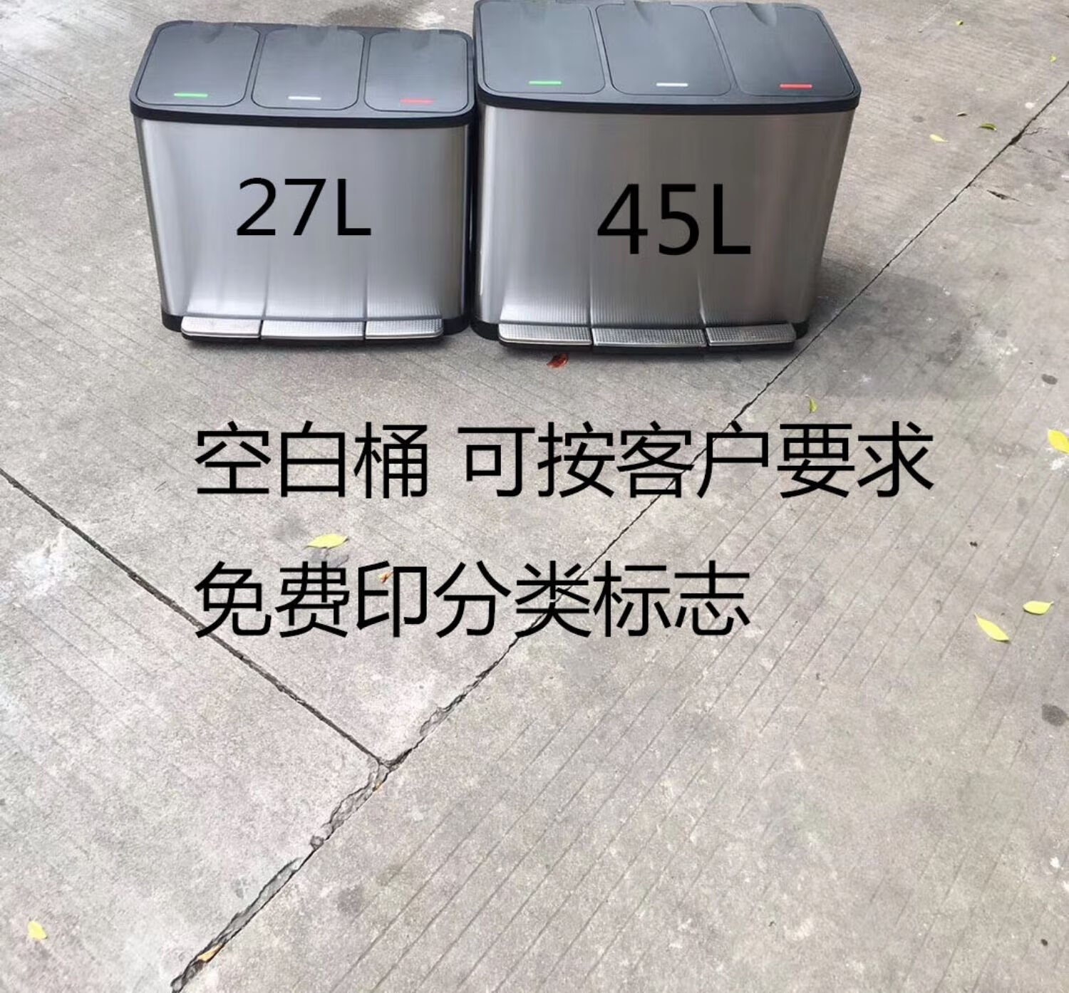 Free shipping for classified garbage stainless steel foot bucket elevator entrance double bucket three-in-one indoor office corridor large capacity 27L general ticket