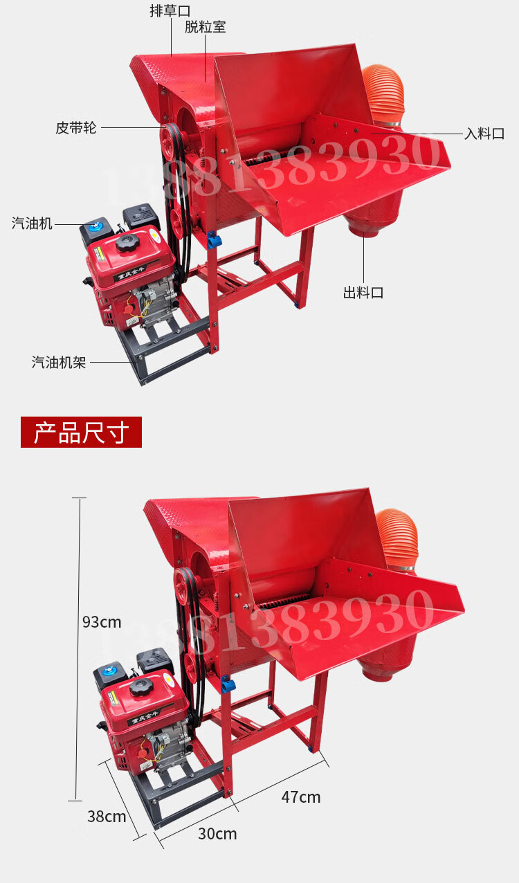 Haimingxing rapeseed threshing machine wheat threshing machine soybean sorghum rice multifunctional rice threshing machine threshing machine red rapeseed threshing machine bare metal