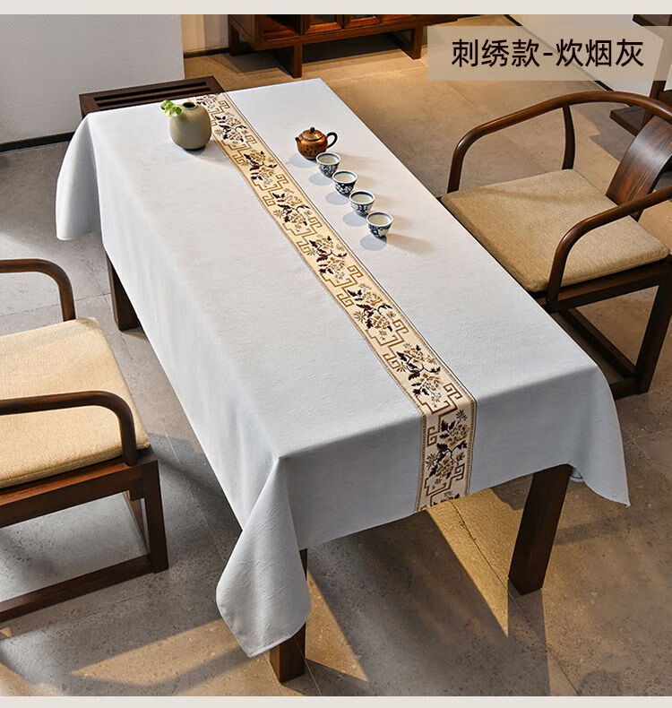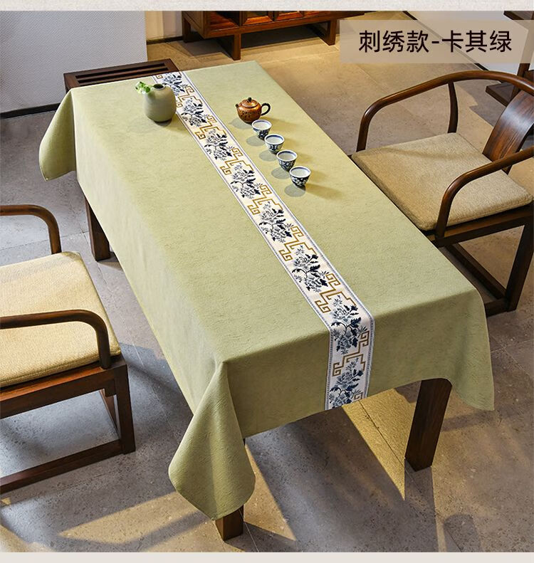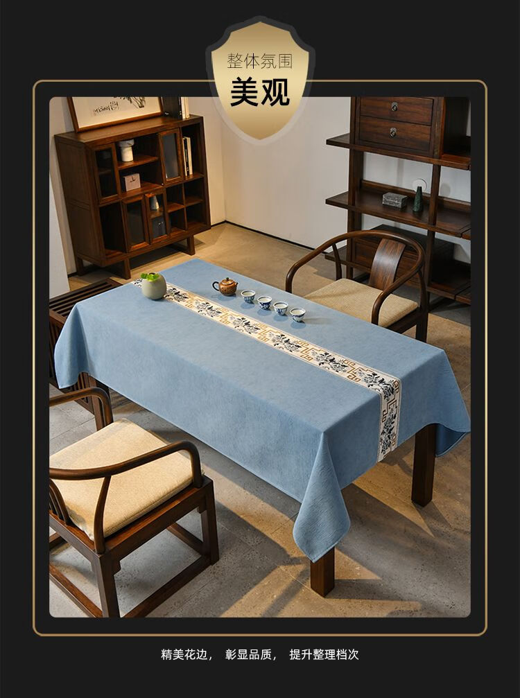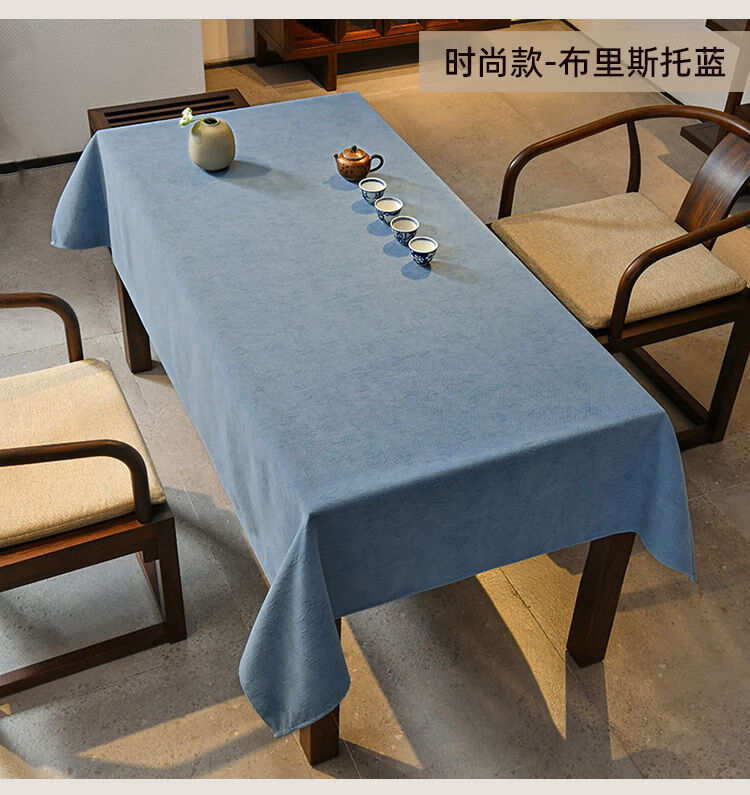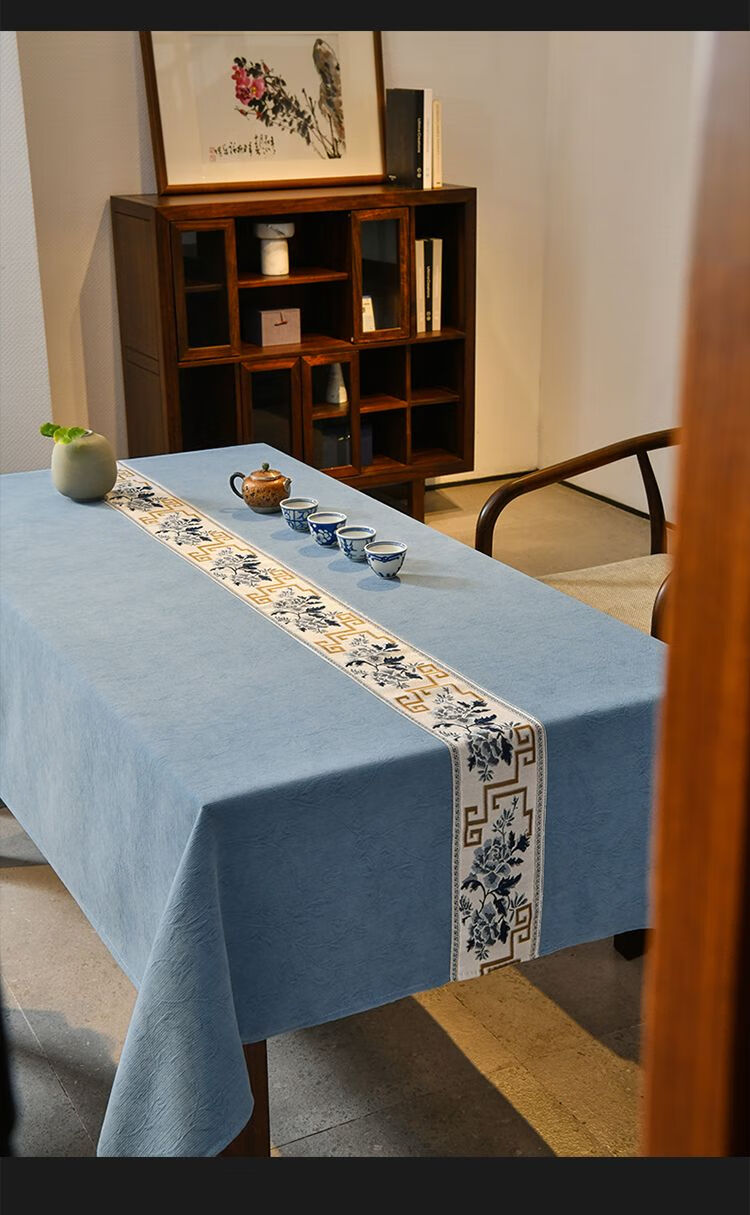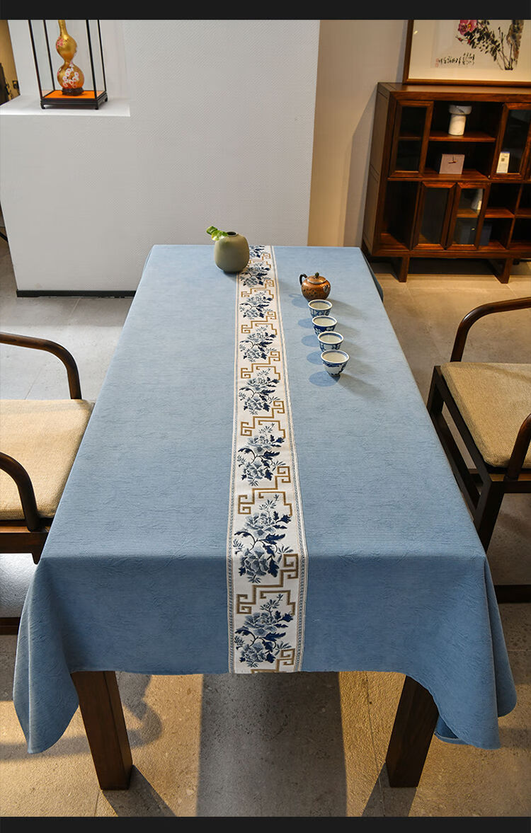 Fantasy tea table fabric long tea tablecloth dining table waterproof Zen style washable and stain-resistant rectangular conference table lace style-Brusto blue 1 piece Tablecloth size--130200
