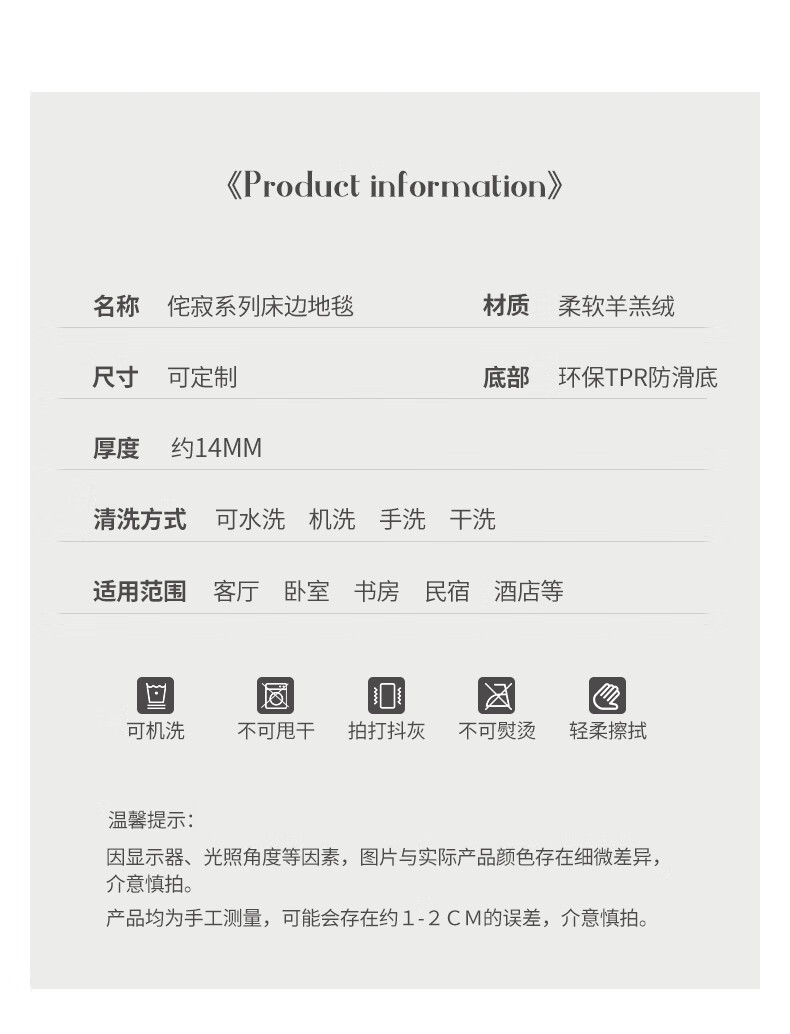 Shiganu carpet bedroom Japanese style wabi-sabi style ins bedside blanket bedside strip living room coffee table bay window room full floor mat TF-068R 60cm*160cm