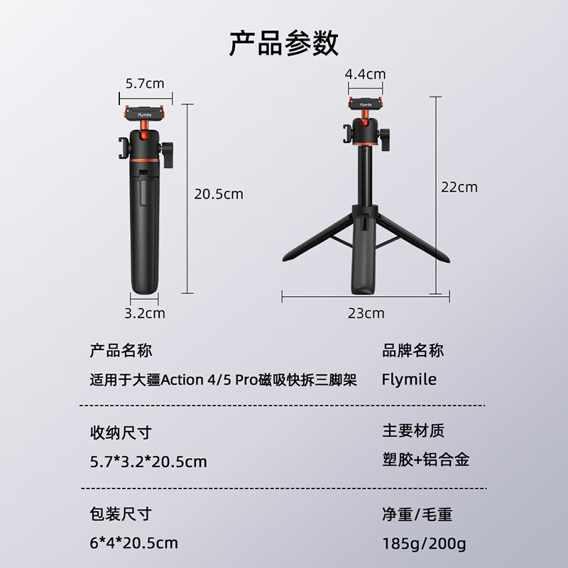 FLYMILE is suitable for DJI osmo Action6/5Pro/4 sports camera magnetic quick-release handheld floor-standing shadow stone ACE pro full-body shooting all-in-one extended live broadcast photography bracket Osmo Action6 magnetic quick-release tripod