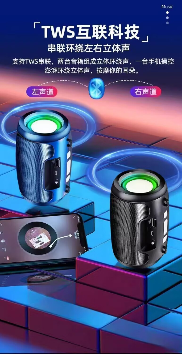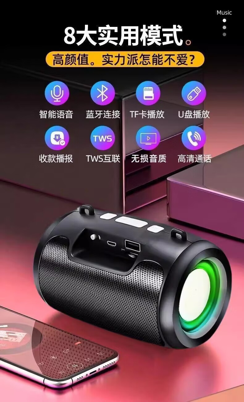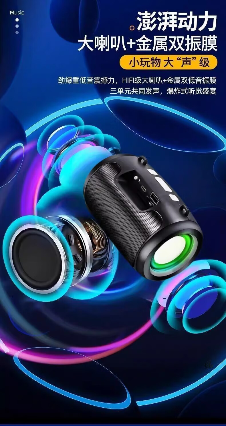 Vivo adapts to AI smart audio subwoofer Bluetooth high volume high quality speaker wirelessly comes with 8000 songs Patriotic Black Official丨Ready stock quick delivery Free charging cable smart Bluetooth connection/plug