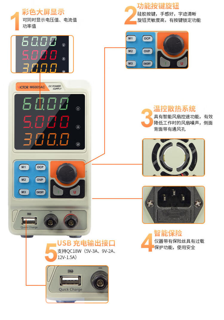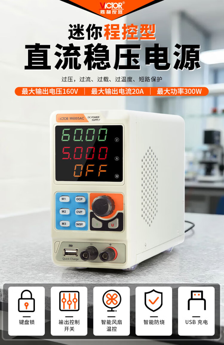 Victory Instrument (VICTOR) Mini Programmable Switching Power Supply Program-Controlled DC Regulated Power Supply Adjustable Mobile Phone Repair Voltage Regulator M1502AC (15V/2A/30W)