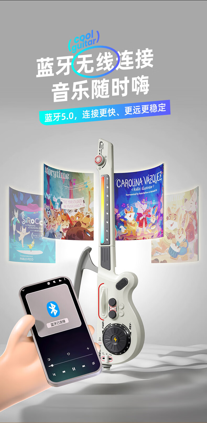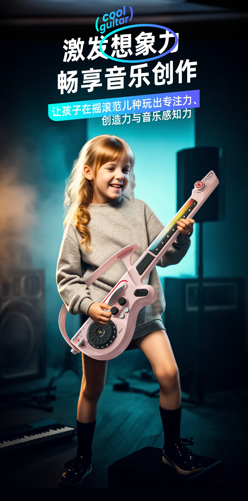 New Multifunctional Guitar Simulation Stringless Foldable Bluetooth Connected Smart Bass Children's Instrument New Year Gift Multifunctional Guitar Bluetooth Version Pink