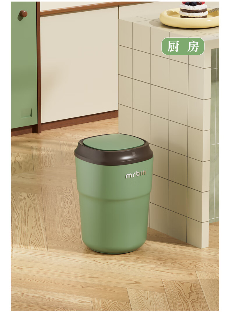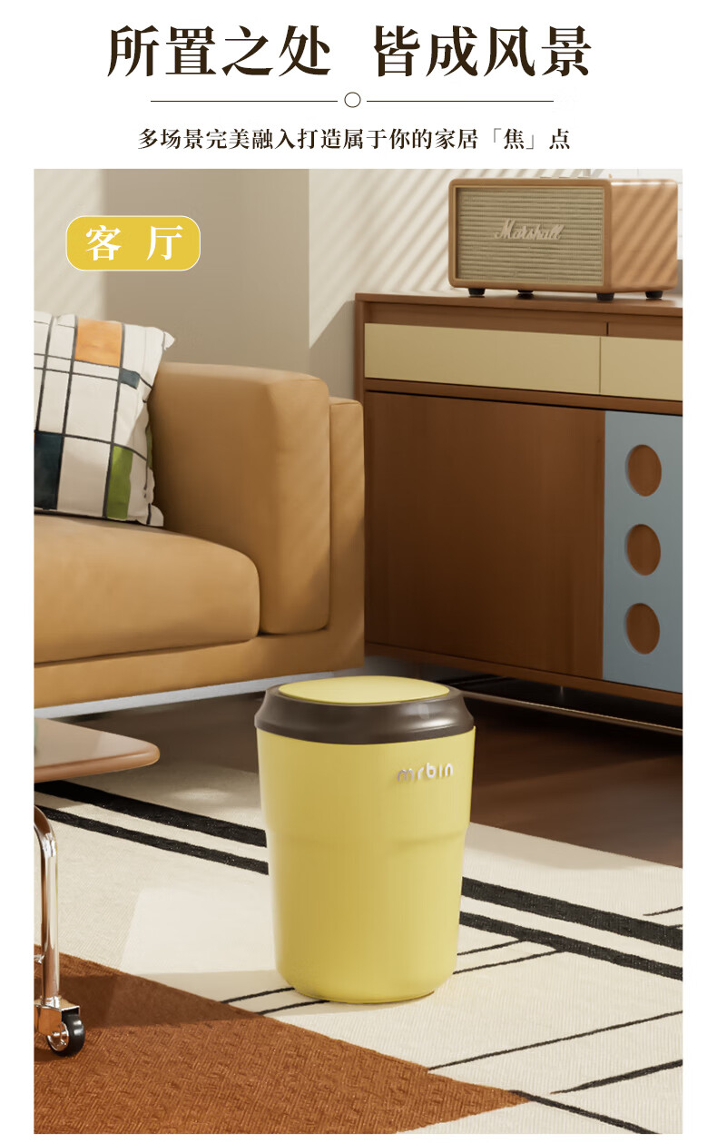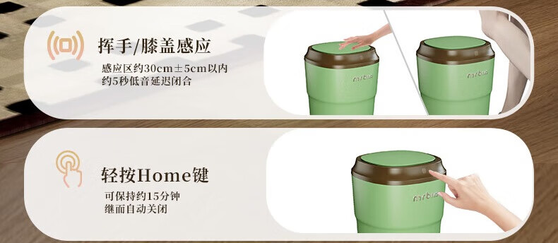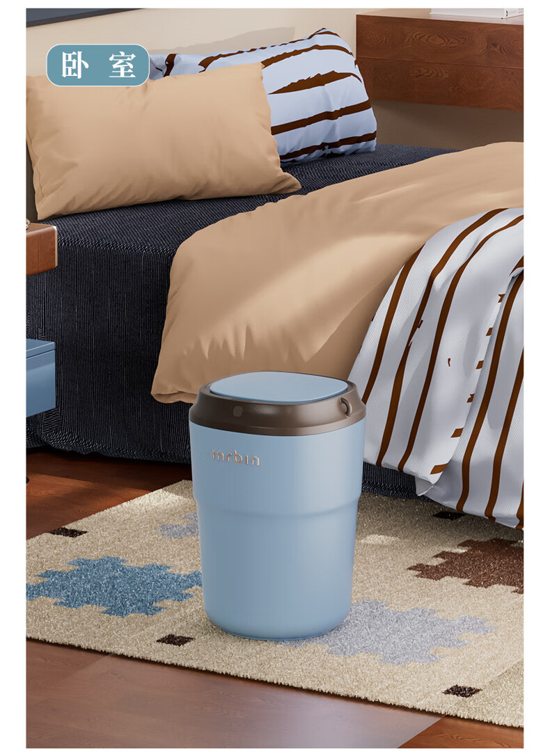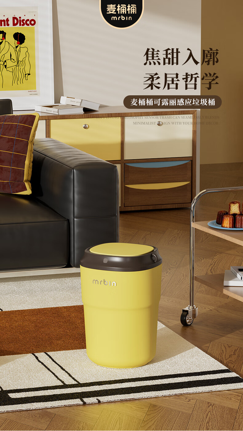 Wheat bucket (Mr.Bin) Bauhaus smart induction trash can for living room and bedroom, automatic electric creative, high-looking, high-end light luxury with lid, milk coffee bucket, Fuli White Brown 12L