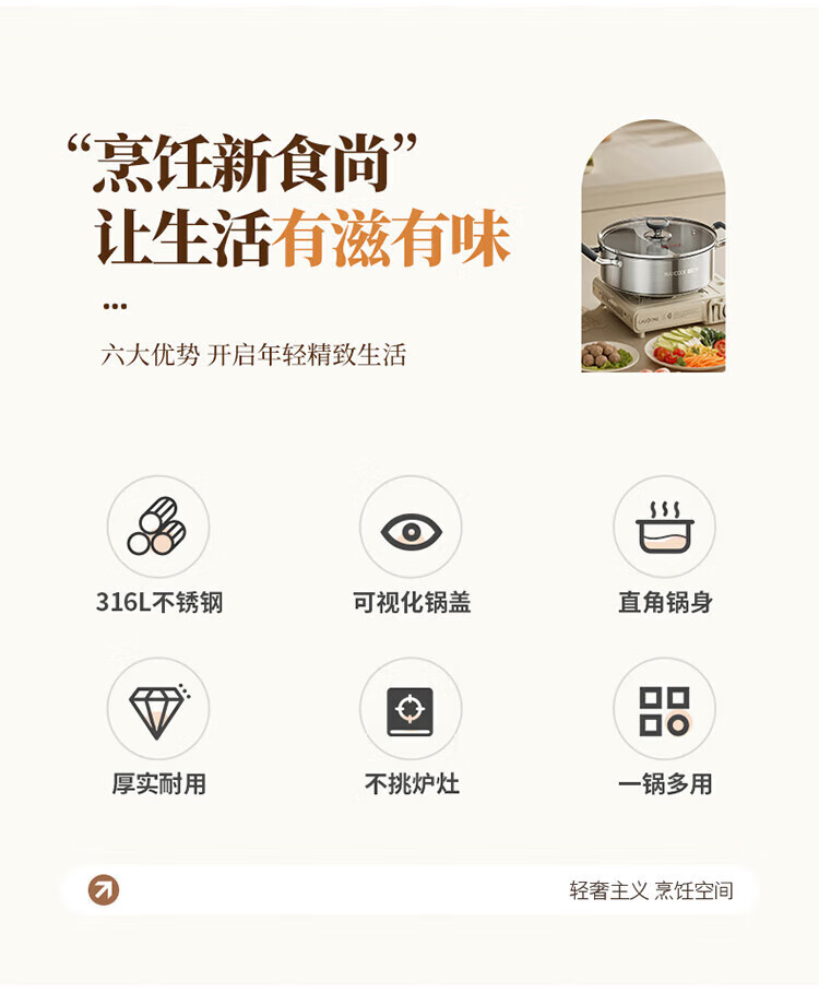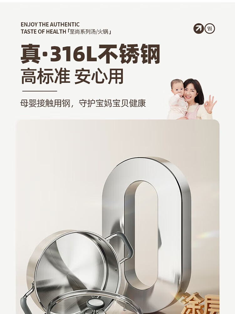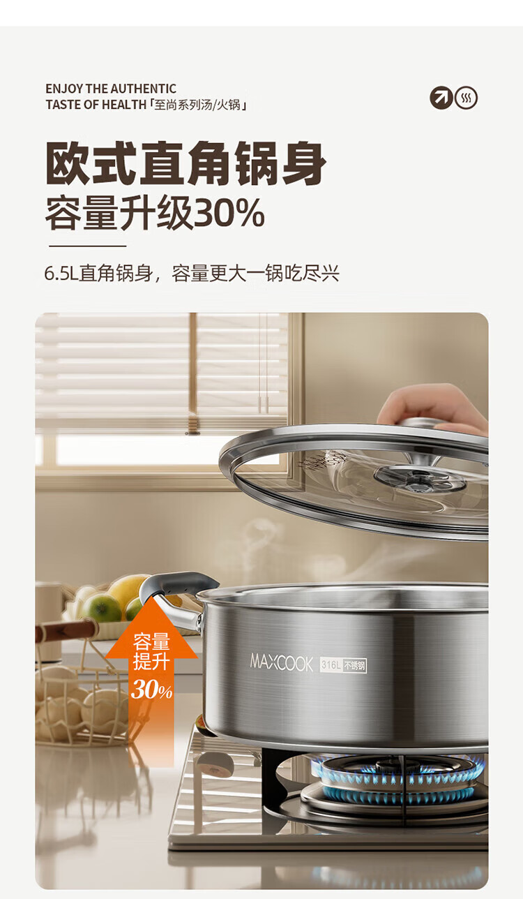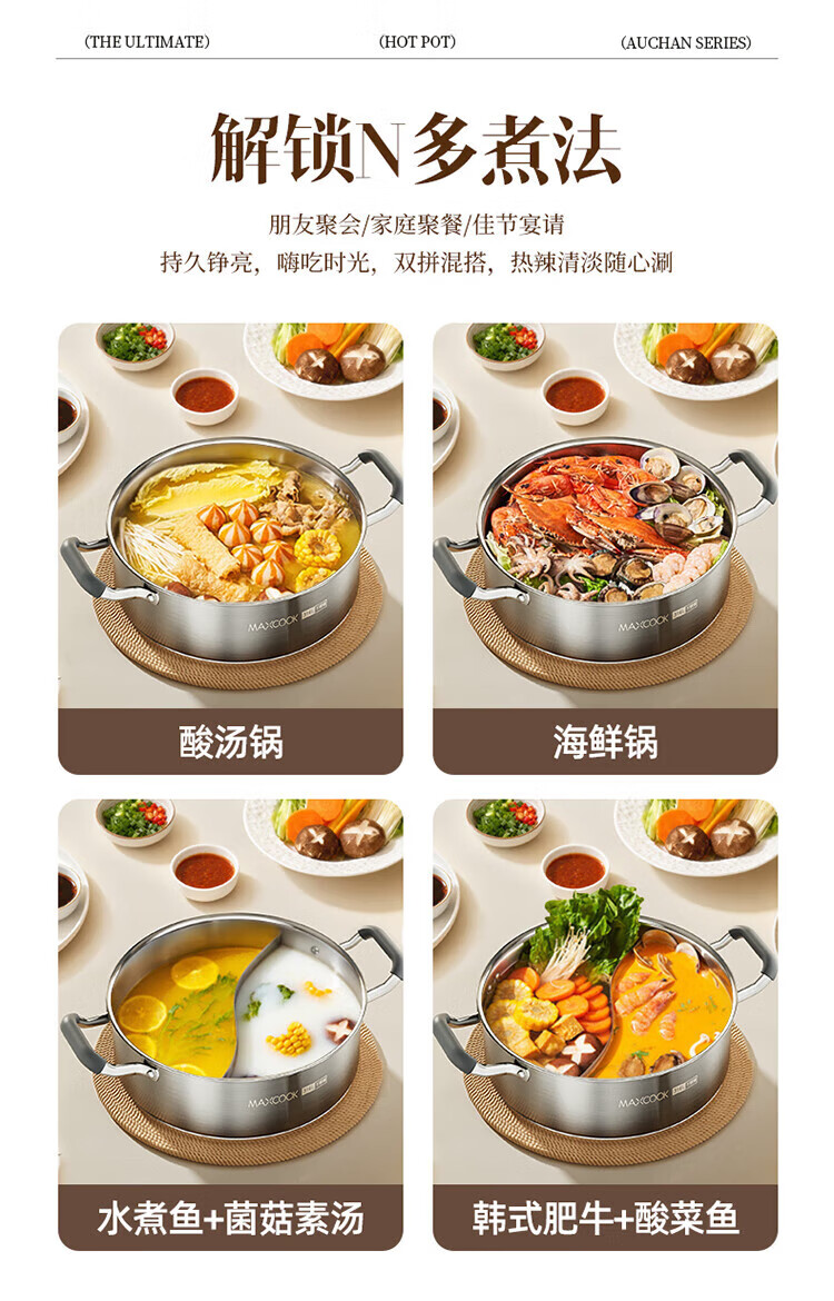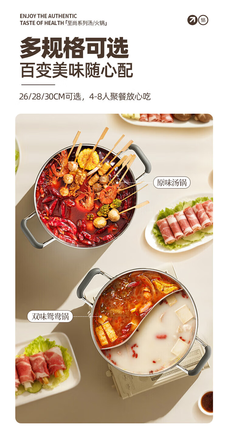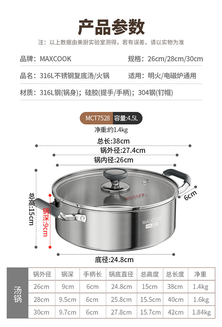 MAXCOOK 316L stainless steel mandarin duck pot, hot pot, soup pot, shabu-shabu pot, cooking pot, induction cooker, gas stove, hot pot pot, hot pot, 316 stainless steel 26cm