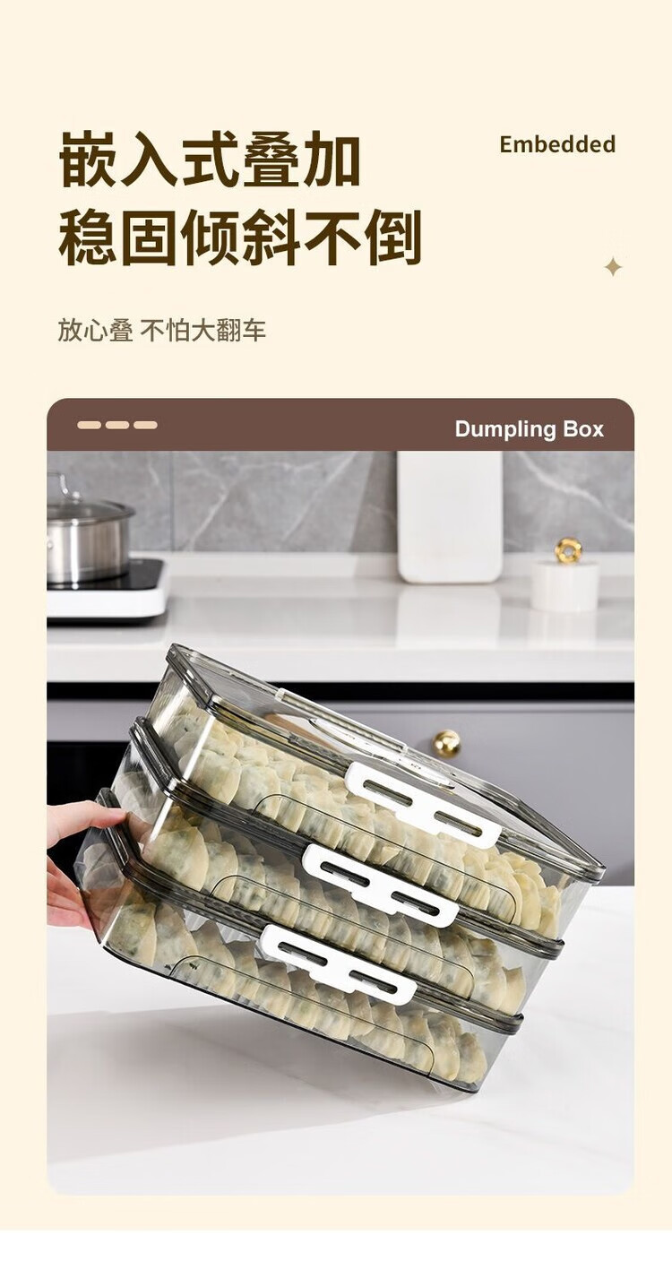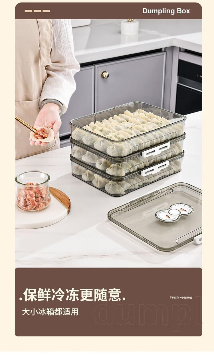 Huaiman food-grade dumpling box household dumpling box multi-layer storage box anti-stick thickened frozen dumpling wonton large capacity storage coffee color default three layers (storage about 150 dumplings)