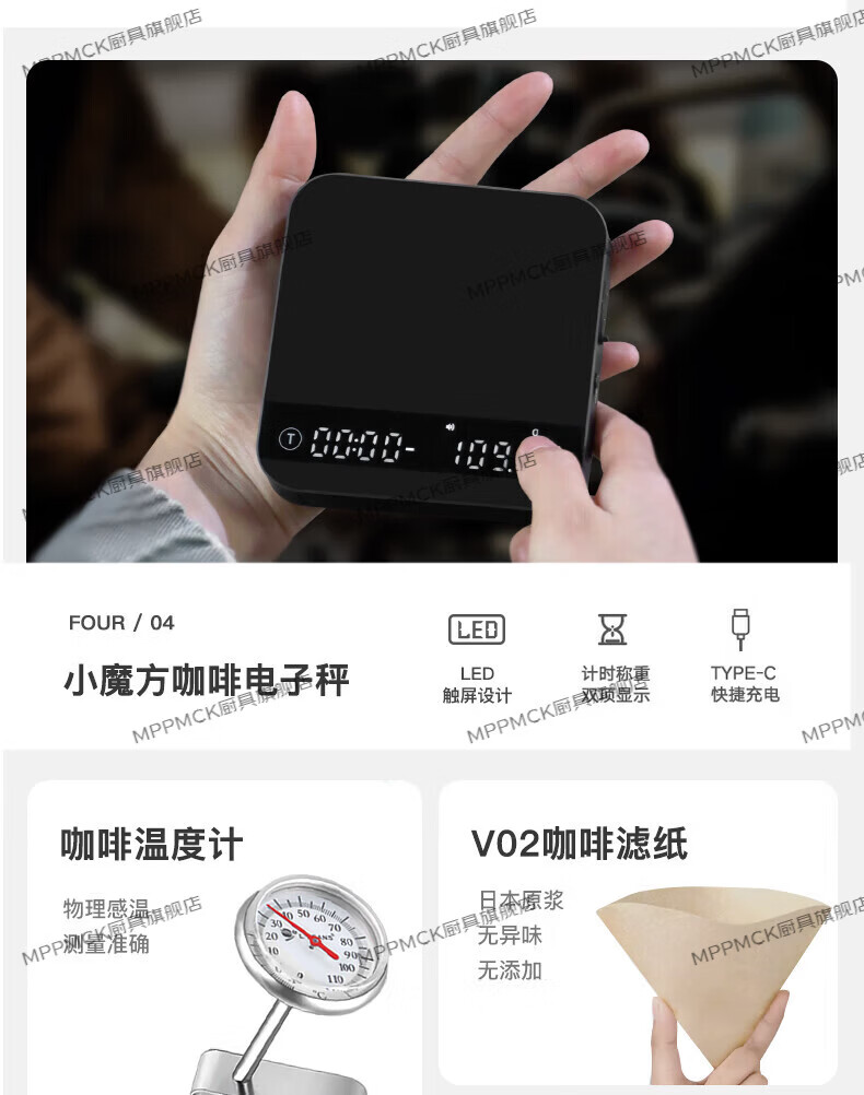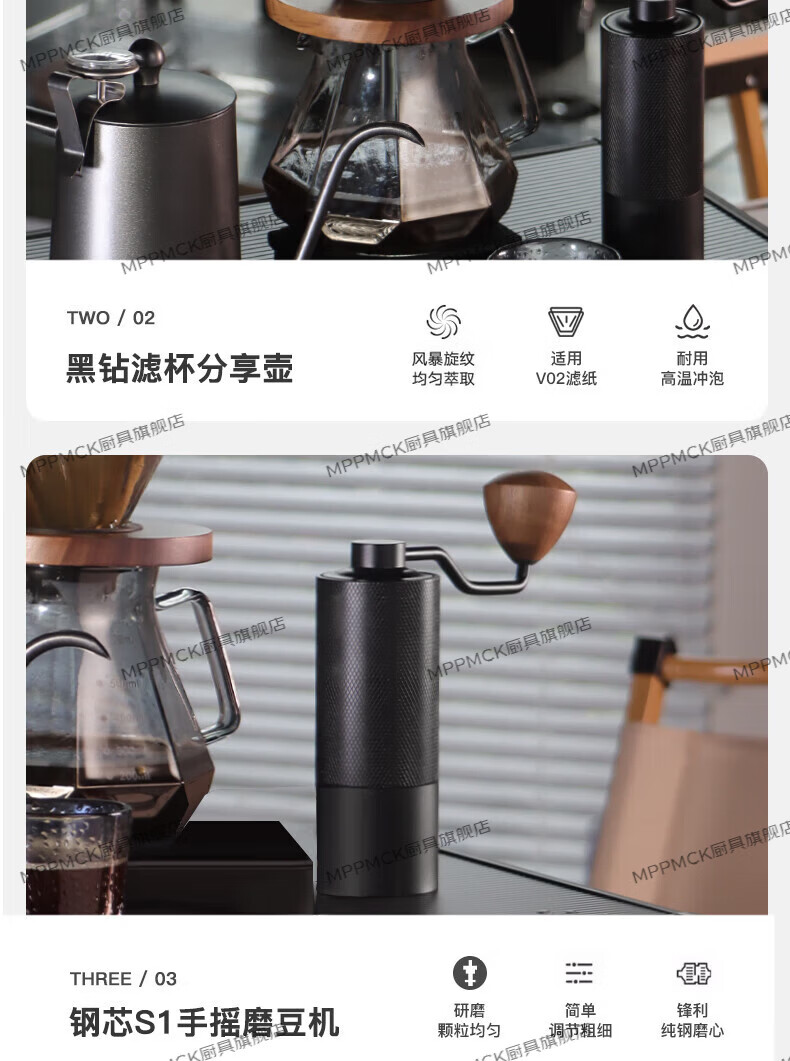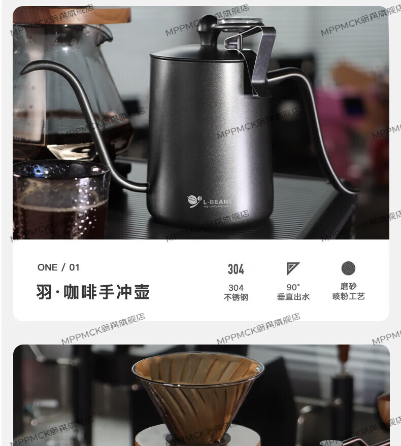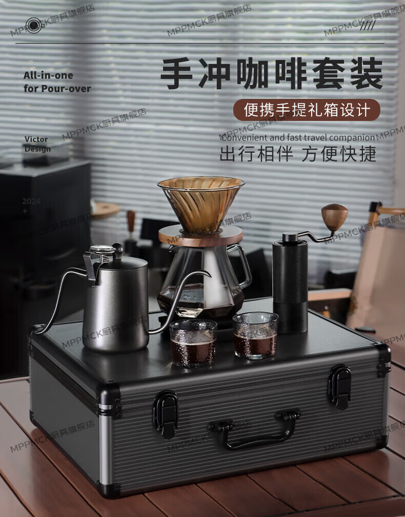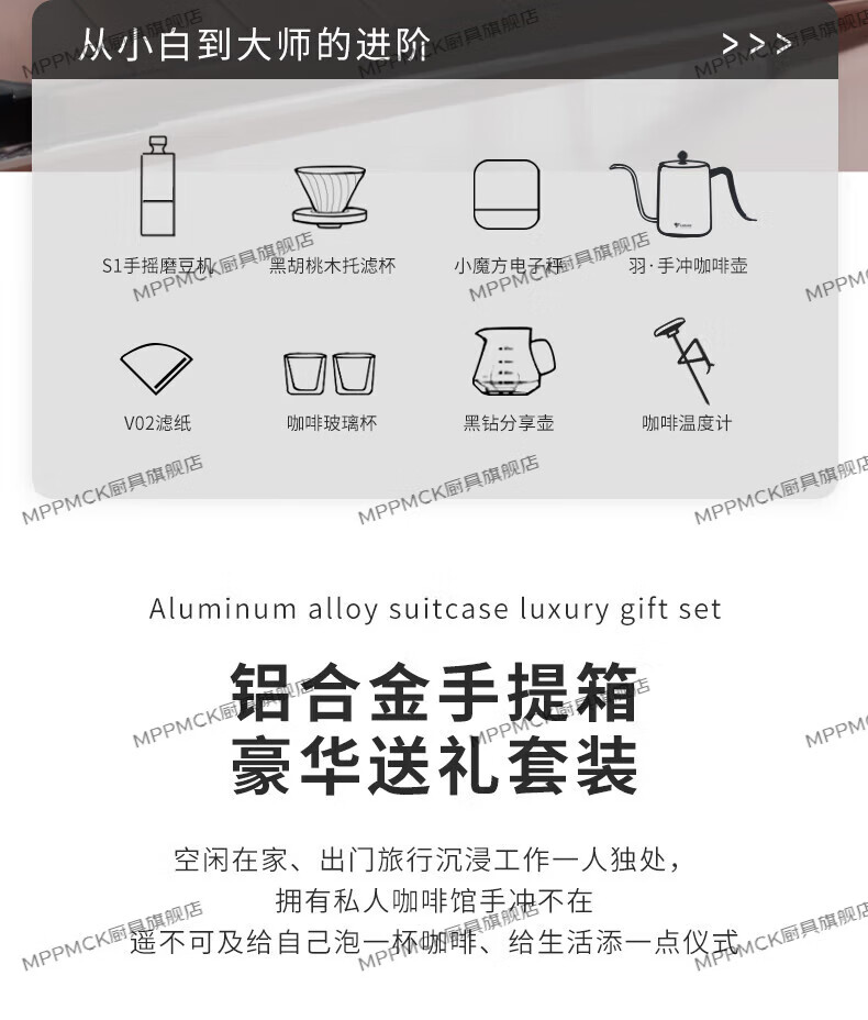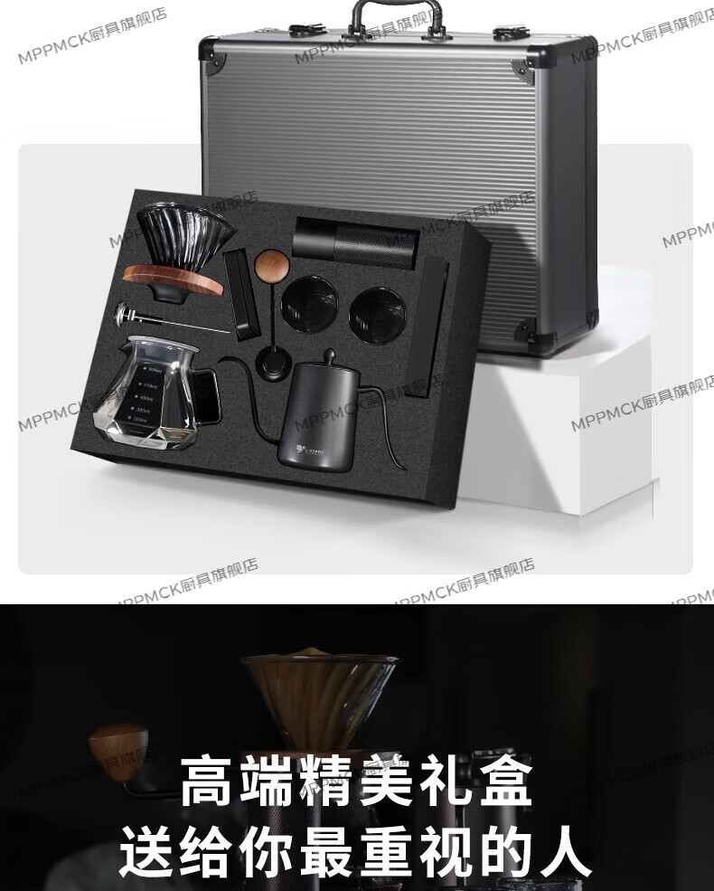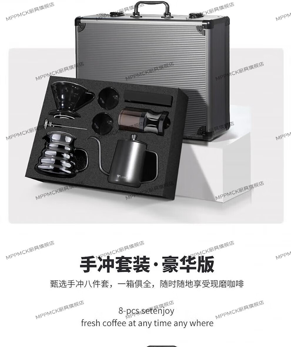 MPPMCK German imported quality stainless steel hand-brewed coffee pot gift box set outdoor luggage high-end long mouth narrow mouth pot SD-4 (luxury version 8-piece set black)