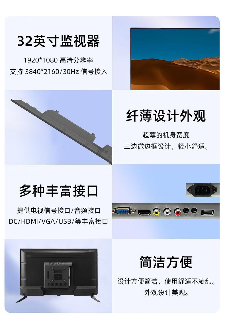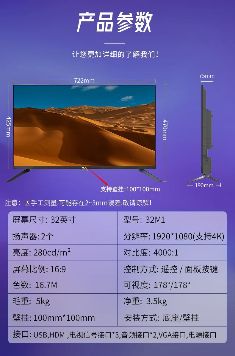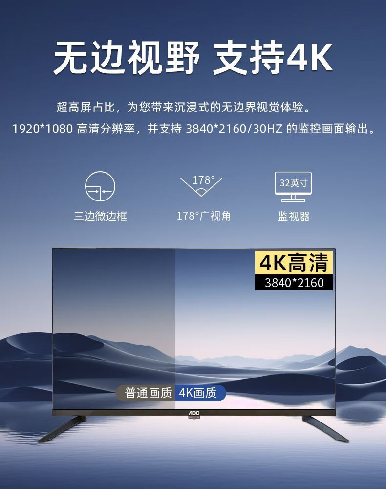 AOC 32-inch 4k mapping display commercial office store advertising monitoring screen speaker TV 32M1
