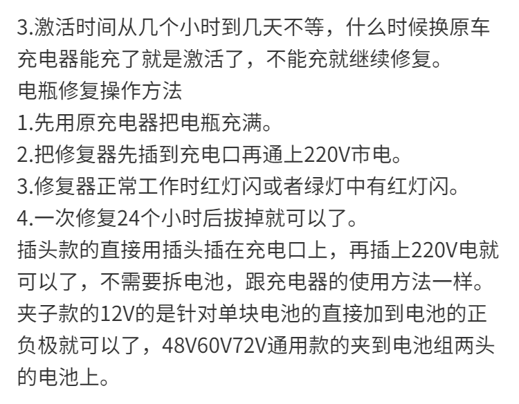 Electric vehicle battery repairer starves to activate lead-acid battery pulse desulfurization repairer 48V60V72V universal new national standard four-pin plug 48V60V72V universal