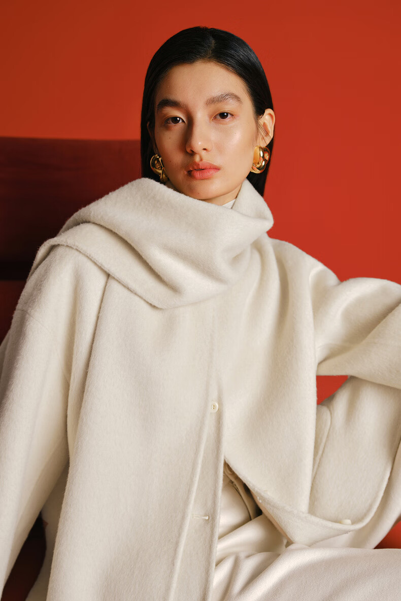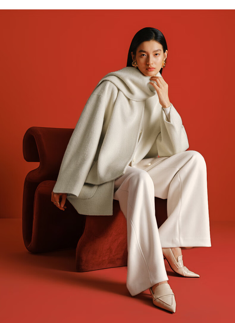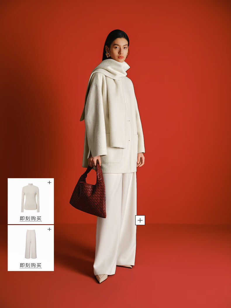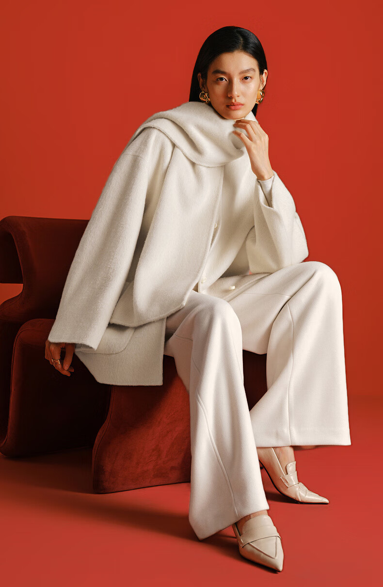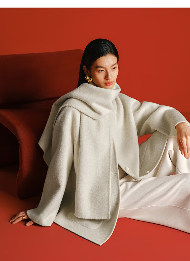 Eveli (eifini) Jiang Xin endorses Eveli removable scarf coat with one hand large patch pocket woolen coat 2025 winter new style off-white free scarf with order M 115-125 catties
