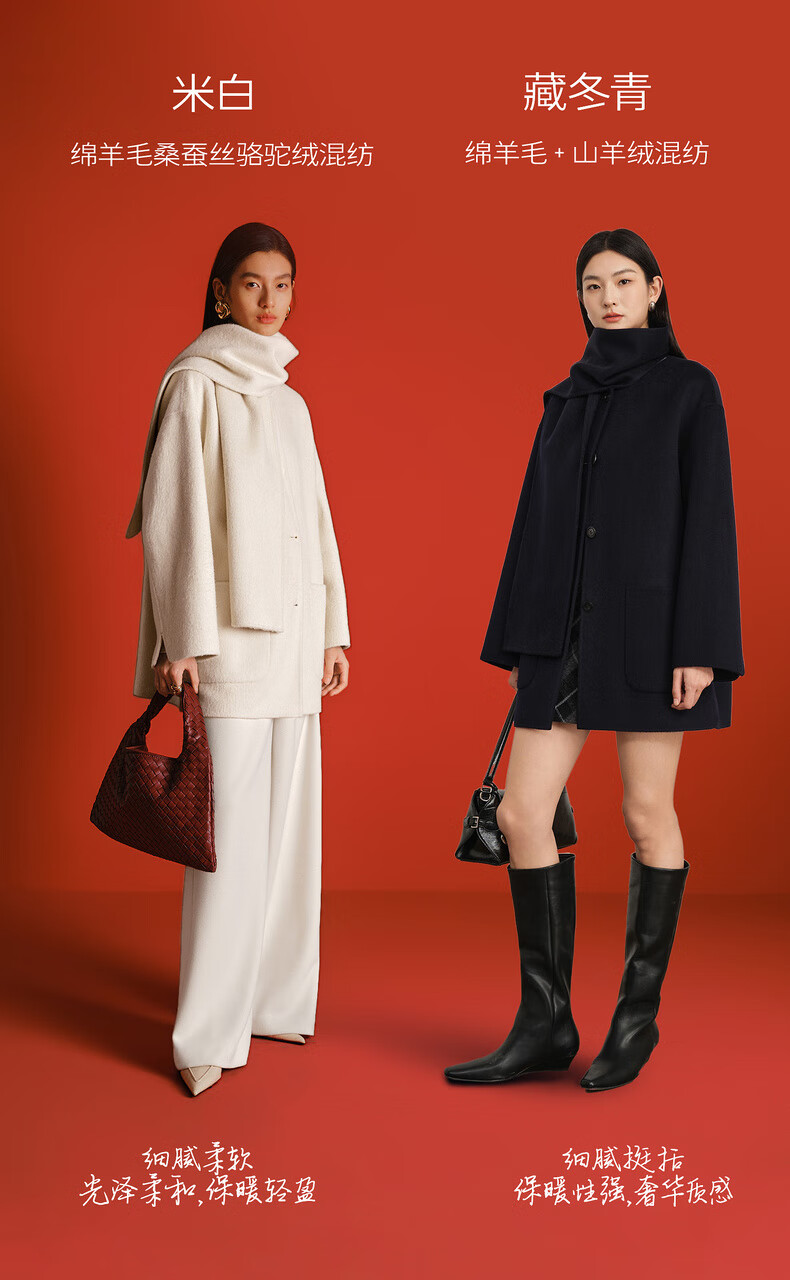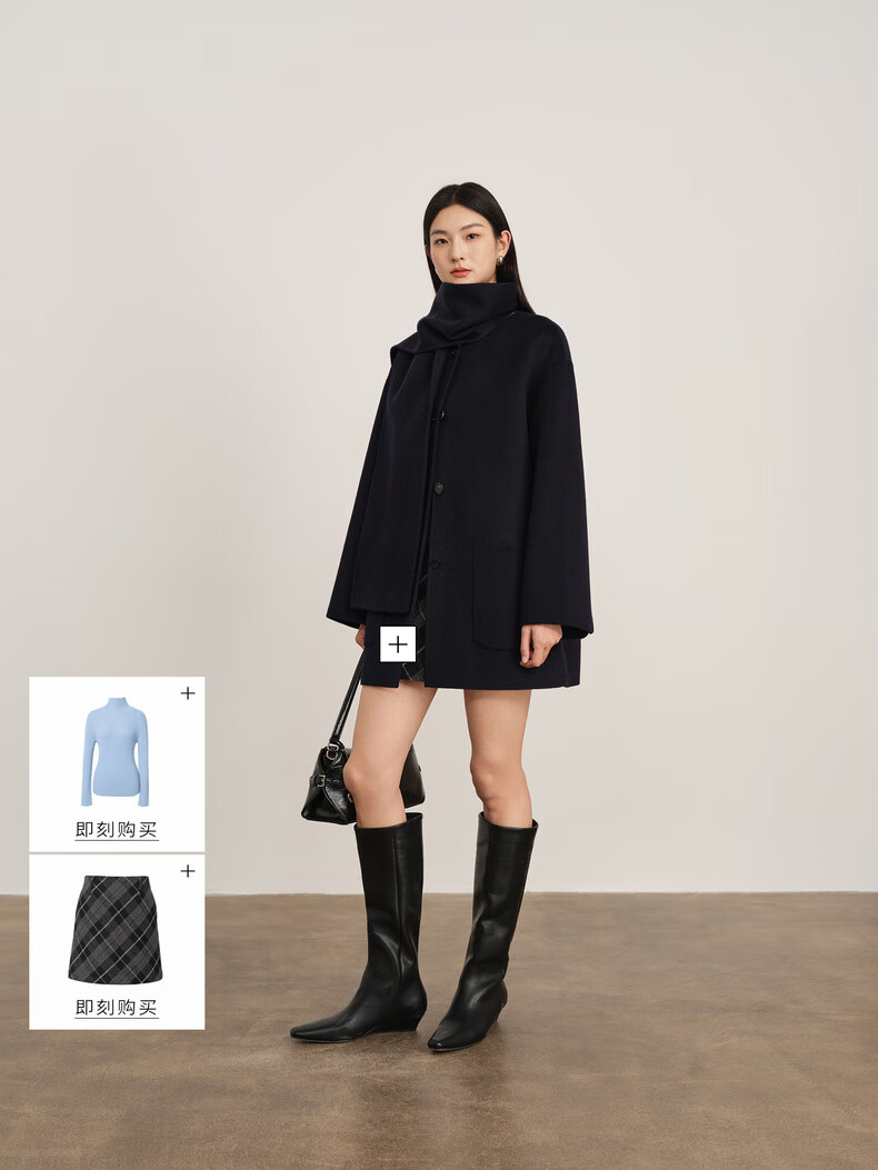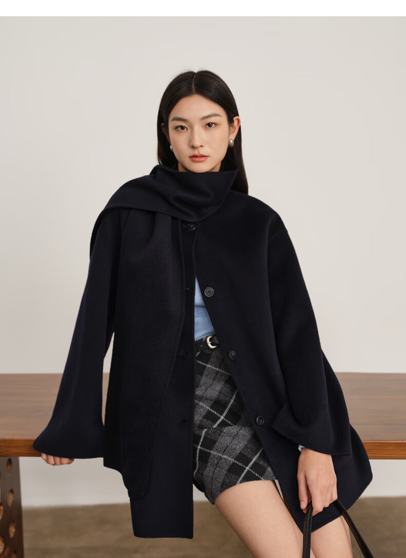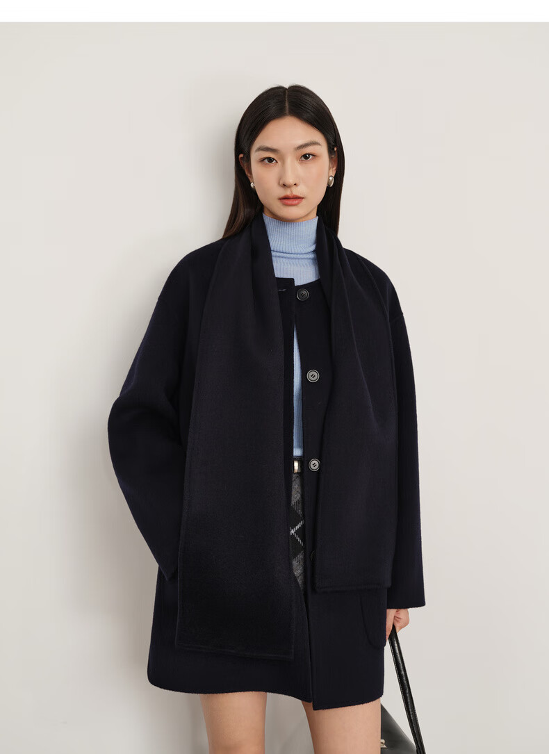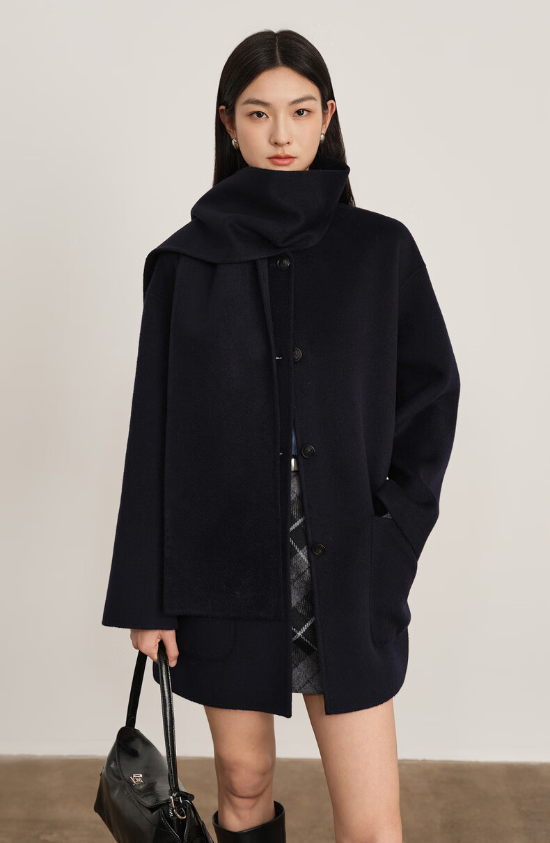 Eveli (eifini) Jiang Xin endorses Eveli removable scarf coat with one hand large patch pocket woolen coat 2025 winter new style off-white free scarf with order M 115-125 catties
