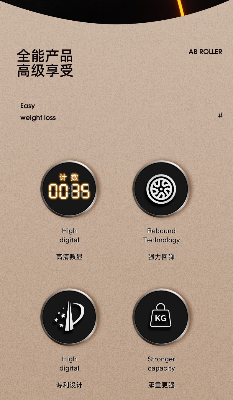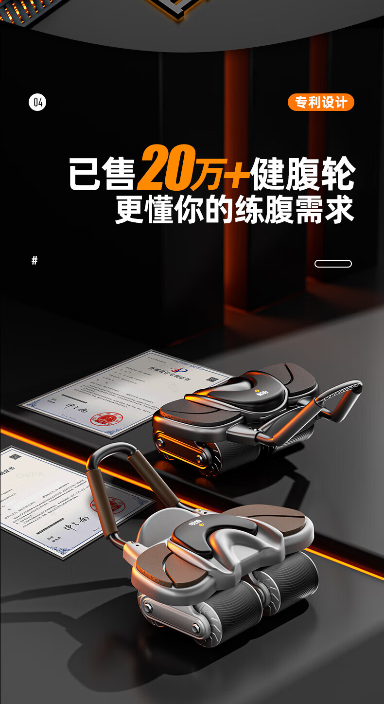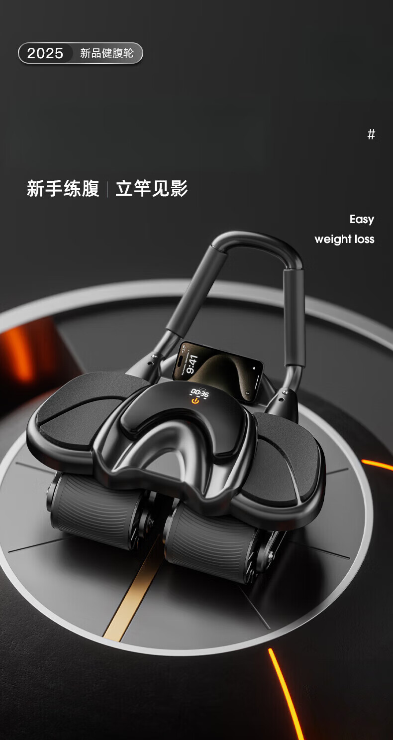 Hanpin German Quality Abdominal Wheel Automatic Rebound 2025 New Home Four-Wheel Abdominal Crunches for Abdominal Slimming Belly and Abdominal Muscle Fitness 2025 Smart Model-Black Ultra-clear Large Screen Display