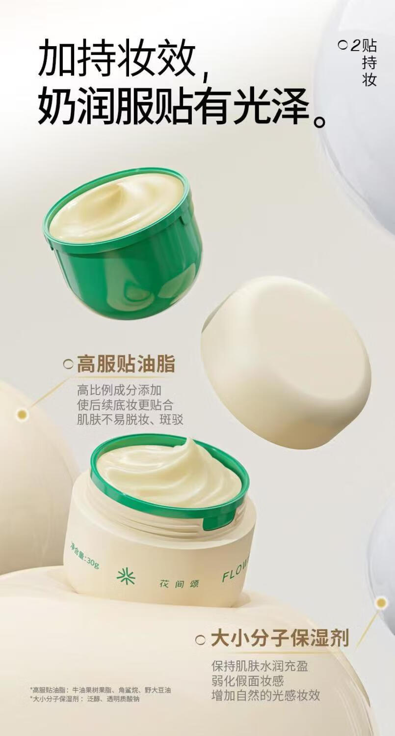 Flowerlure Flowerlure Cream Primer Moisturizing Face Cream Moisture-locking Concealer Before Makeup Light Translucent Lasting Makeup Fits Without Sticking Powder Genuine Hair Straightening Formal Pack 30g*1 Bottle + Refill 30g*1