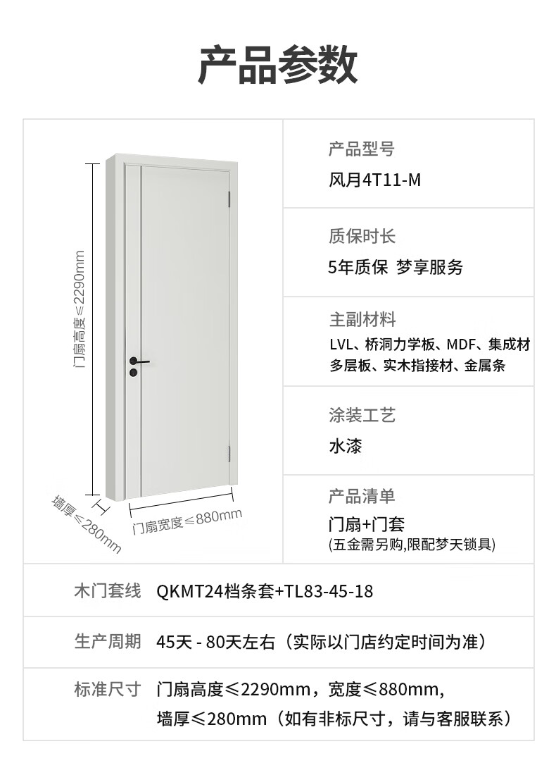 Mengtian Woodwork Bedroom Door Customized Door Soundproof Door Environmentally Friendly Water Paint Simple Door Bedroom Door Crescent White