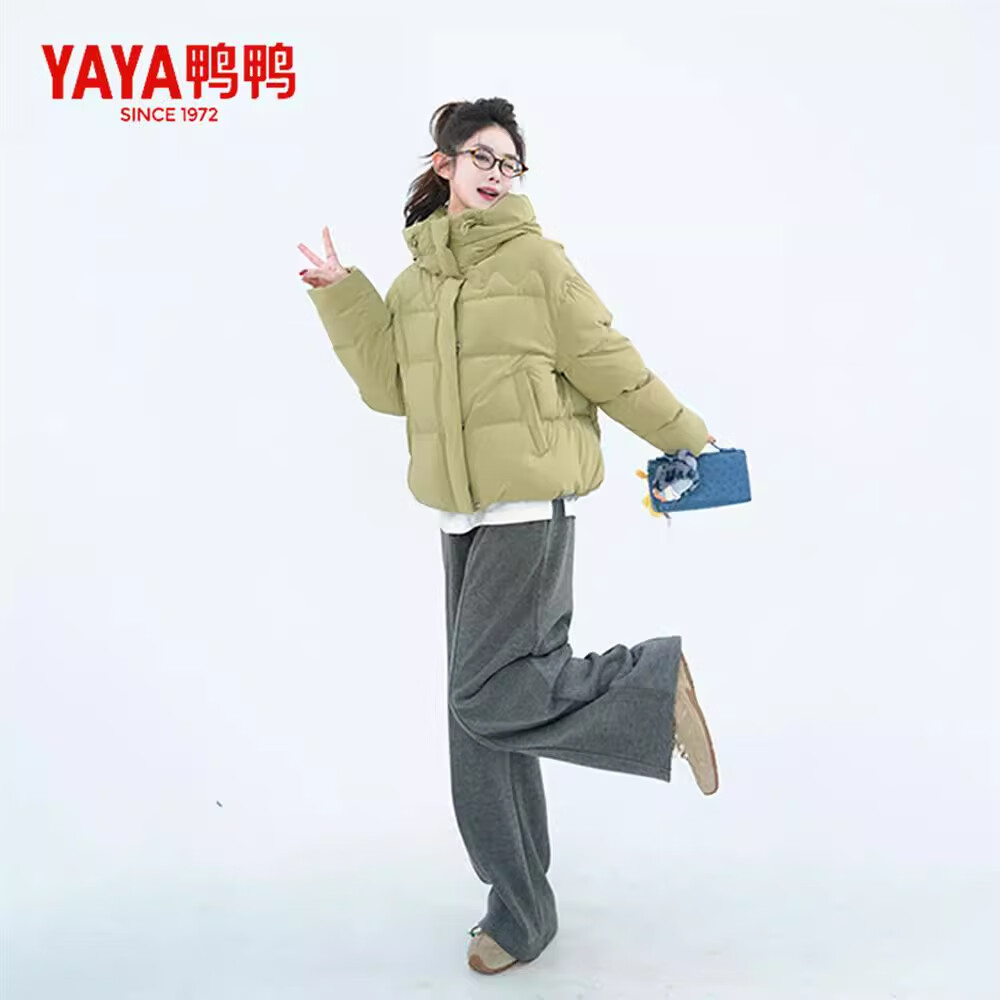 YAYA (YAYA) Down Jacket Women's Short 2025 Winter New Style Small Fashion Hooded Bread Jacket Puff Cloud Jacket HY Green S (155)