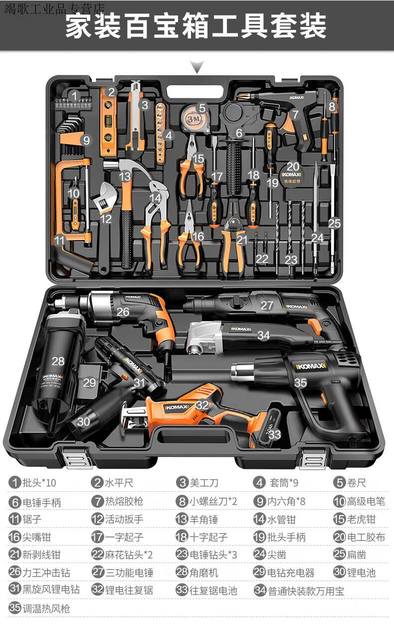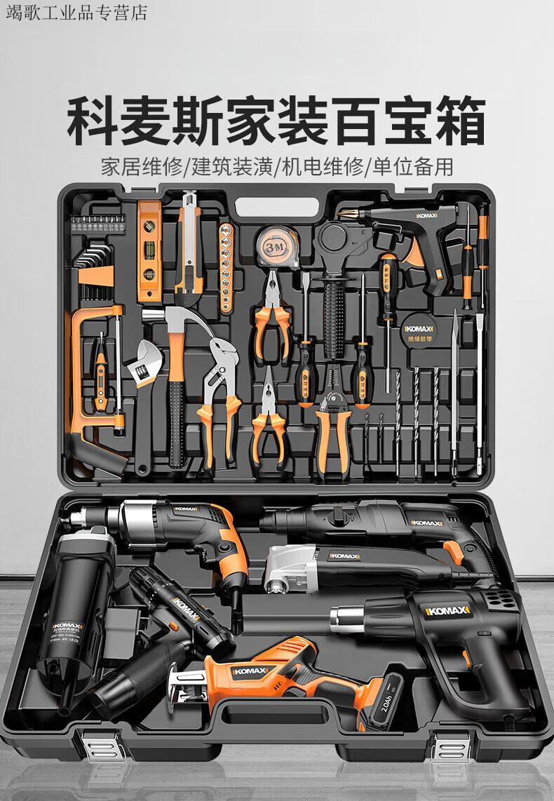 Qiaobolaikomax household daily tool set electric hammer impact drill hardware electric woodworking repair tool box hand electric drill large default