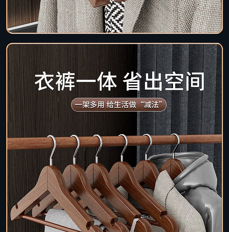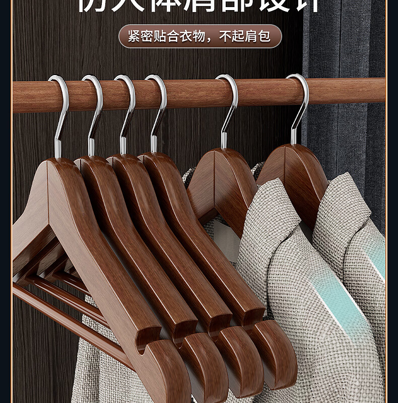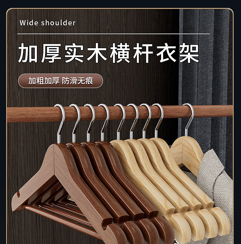 Xincong clothes hanger solid wood clothes rack wooden clothes hanger to hang clothes wooden large clothes hanger seamless clothes hanging suit clothes support 5 pieces retro color event exclusive
