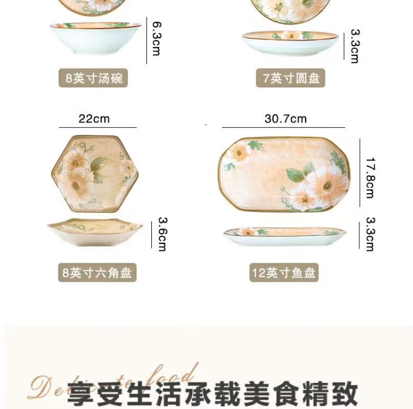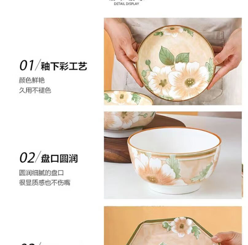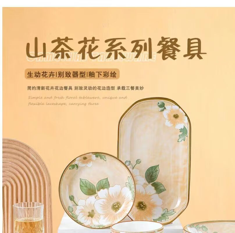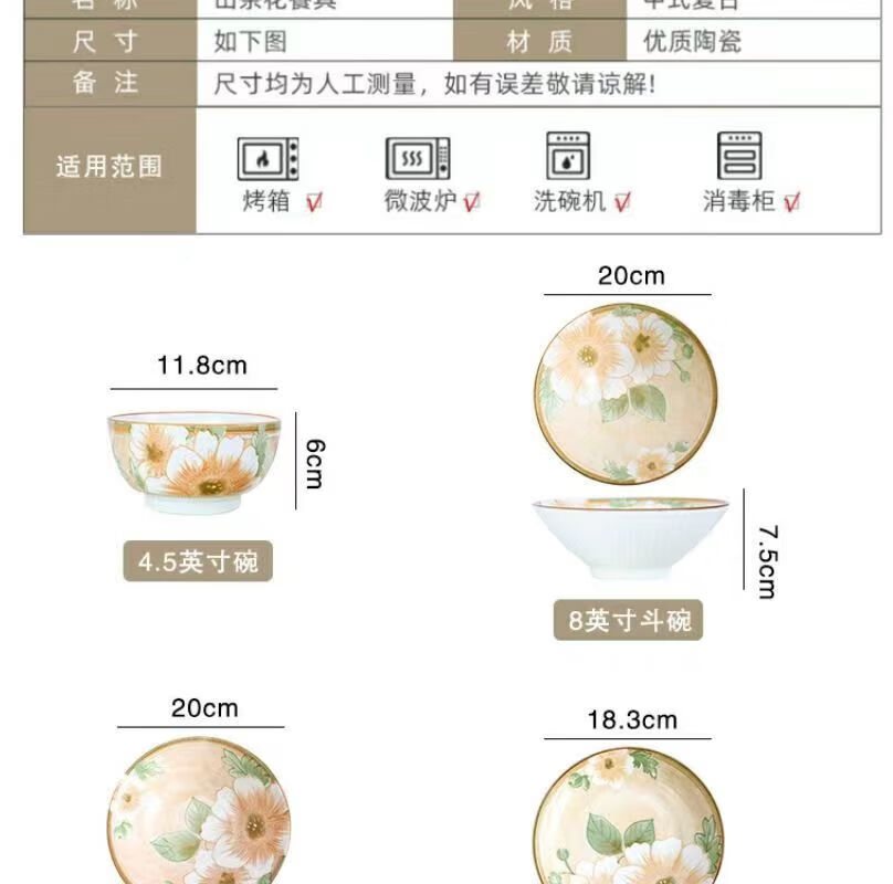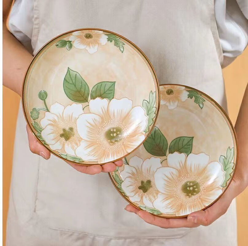 Vinoa Vintage Camellia 10 Bowl 10 Plate Family Bowl and Plate Set Underglaze Color Vintage Camellia 10 Bowl 10 Plate Family Bowl and Plate Set (5 Inch Bowl-7 Inch