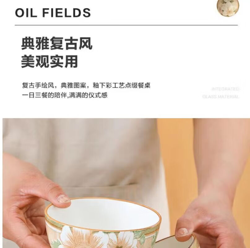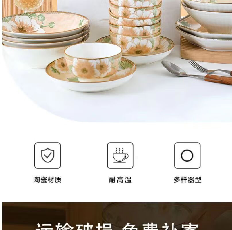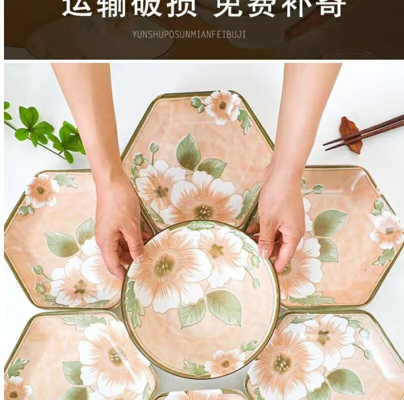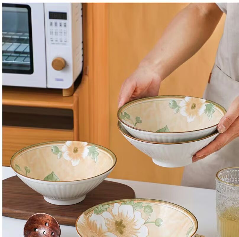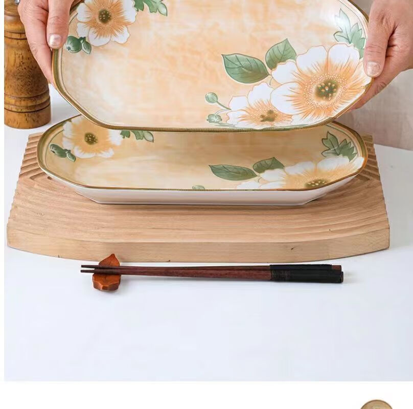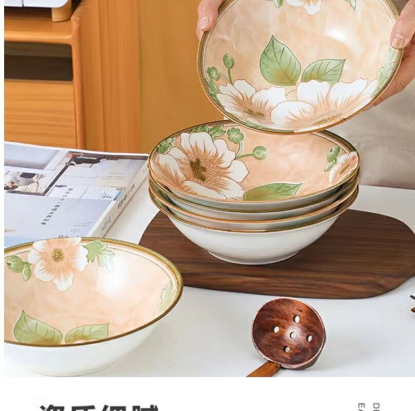Vinoa Vintage Camellia 10 Bowl 10 Plate Family Bowl and Plate Set Underglaze Color Vintage Camellia 10 Bowl 10 Plate Family Bowl and Plate Set (5 Inch Bowl-7 Inch