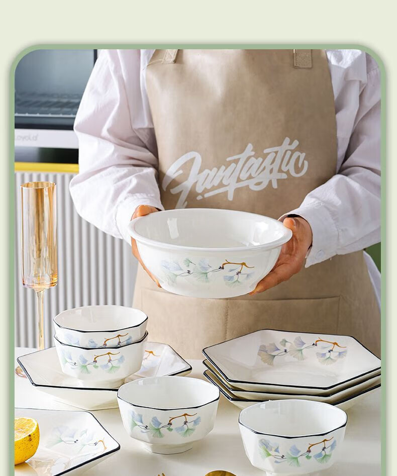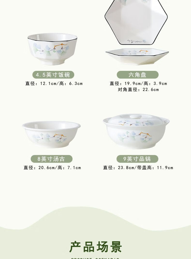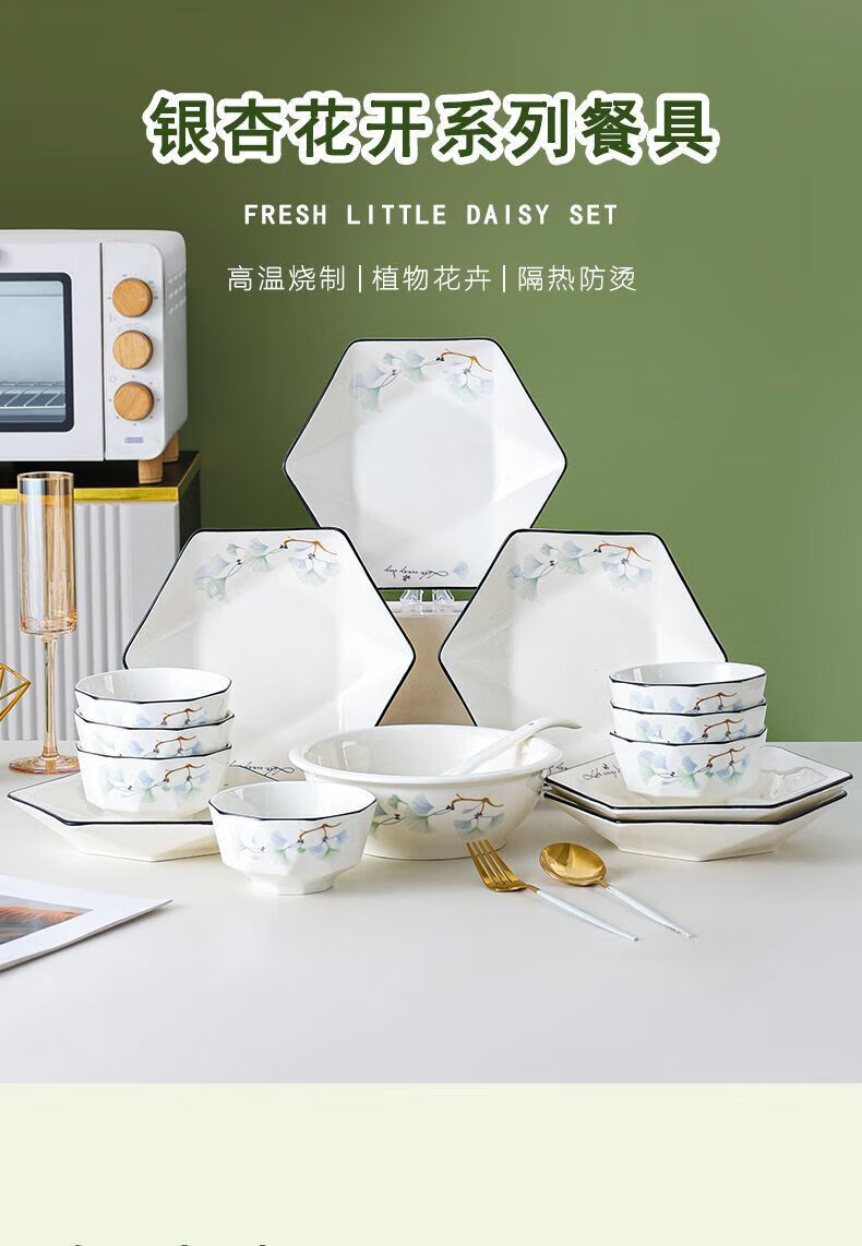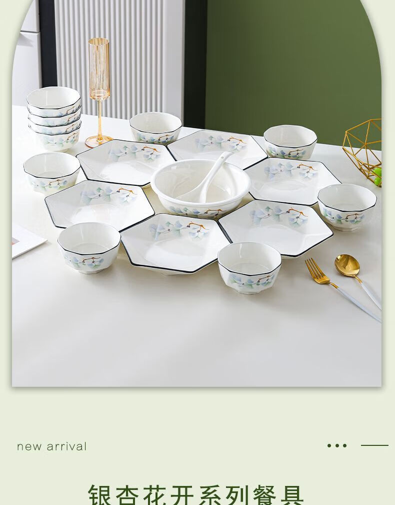 Vinoa hexagonal plate ceramic special-shaped dish plate household soup bowl and spoon set combination bowl and dish housewarming platter tableware reunion yearly surplus 10 bowls 6 plates 1 pot with lid plus large spoon 1 fish plate