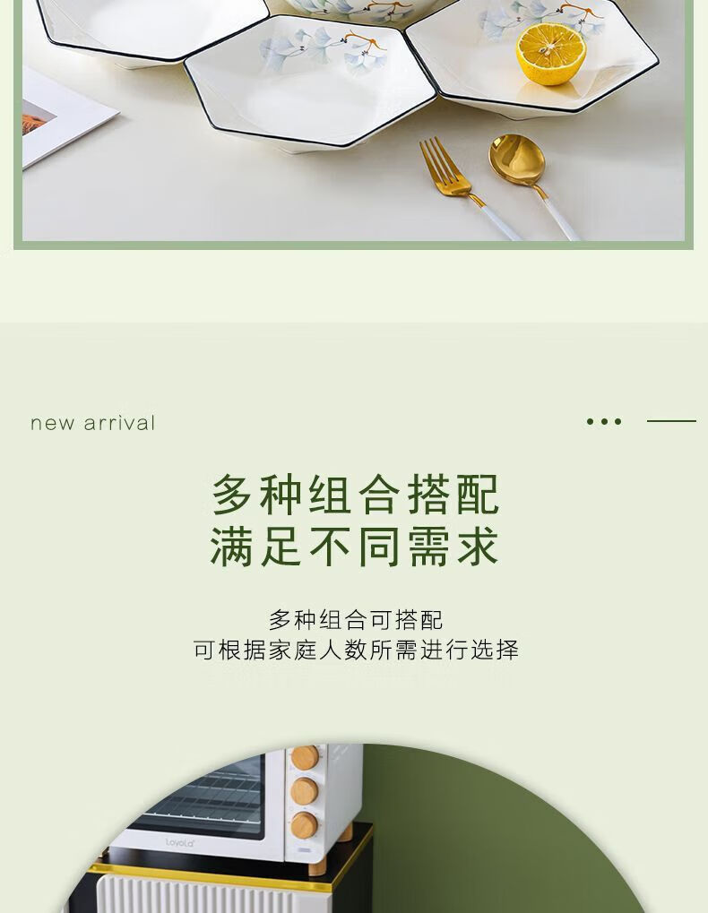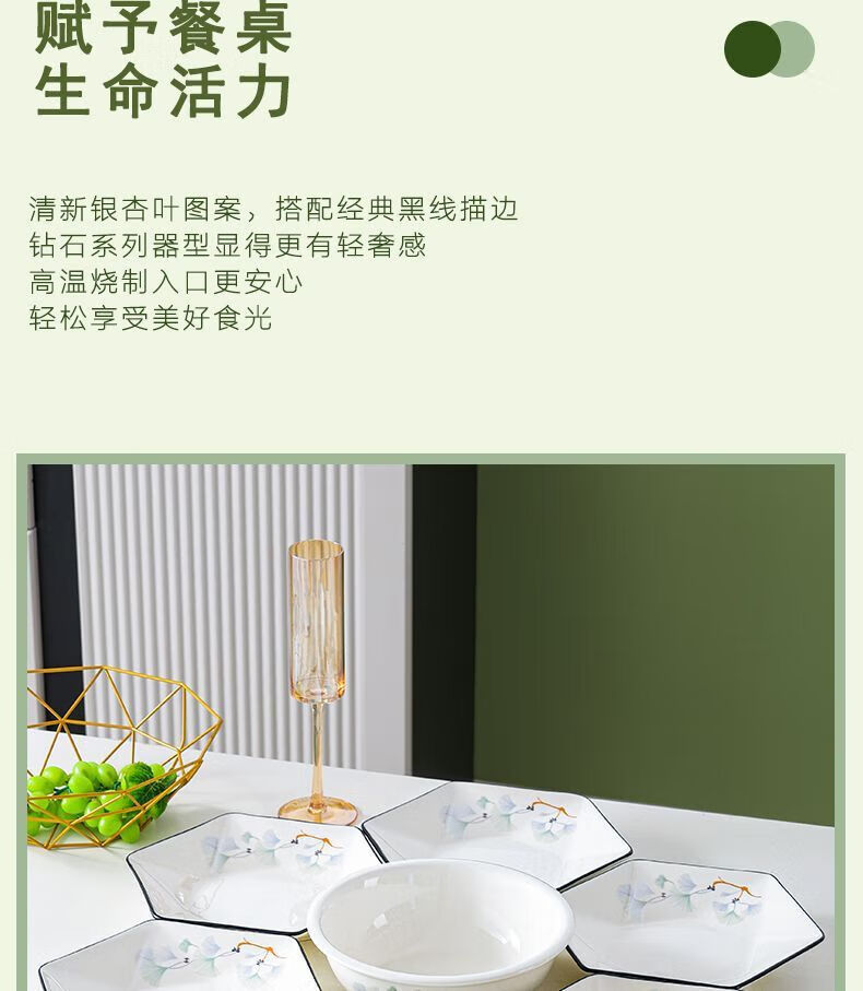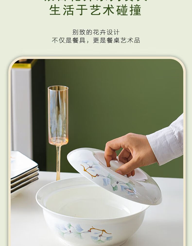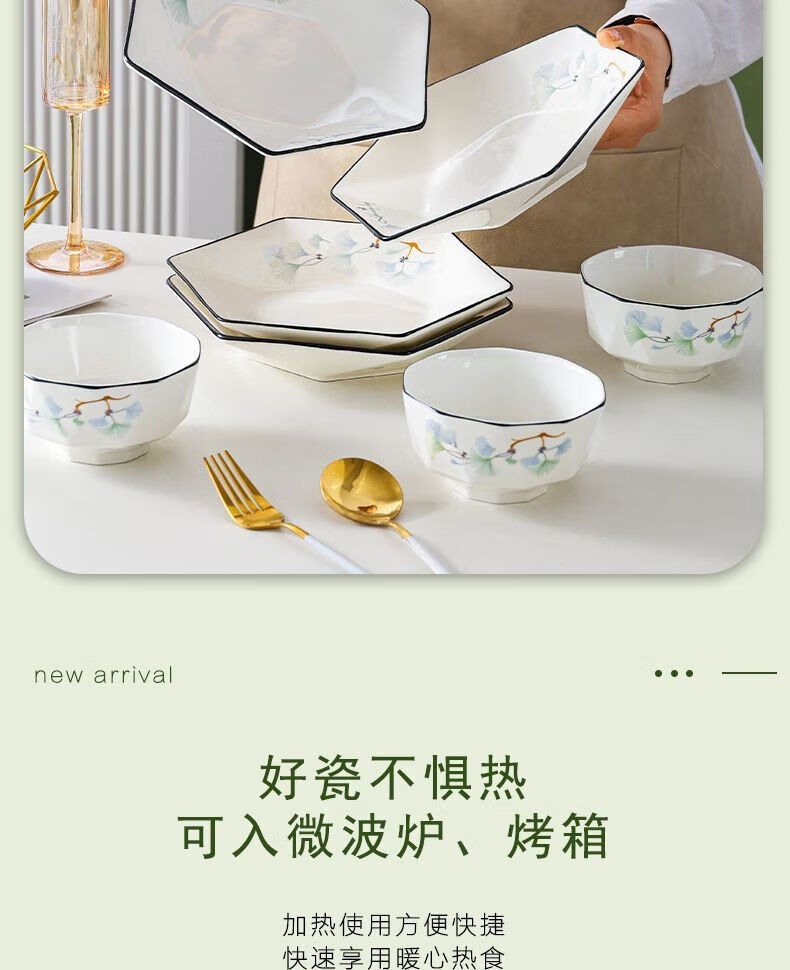 Vinoa hexagonal plate ceramic special-shaped dish plate household soup bowl and spoon set combination bowl and dish housewarming platter tableware reunion yearly surplus 10 bowls 6 plates 1 pot with lid plus large spoon 1 fish plate