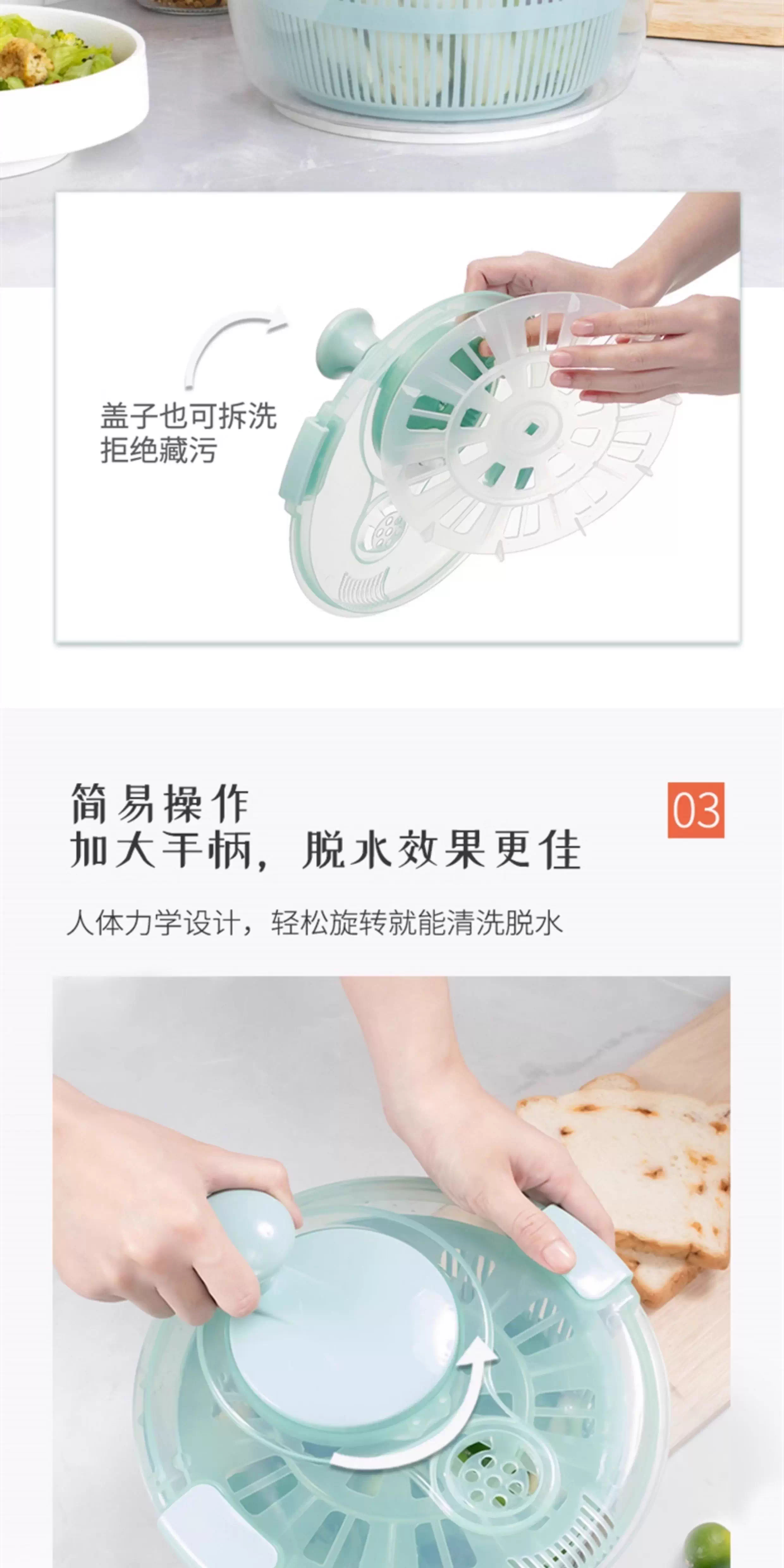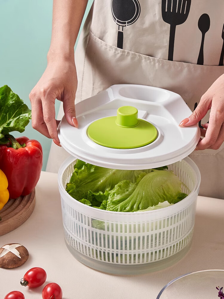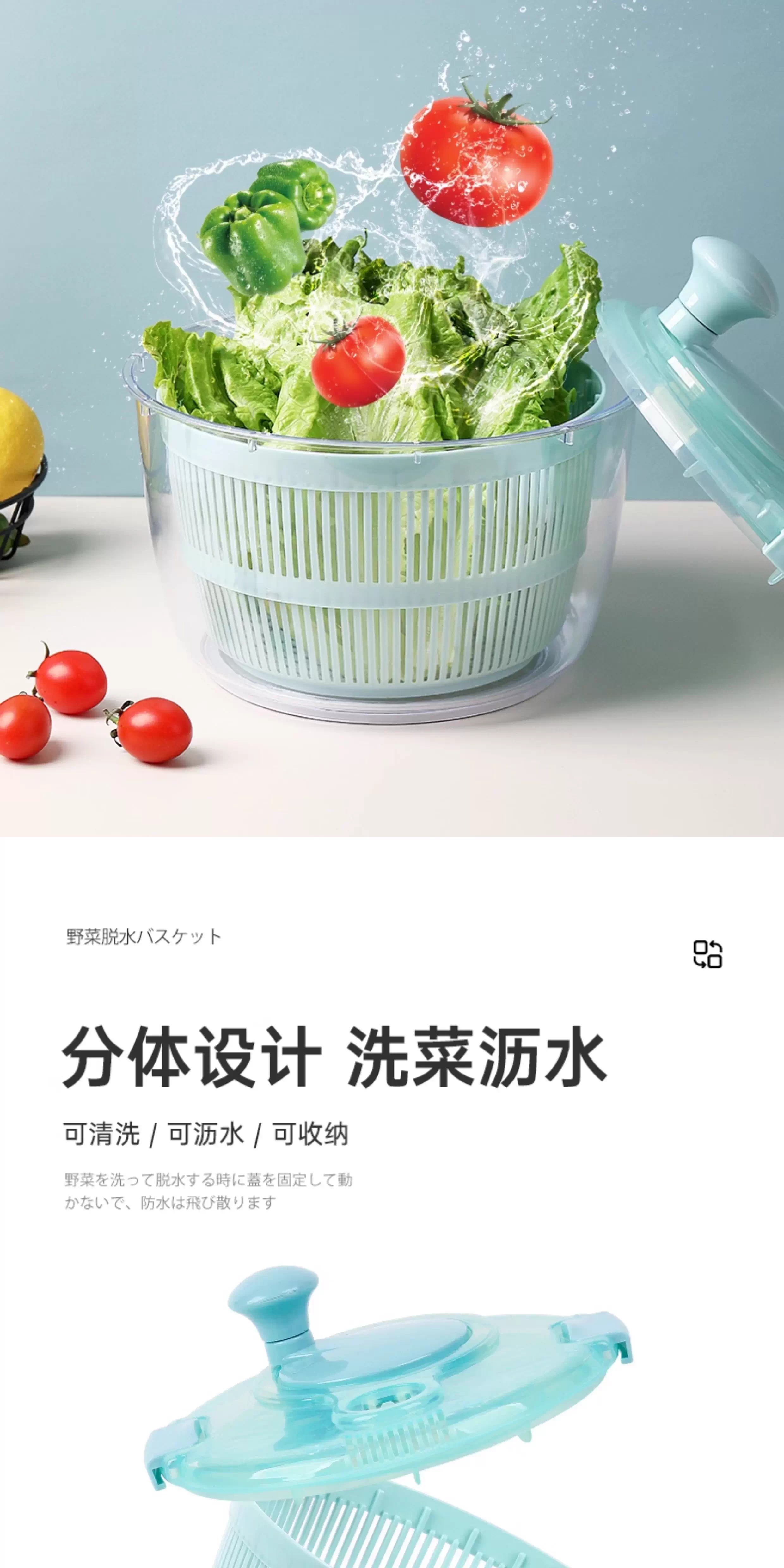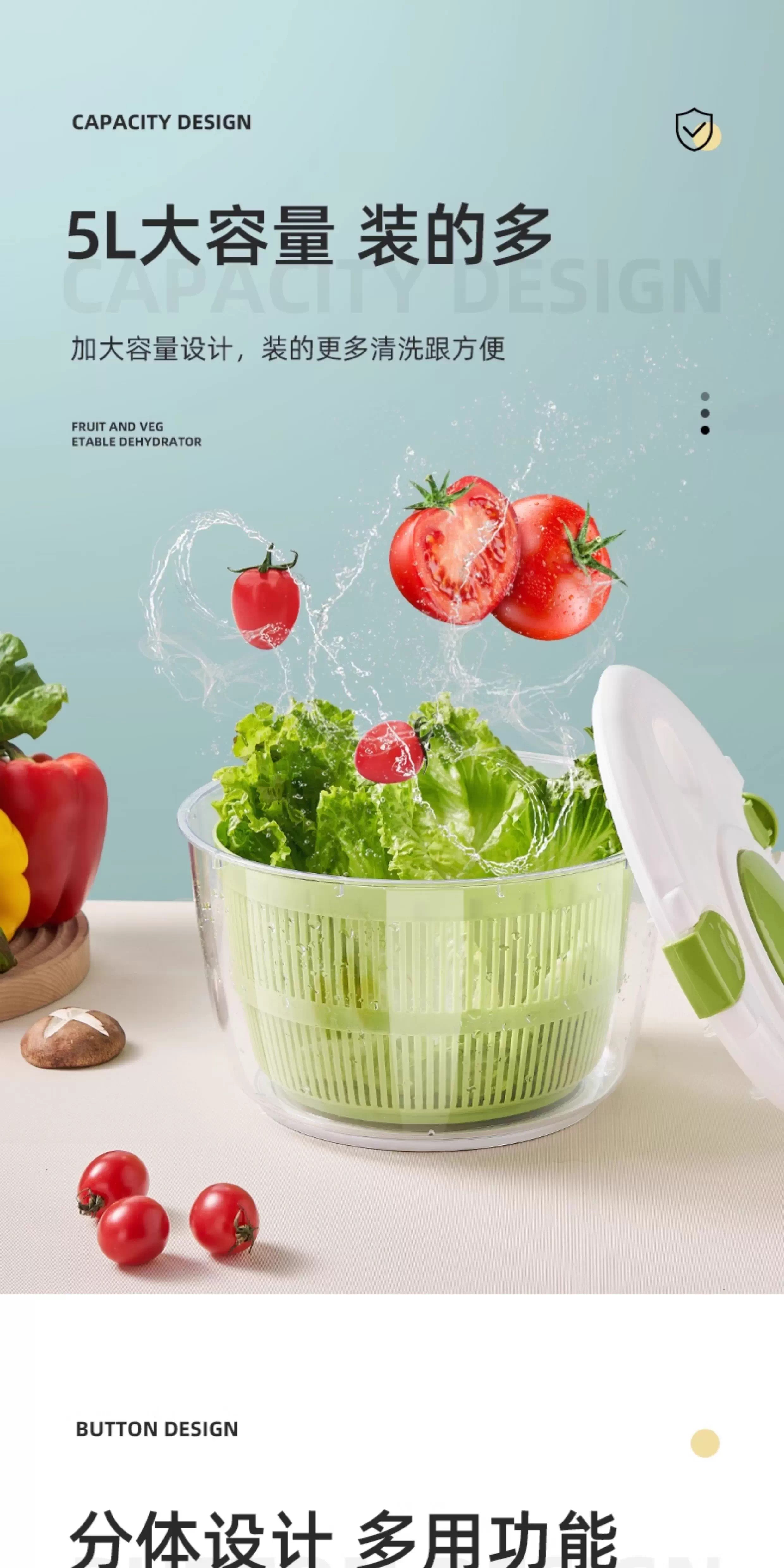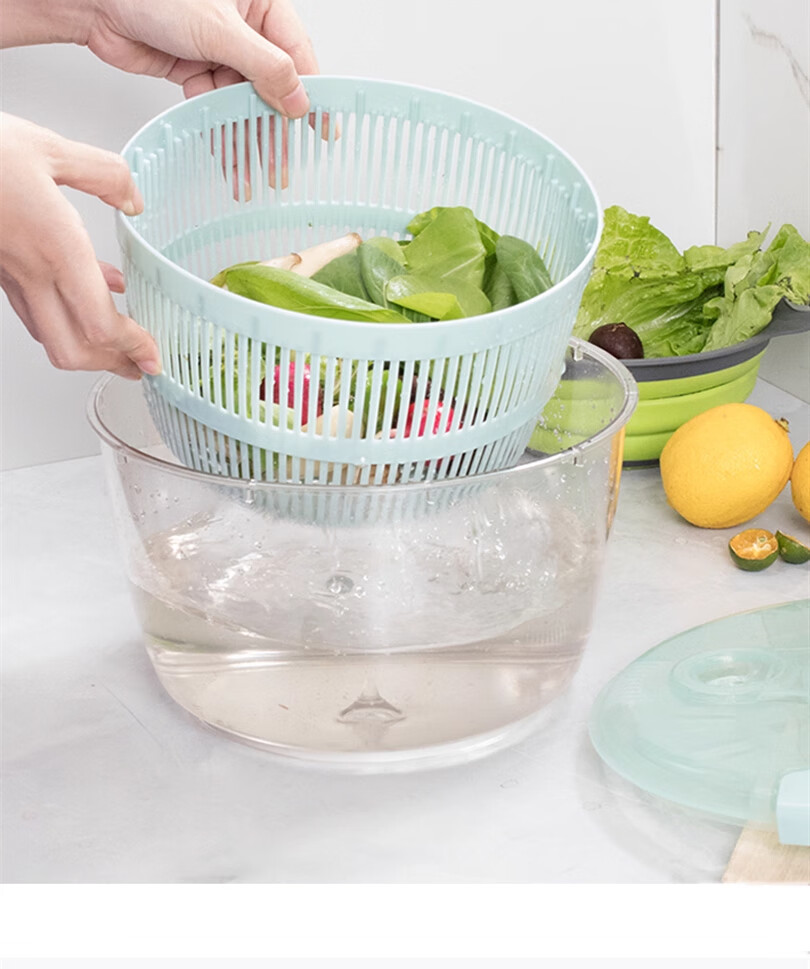 Lechilai Salad Vegetable Dehydrator Household Drainage and Dryer Fruit Manual Water Drier Basket Kitchen Tools Vegetable Basin Artifact Thickened Large 5L Clear Blue Multi-Function Drainer Salad Plate