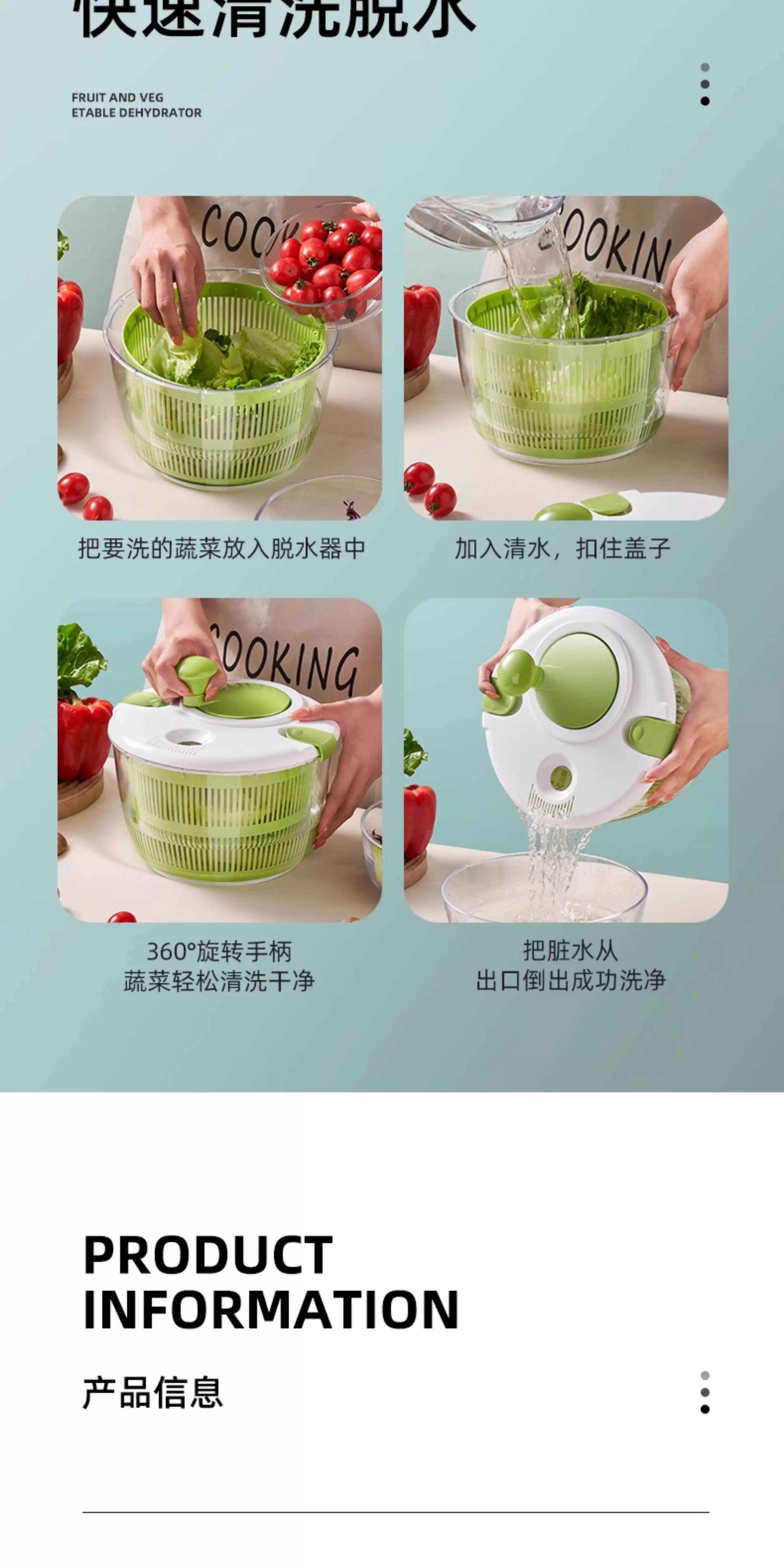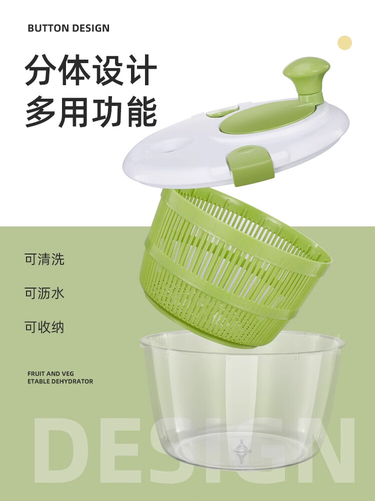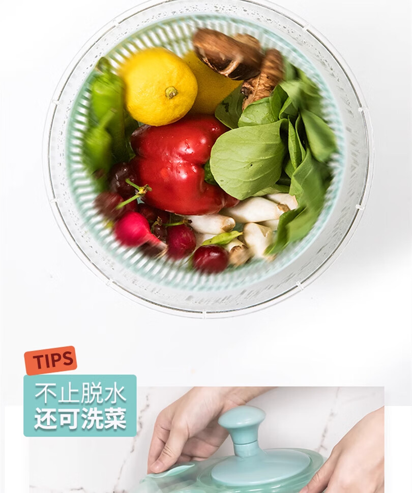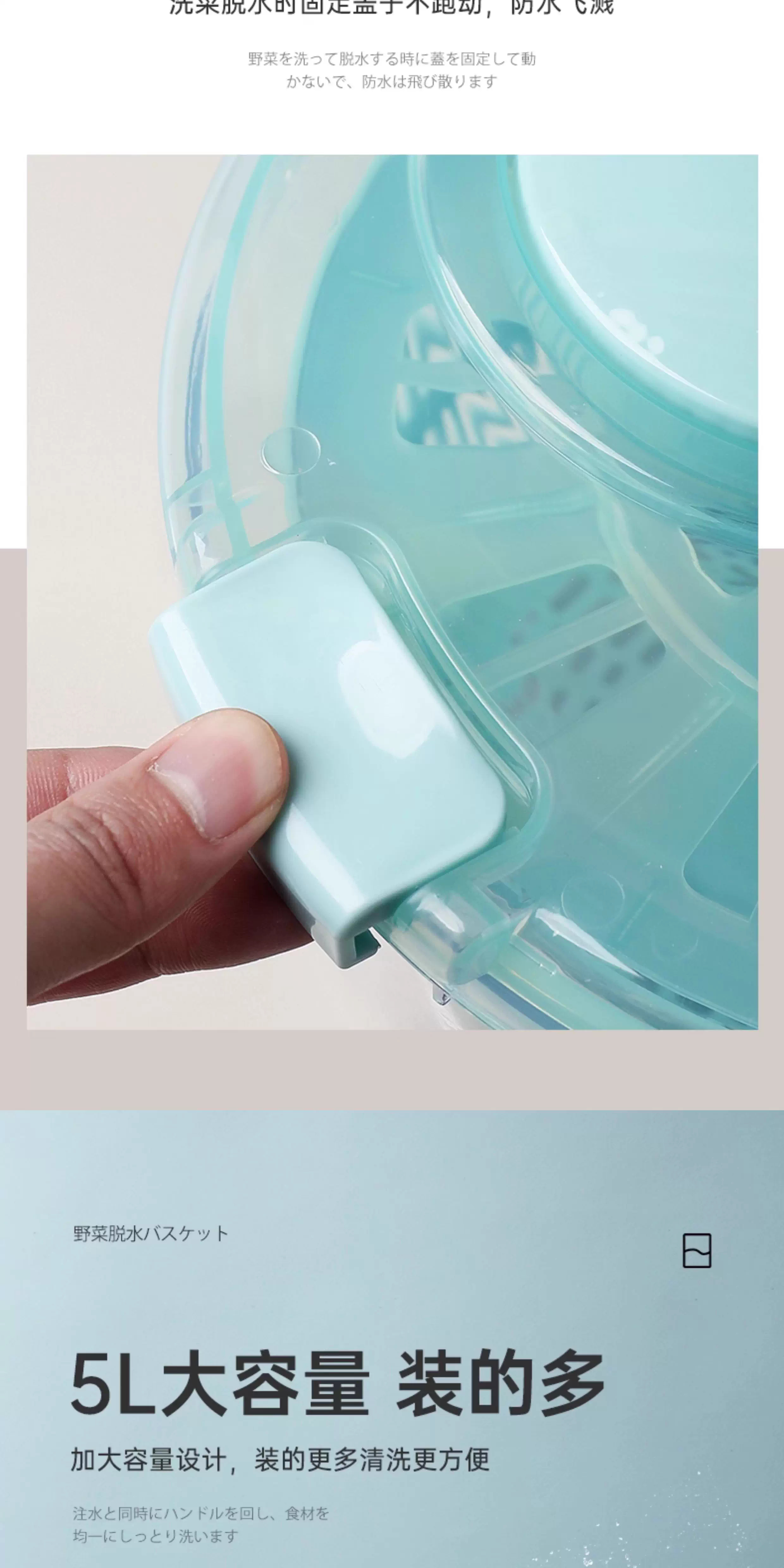 Lechilai Salad Vegetable Dehydrator Household Drainage and Dryer Fruit Manual Water Drier Basket Kitchen Tools Vegetable Basin Artifact Thickened Large 5L Clear Blue Multi-Function Drainer Salad Plate