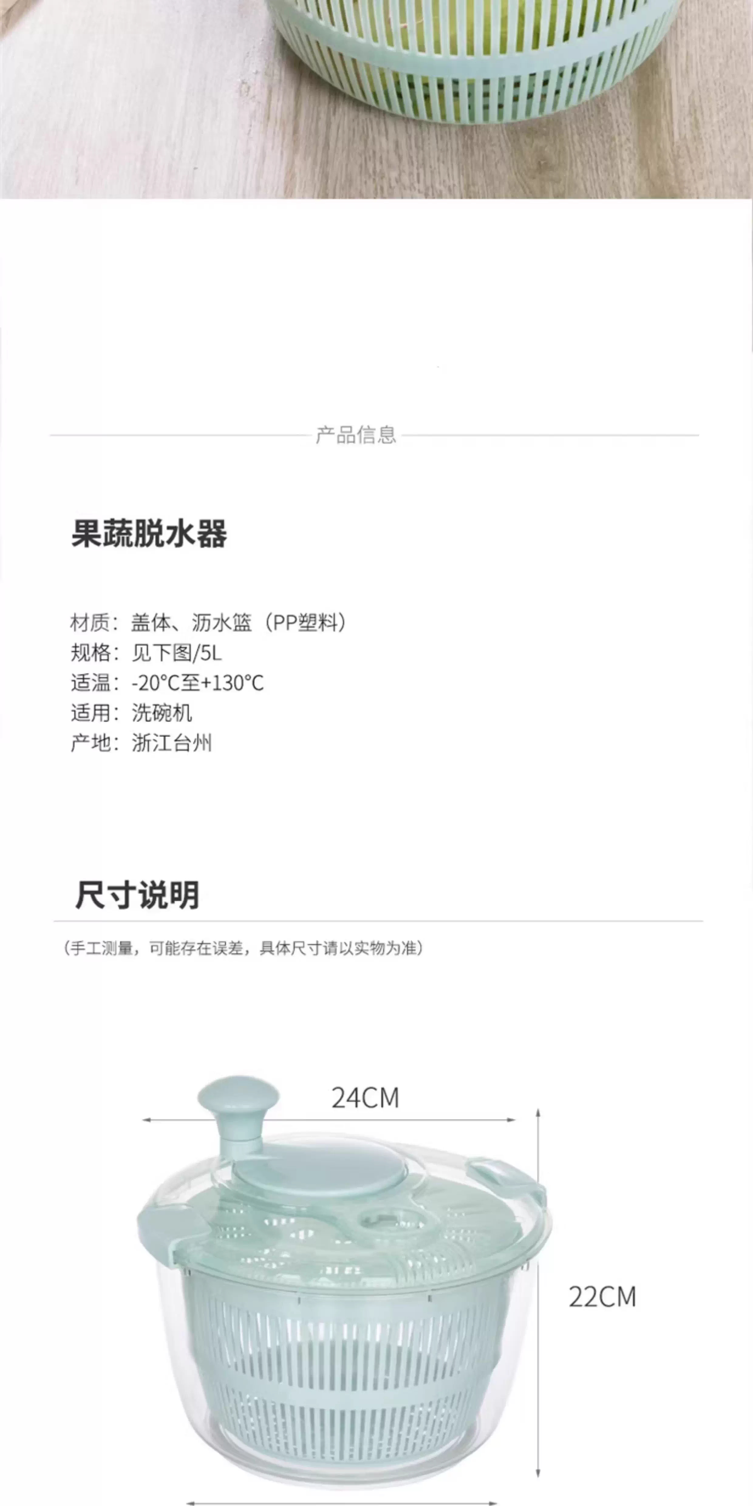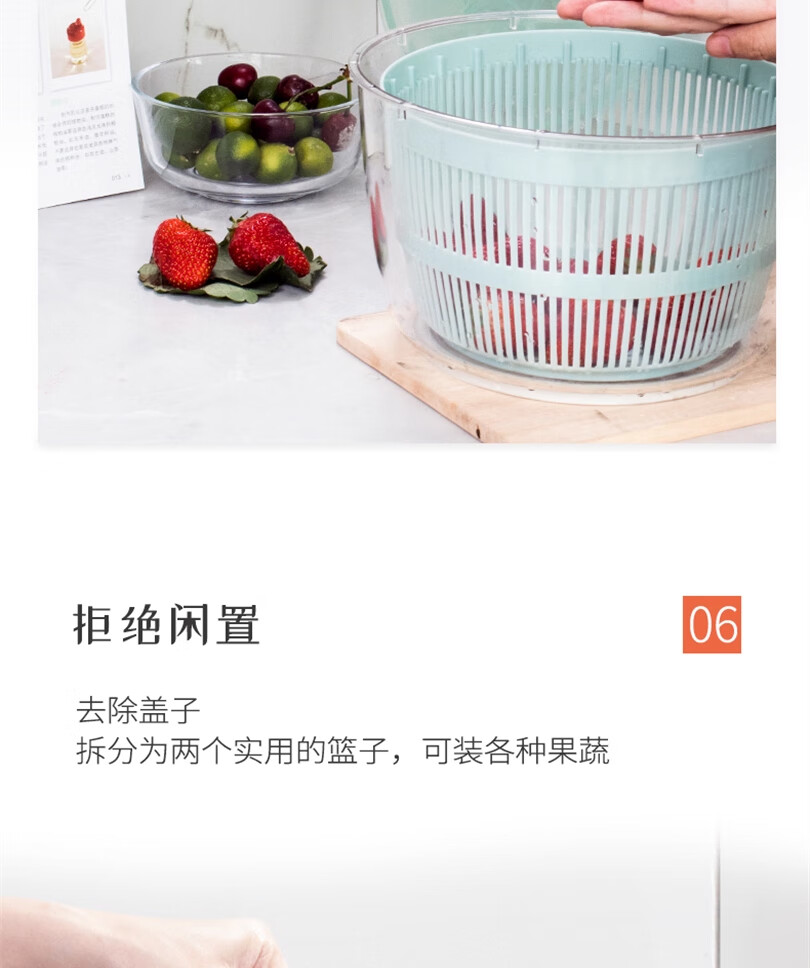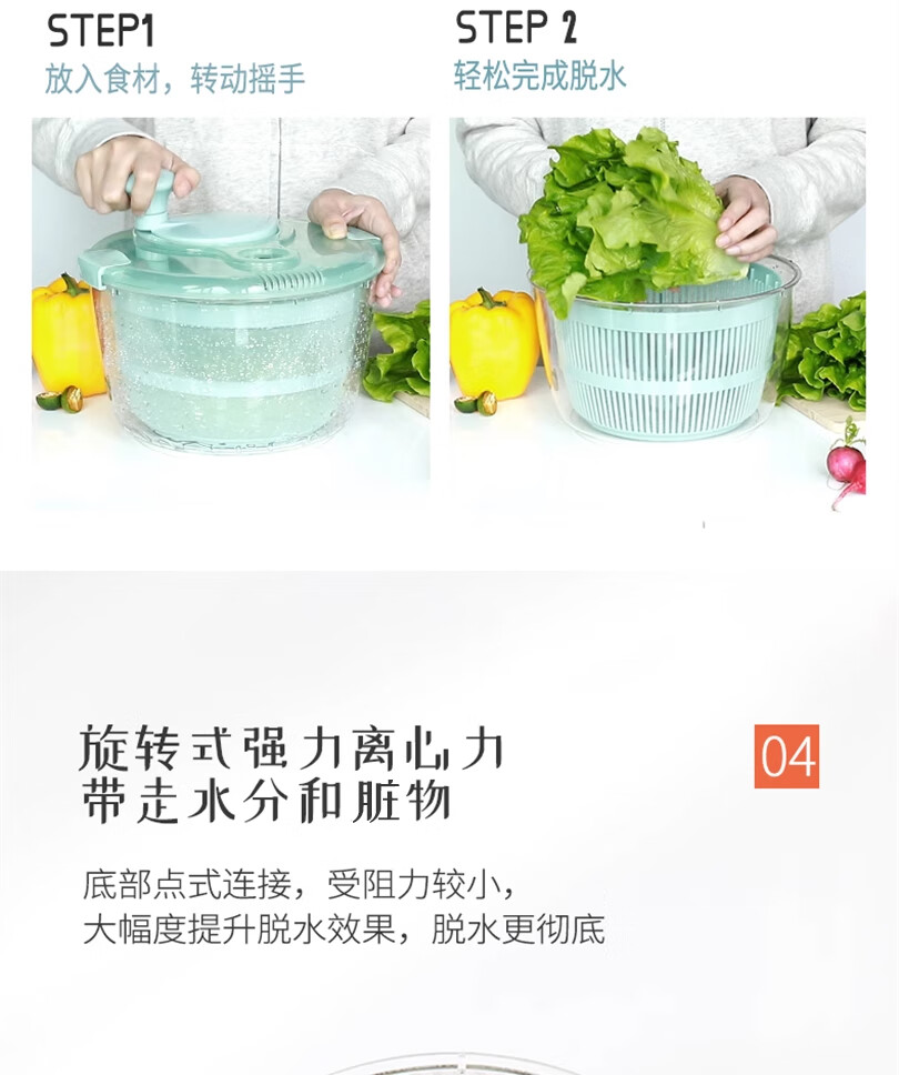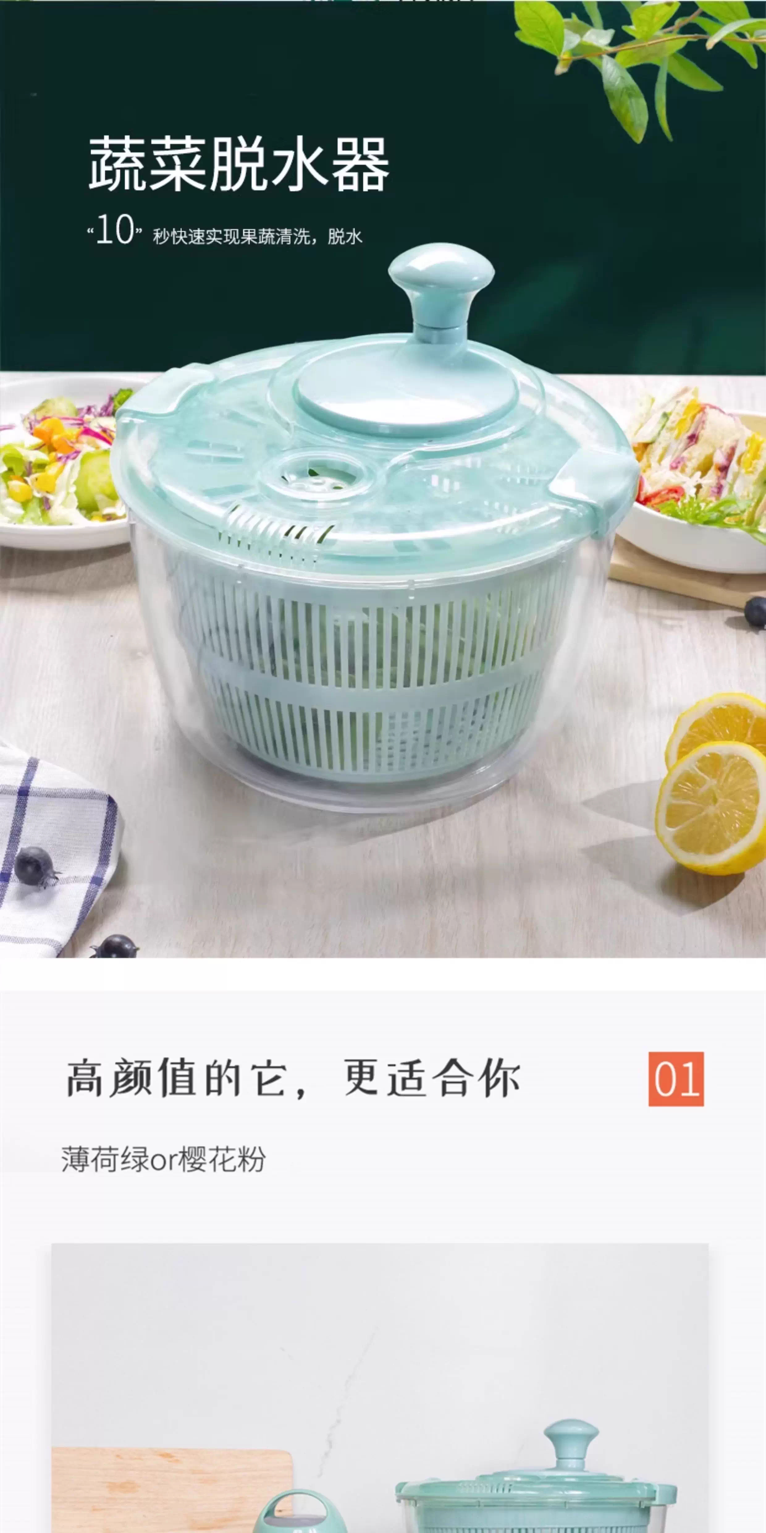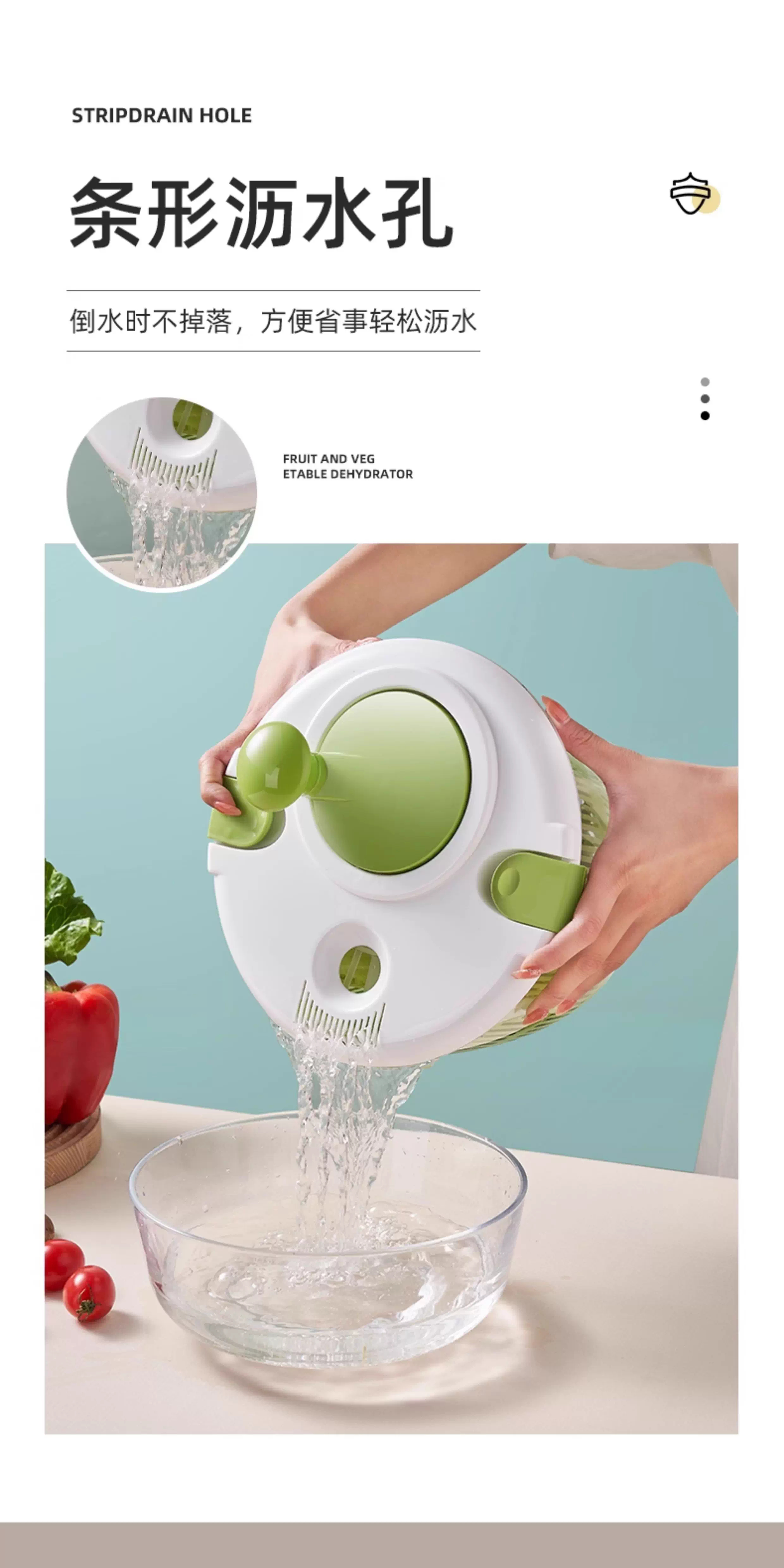 Lechilai Salad Vegetable Dehydrator Household Drainage and Dryer Fruit Manual Water Drier Basket Kitchen Tools Vegetable Basin Artifact Thickened Large 5L Clear Blue Multi-Function Drainer Salad Plate