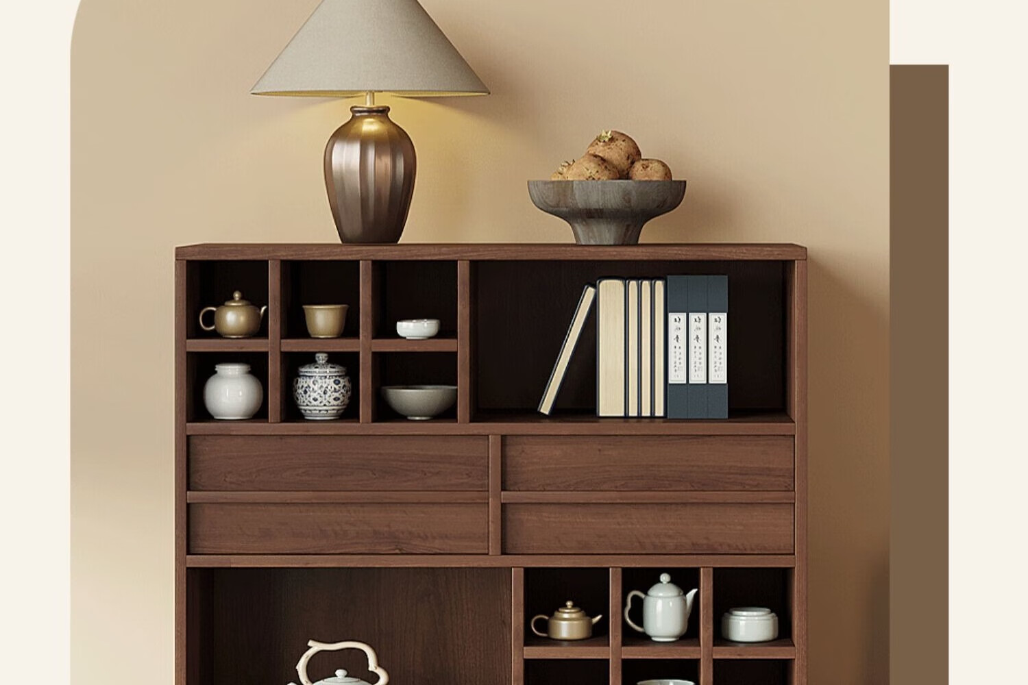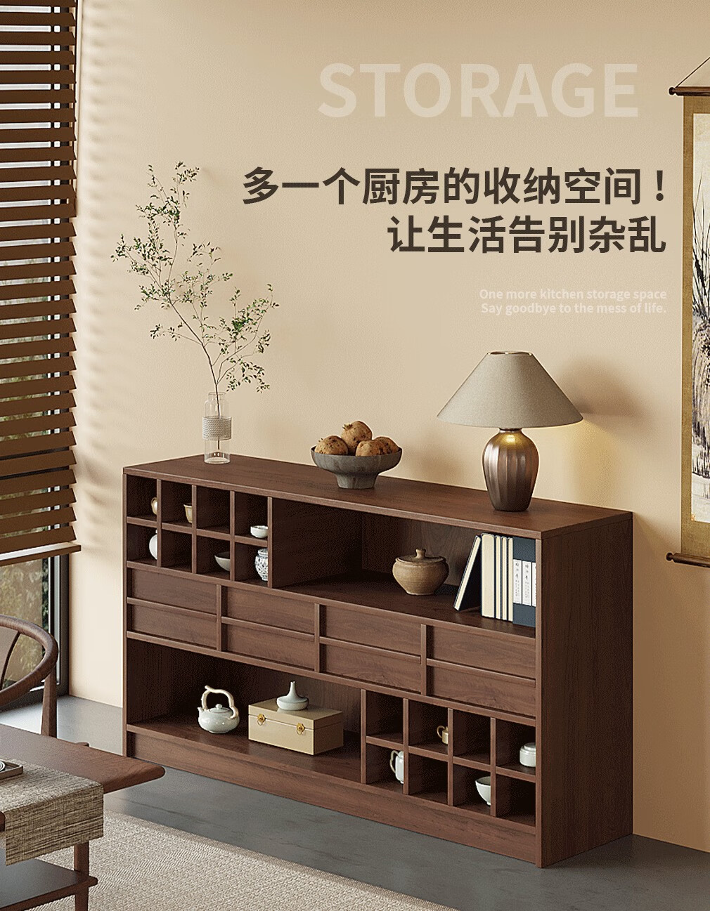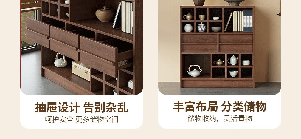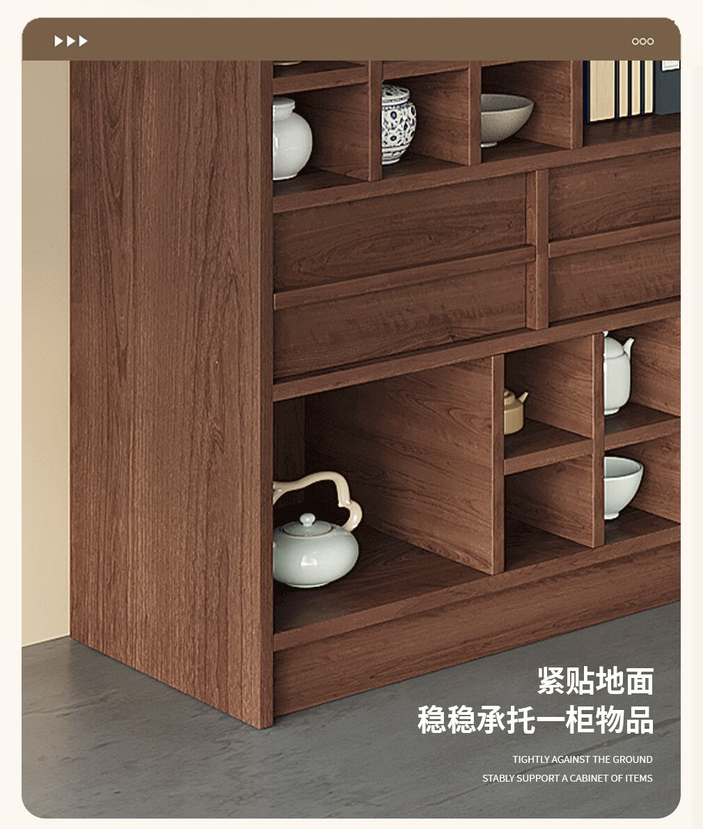 Translated Chinese style solid wood archaic rack small tea cabinet tea set storage rack Duobaoge shelf simple modern storage cabinet low cabinet walnut color archaic cabinet-100*40*90cm solid wood + package installation