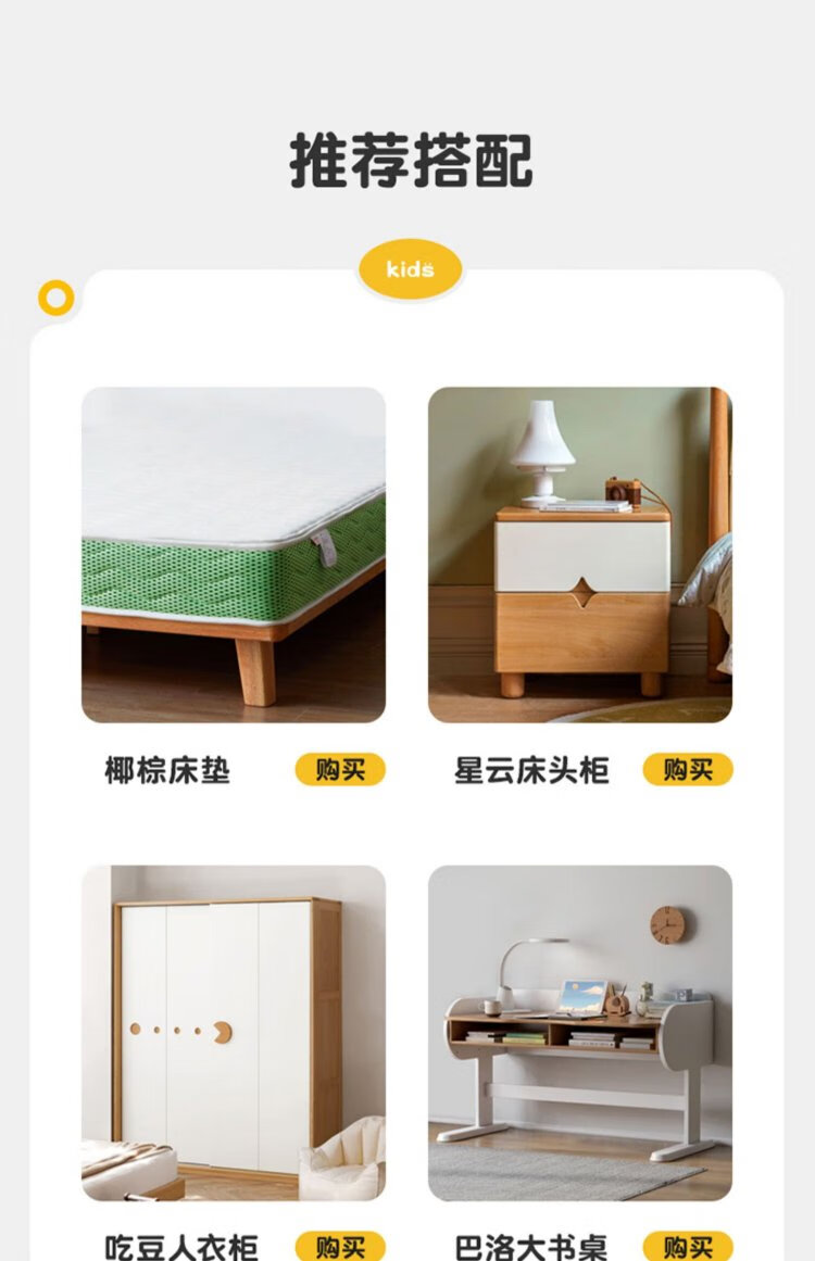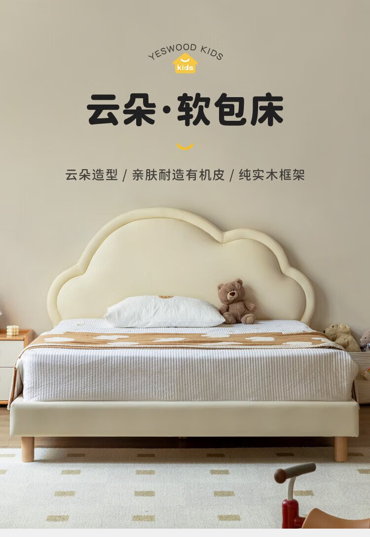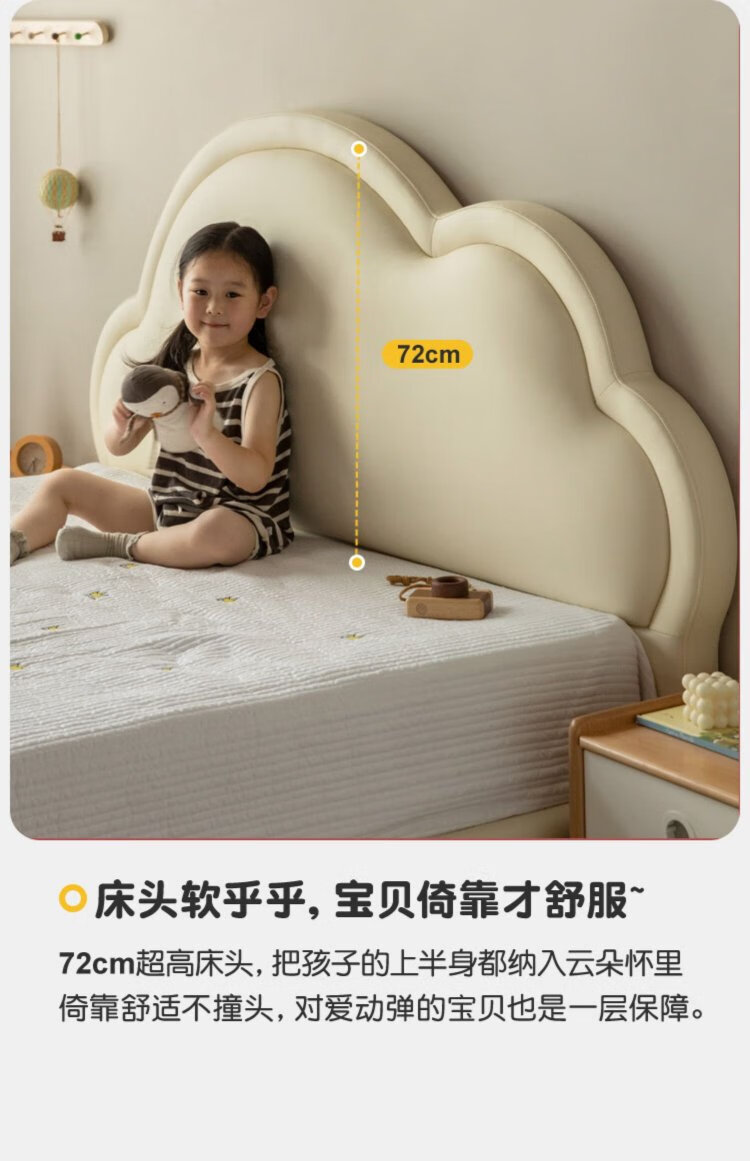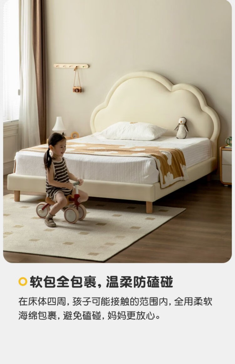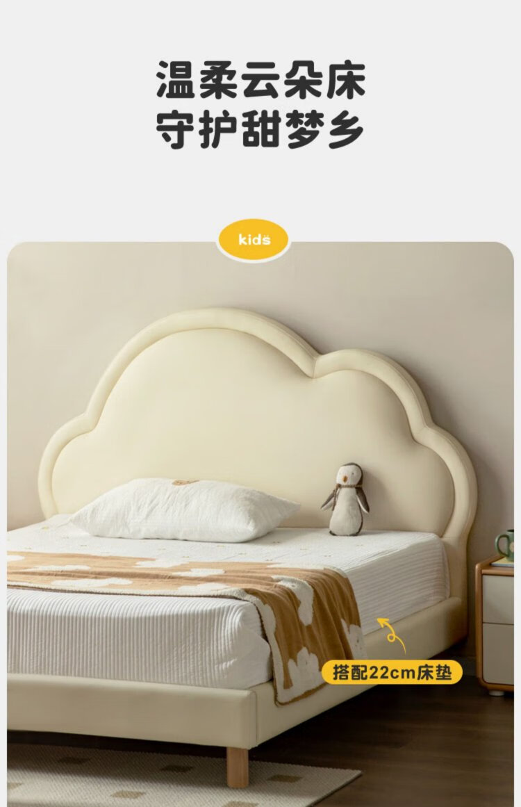 Genji Muyu children's furniture solid wood children's bed boy single bed modern simple solid wood soft bed cloud bed girl princess bed furniture children's bed + mattress (22cm thick J31 hard H2) 1500mm*2000mm