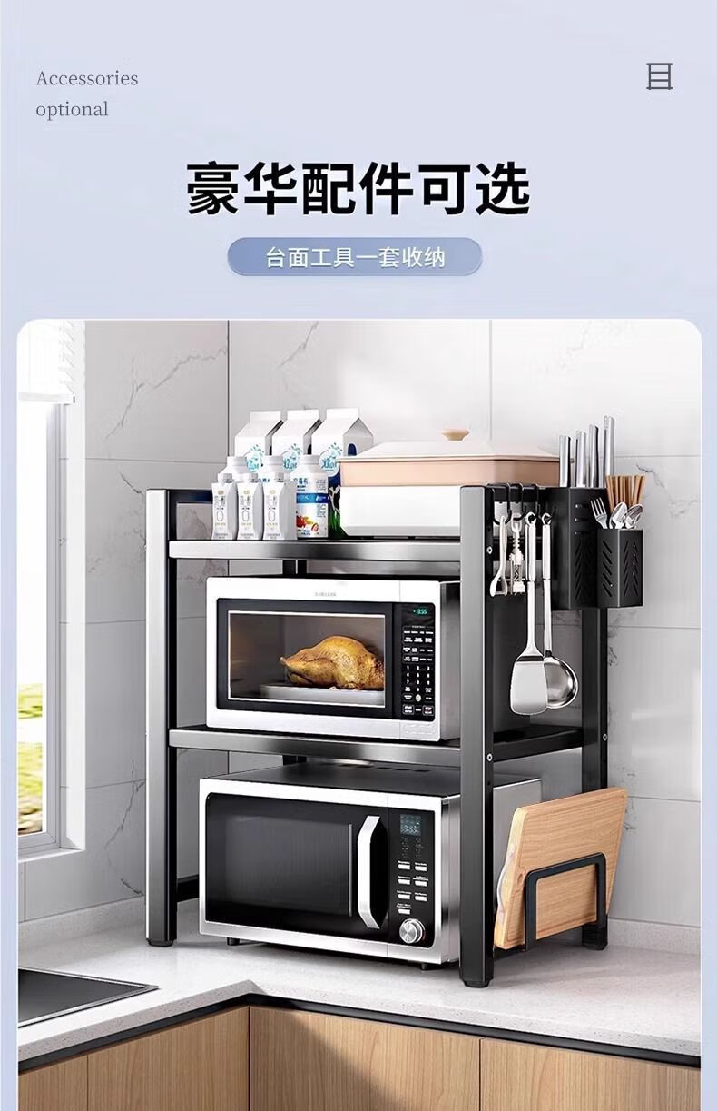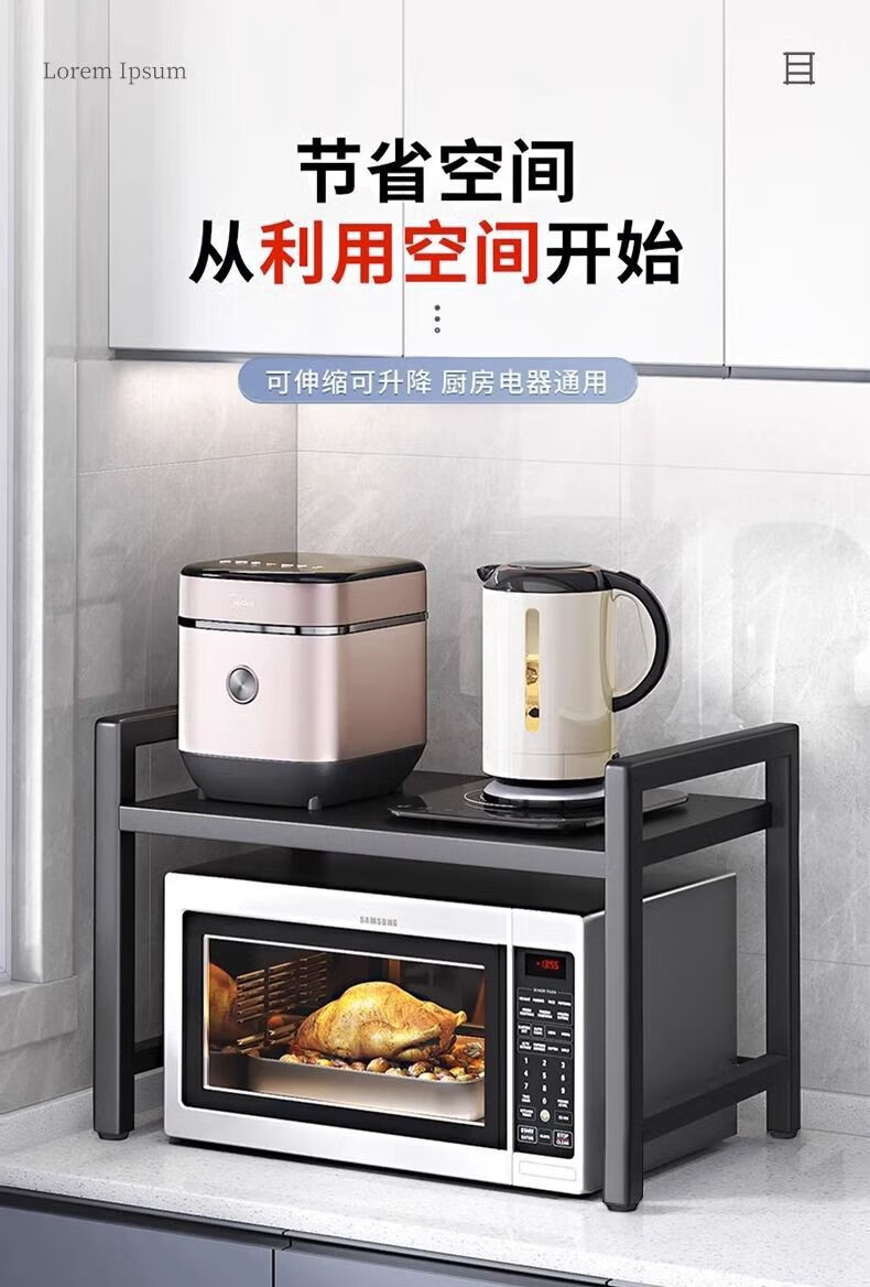 Kitchen microwave oven rack retractable table-mounted rice cooker stand countertop single layer non-retractable hook