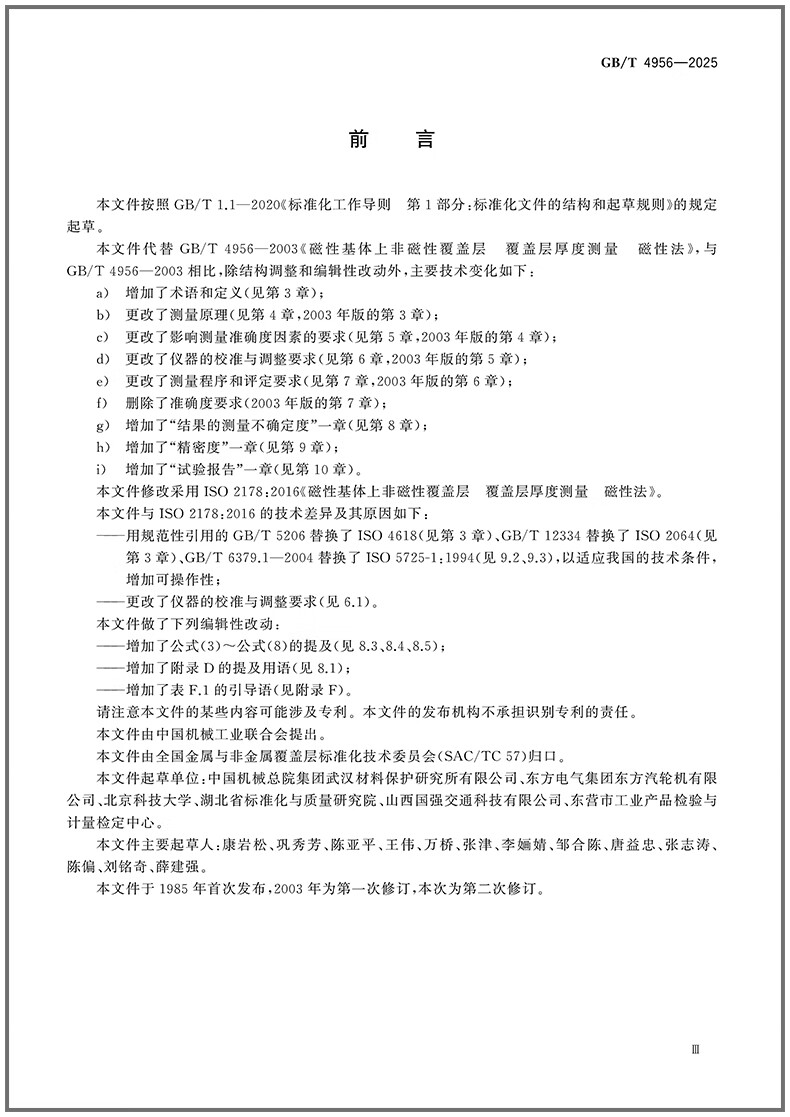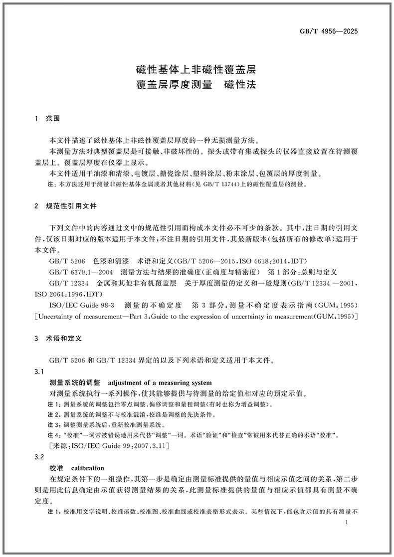 GB/T 4956-2025 Non-magnetic coating on magnetic substrate - Measurement of coating thickness - Magnetic method