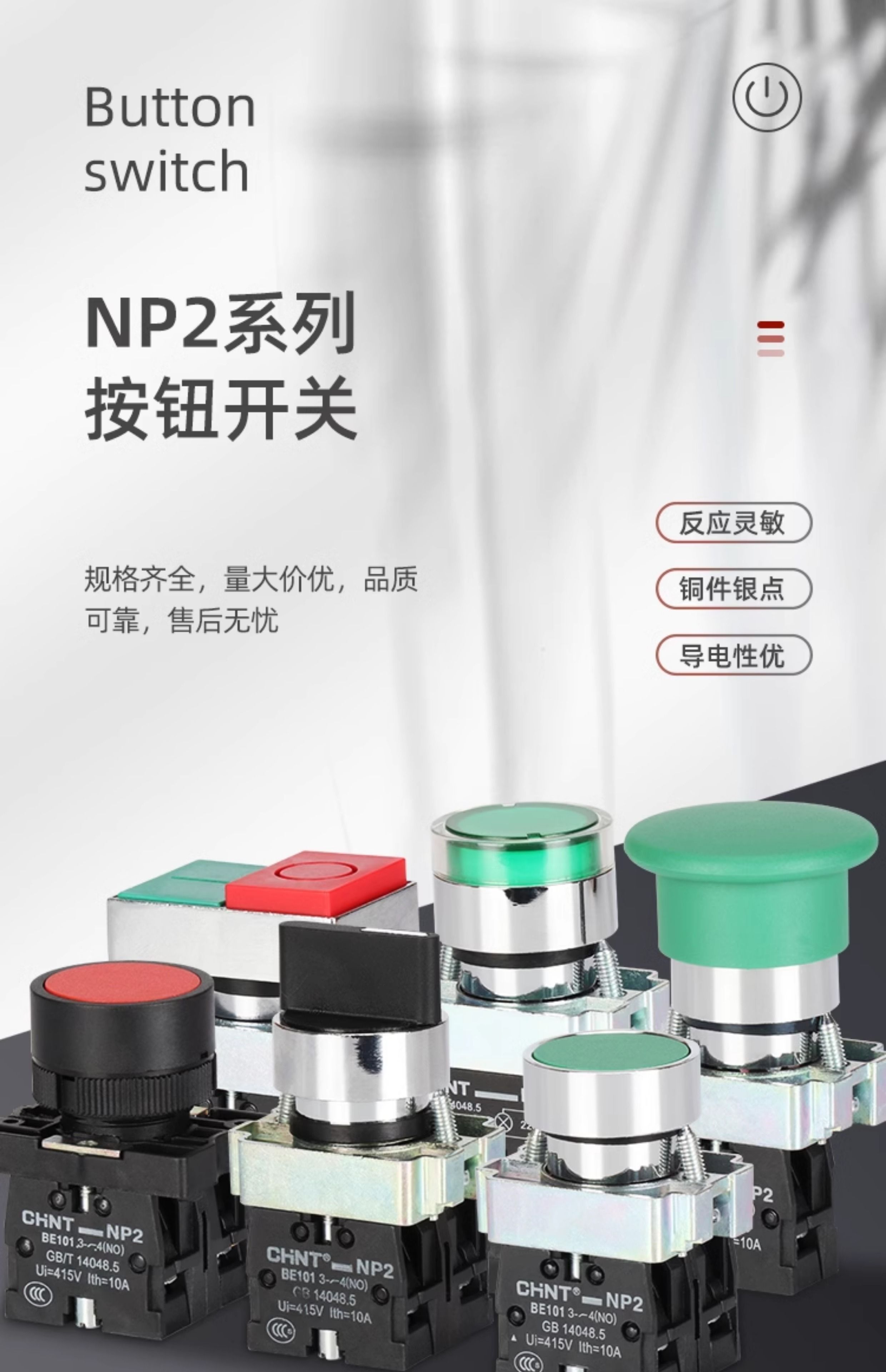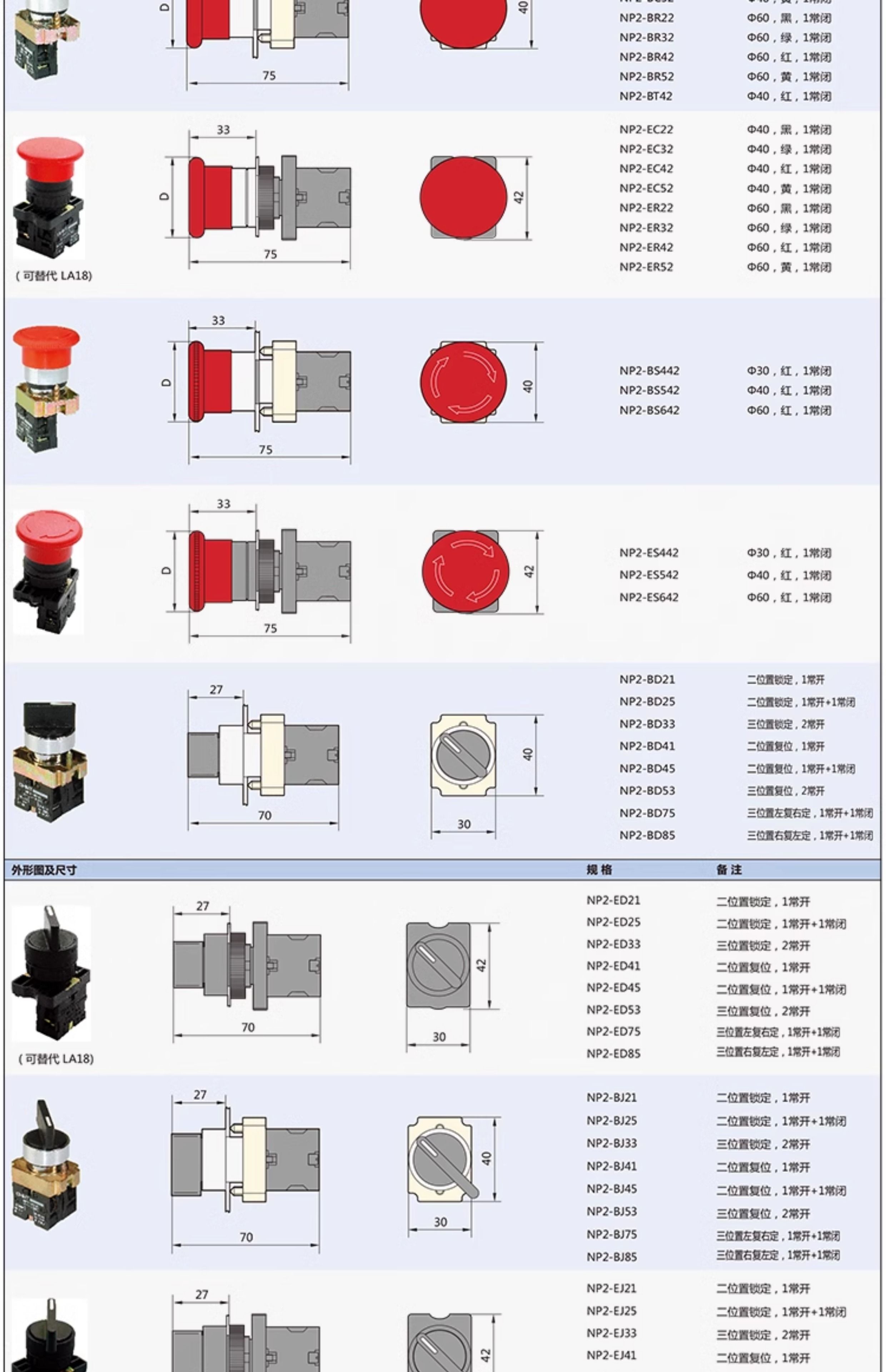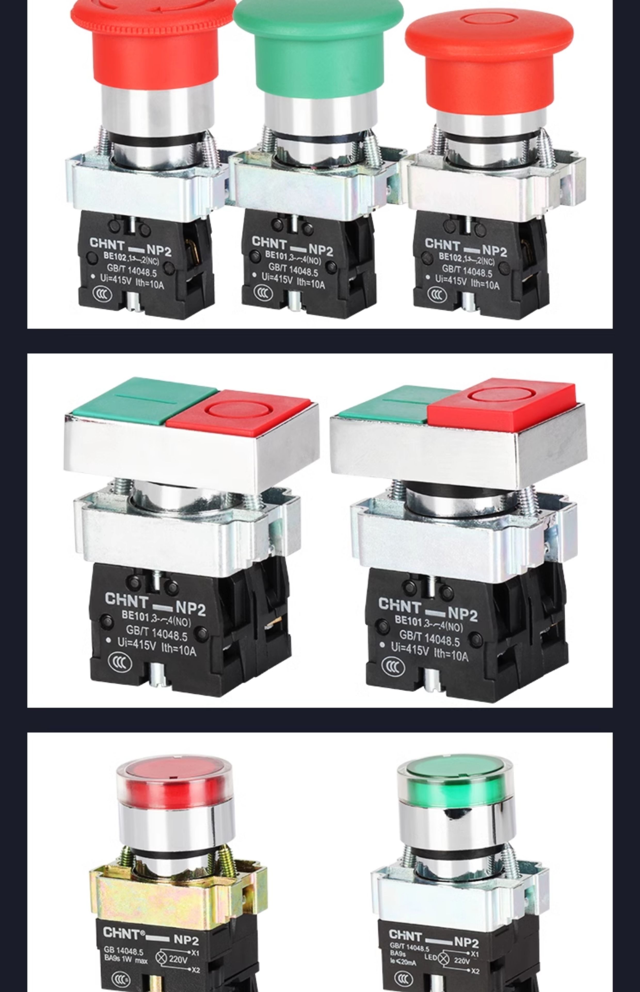 Chint push button switch NP2 self-covering self-locking mushroom head high button start switch two-speed knob rotating button NP2-BD21