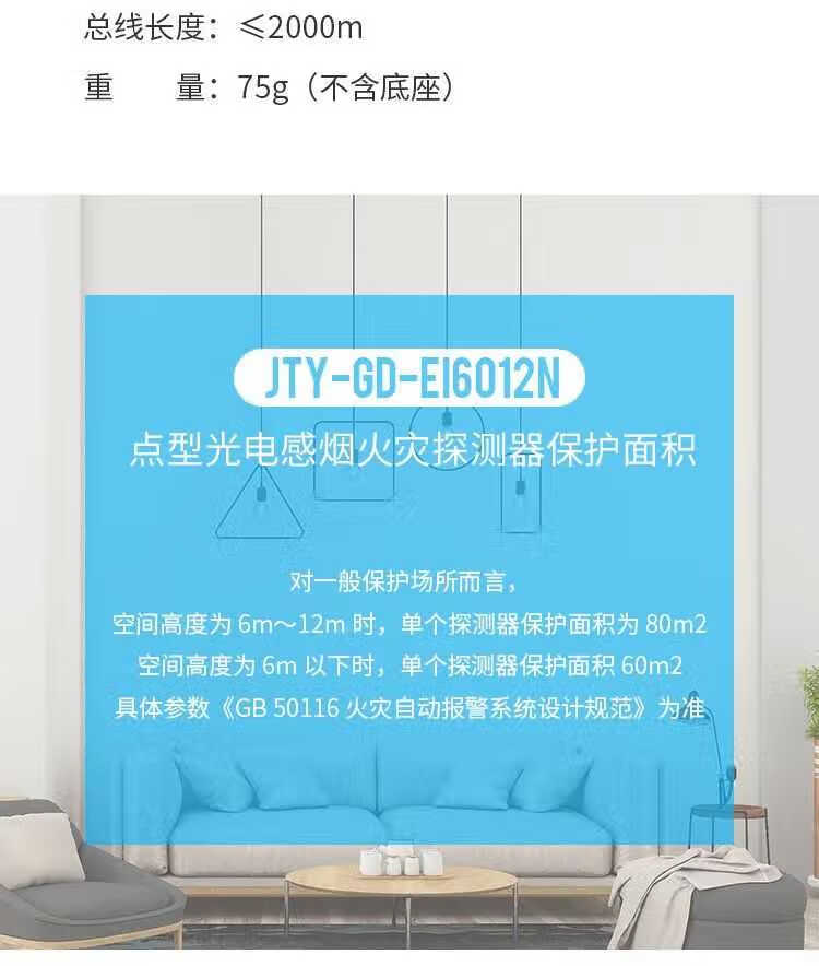 EI smoke alarm JTY-GD-EI6012N/S point type photoelectric smoke fire detector alarm EI6012 smoke detector (without base)
