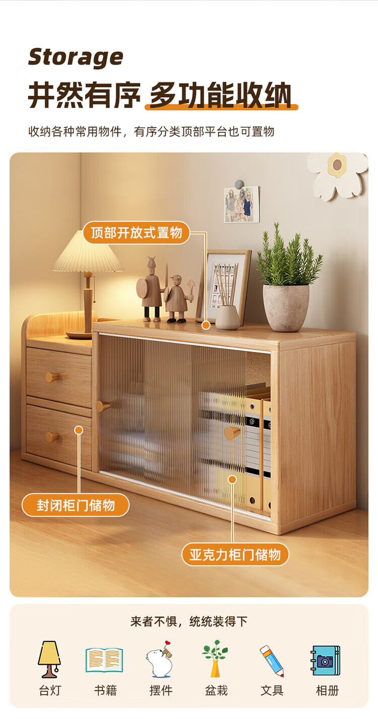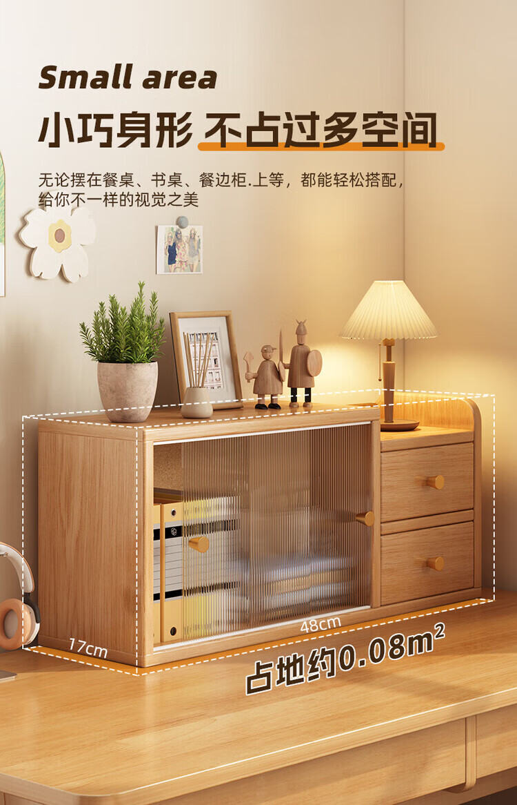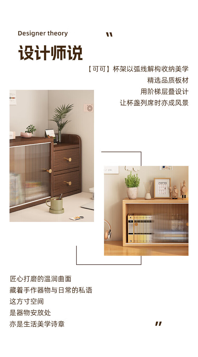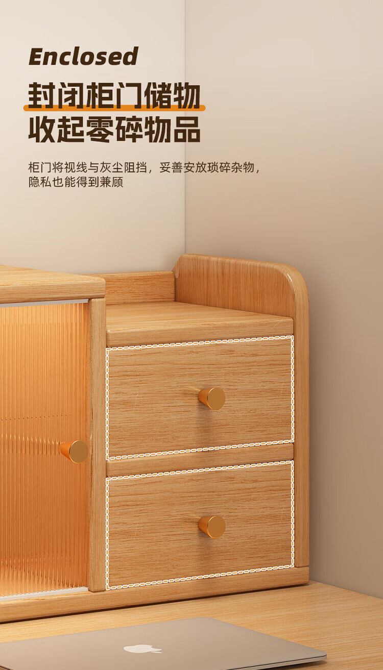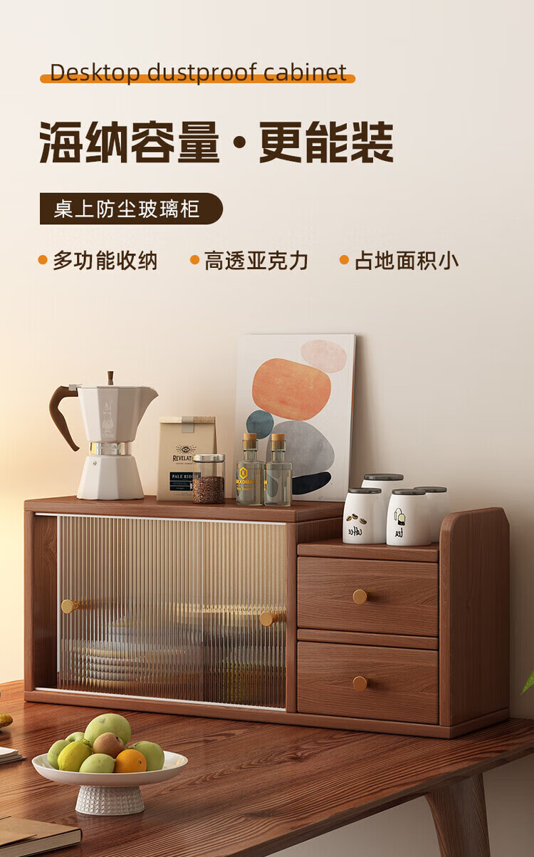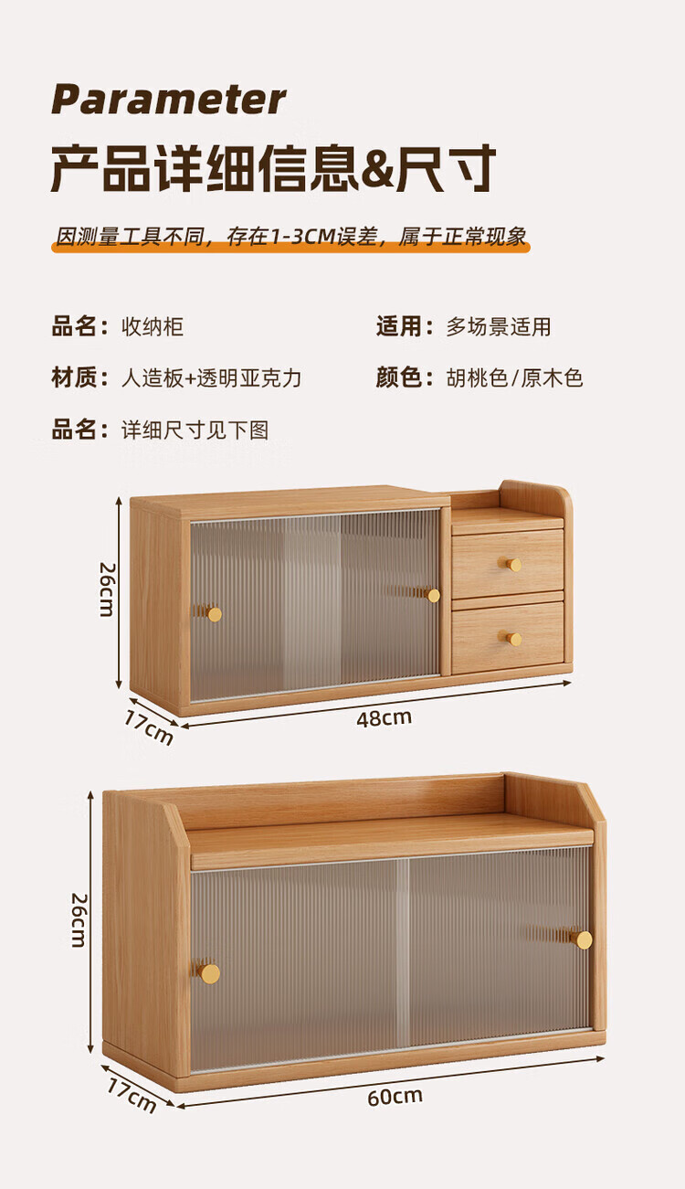 Desktop storage cabinet storage rack cosmetics storage box dressing table storage cabinet desk display cabinet bookshelf North American black walnut color double layer 60