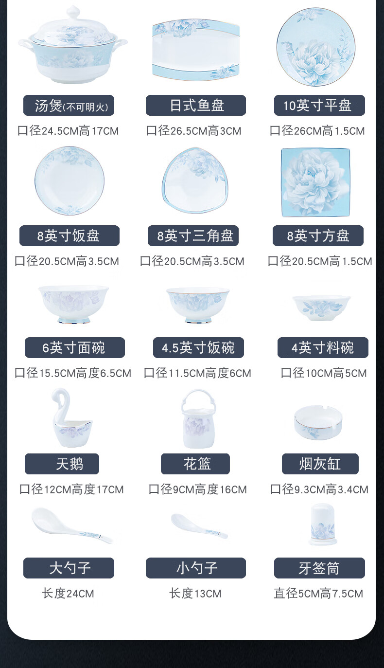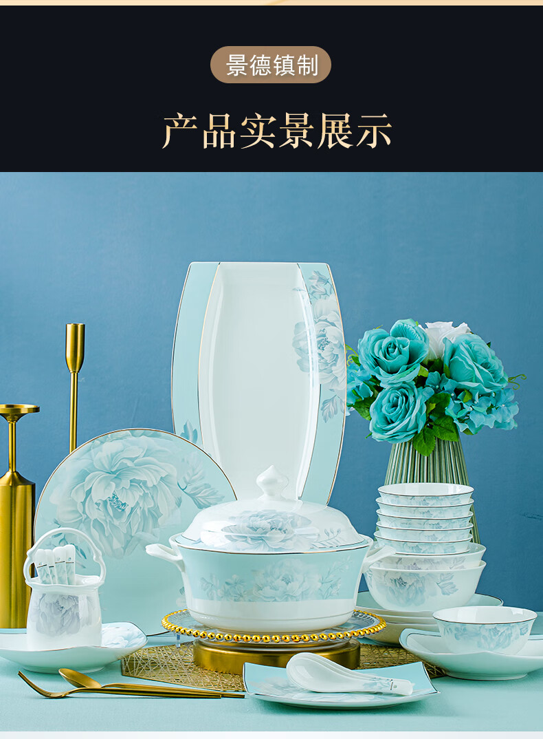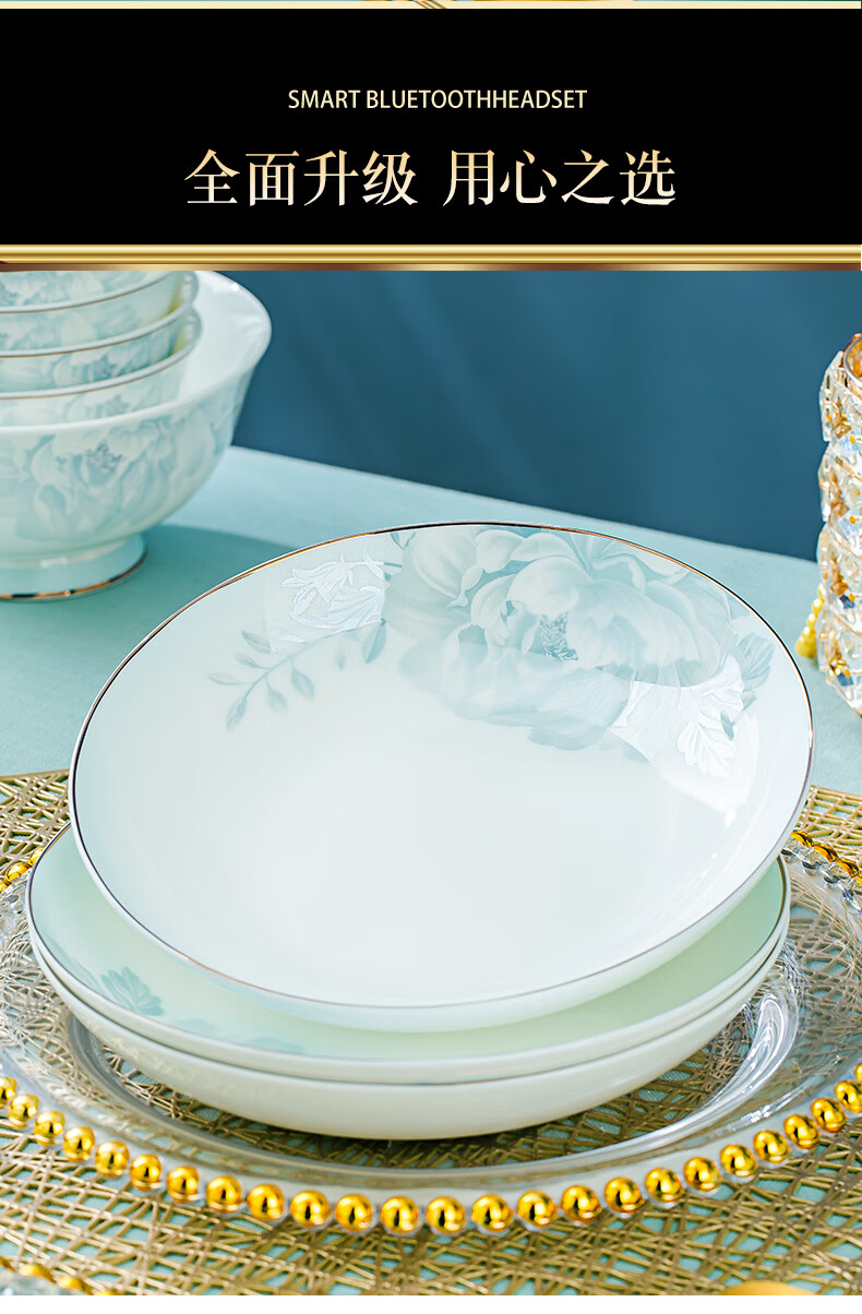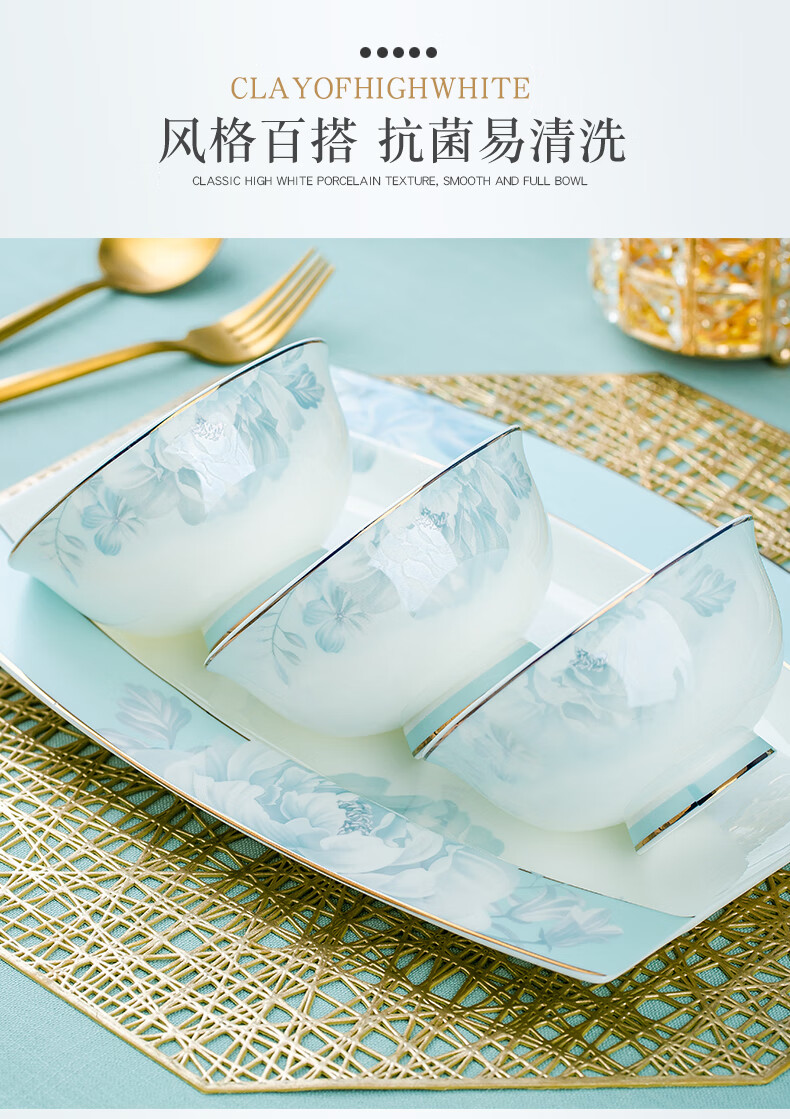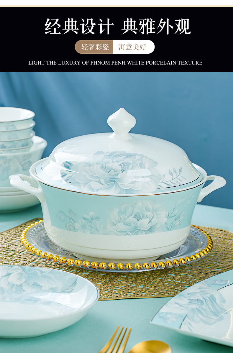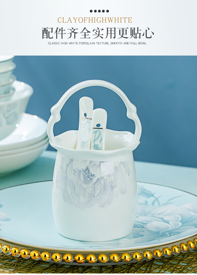 Meiyuan 2024 new style bowl and dish set for home Jingdezhen Chinese style light luxury housewarming ceramic bowls and chopsticks tableware plates 38-piece moonlight peony soup bowl configuration
