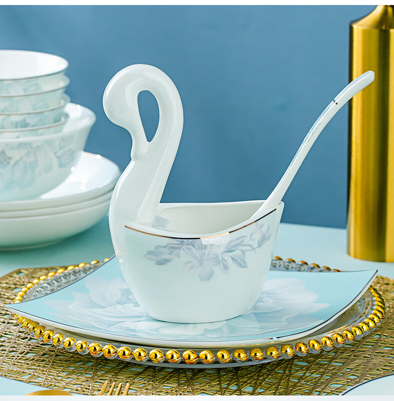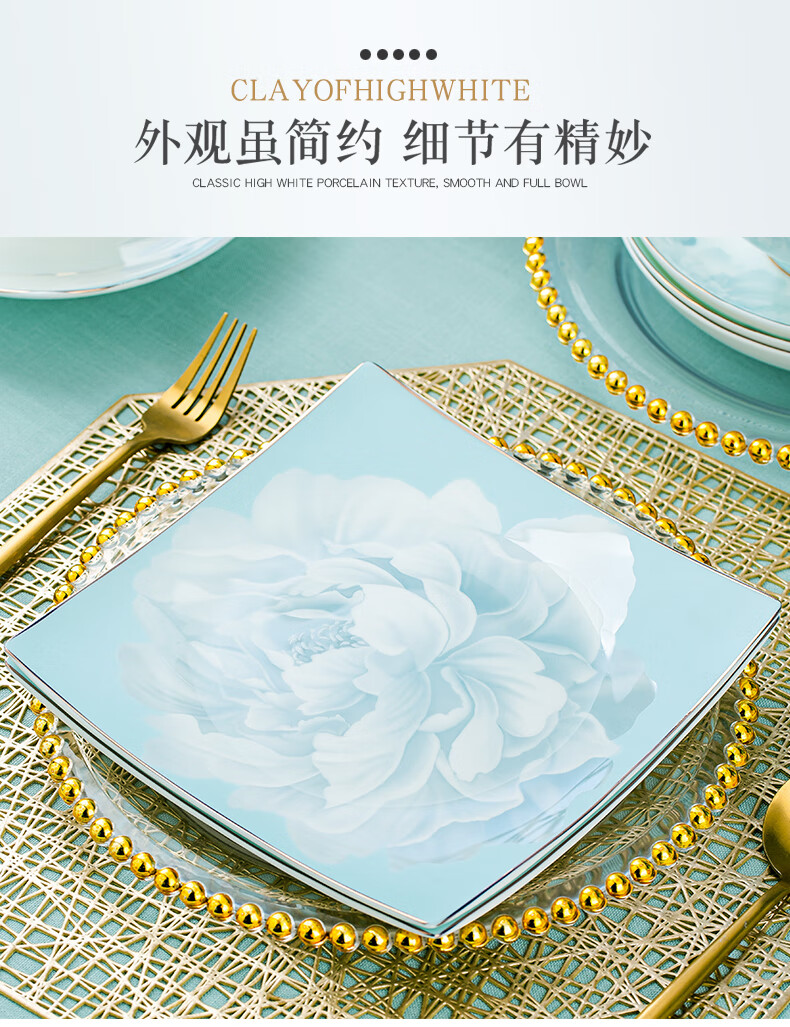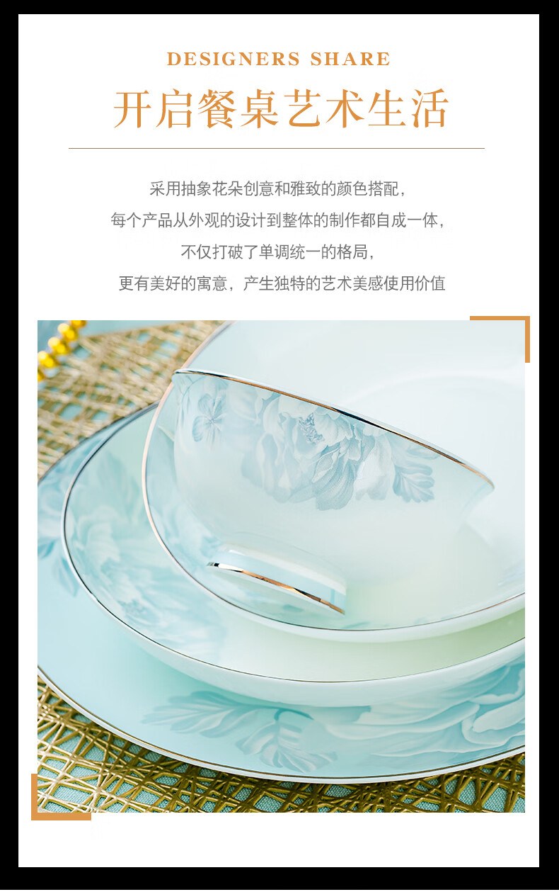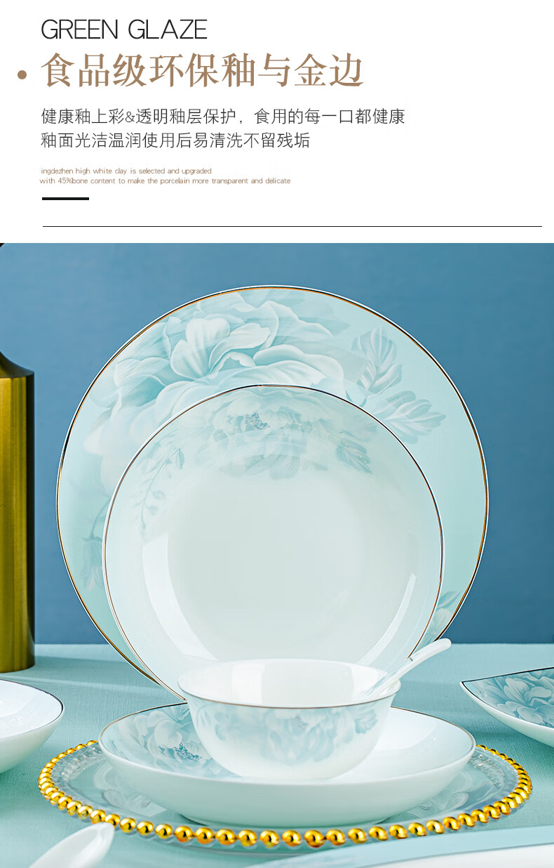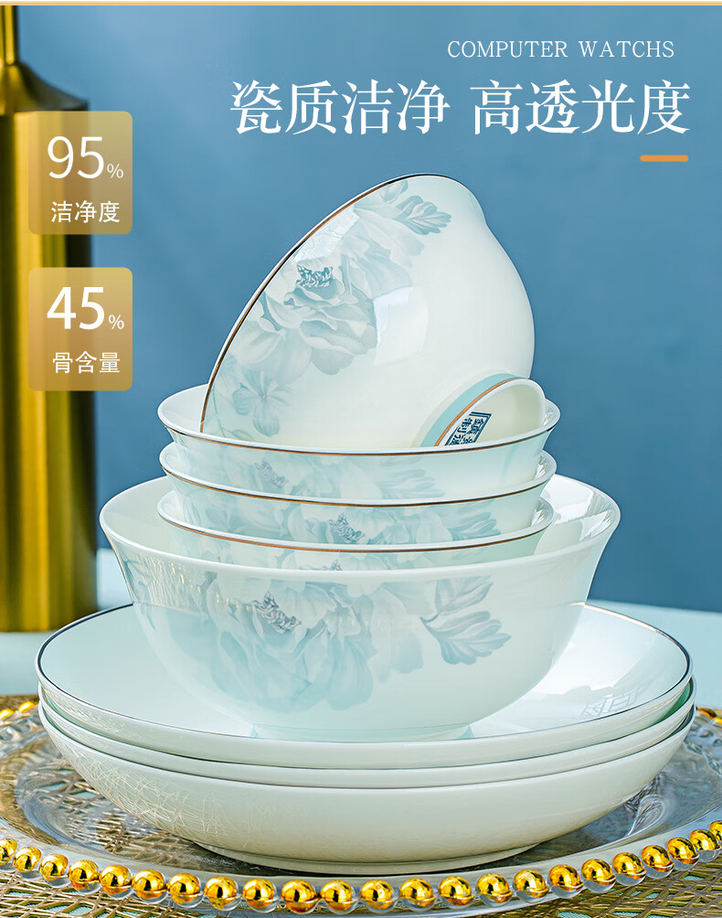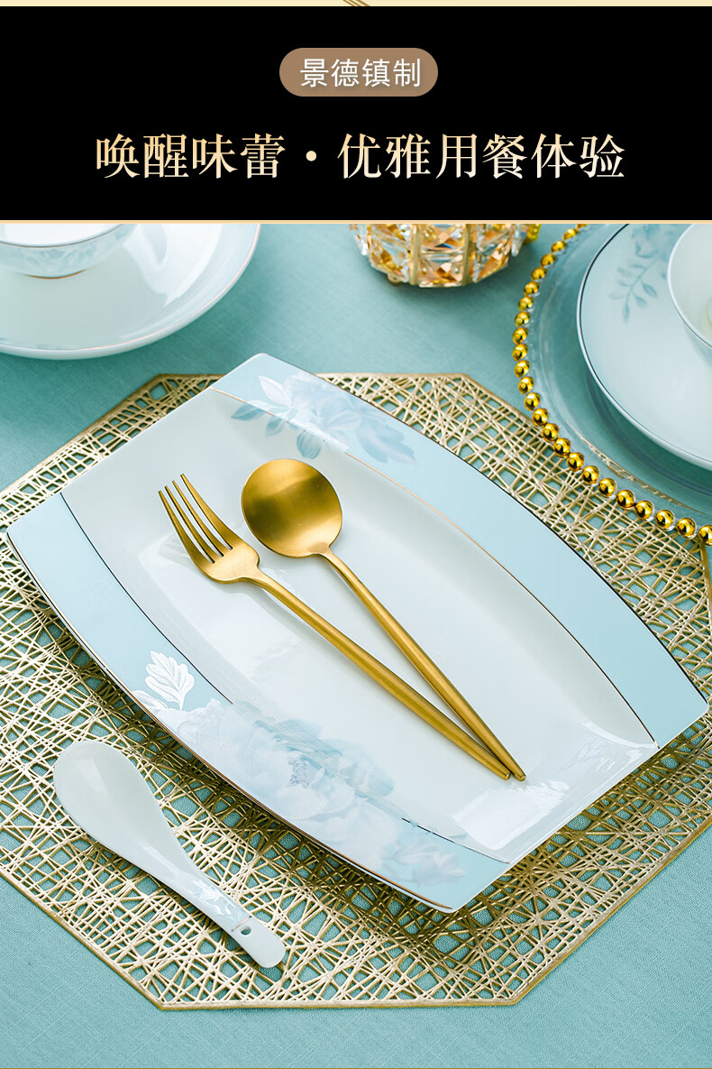 Meiyuan 2024 new style bowl and dish set for home Jingdezhen Chinese style light luxury housewarming ceramic bowls and chopsticks tableware plates 38-piece moonlight peony soup bowl configuration