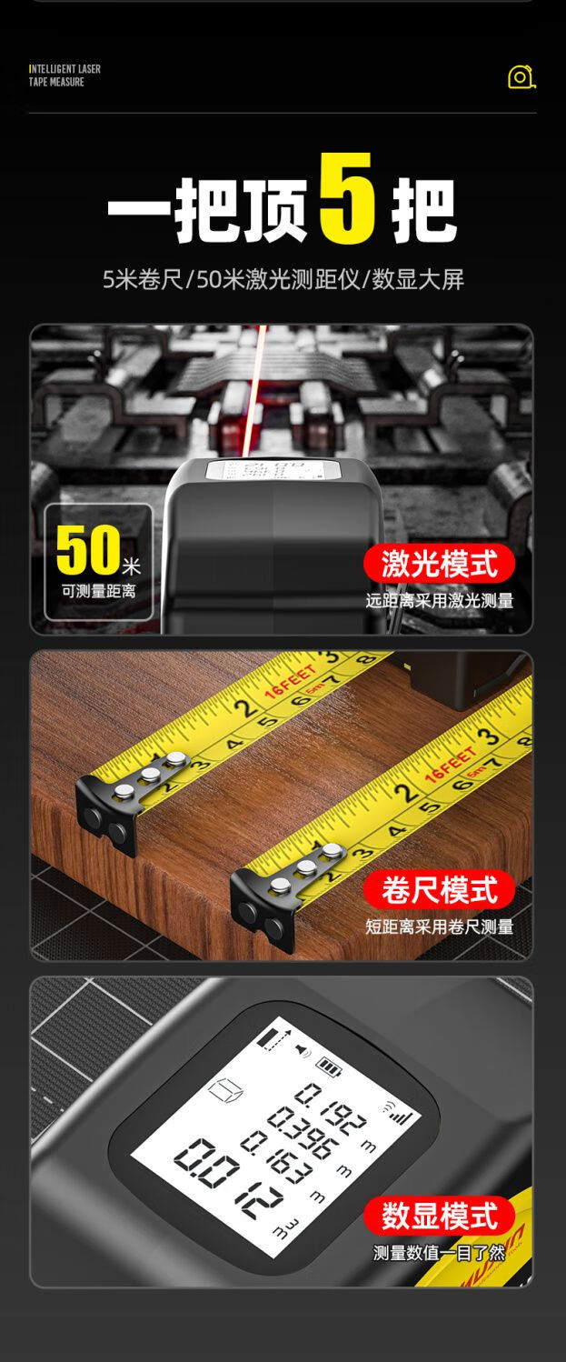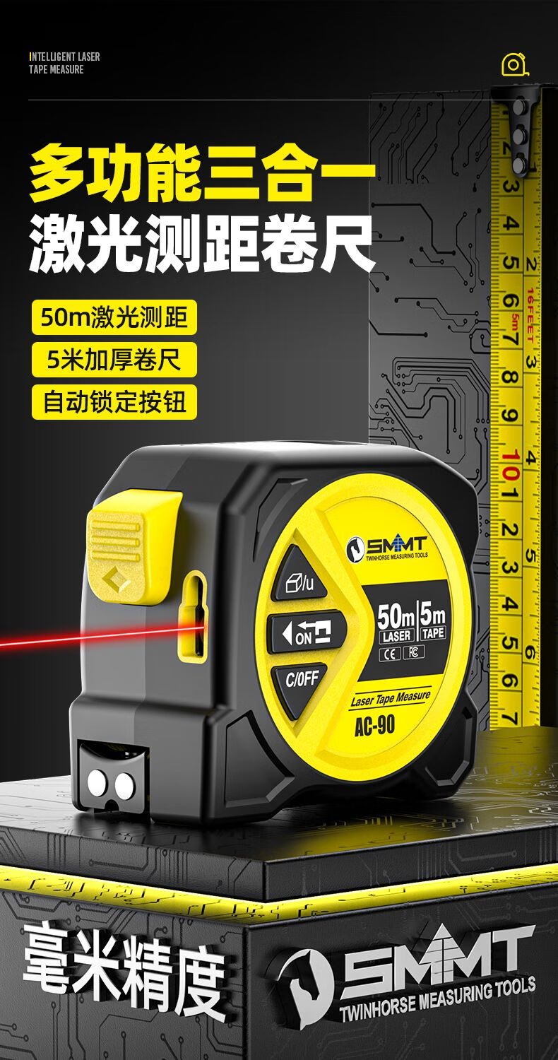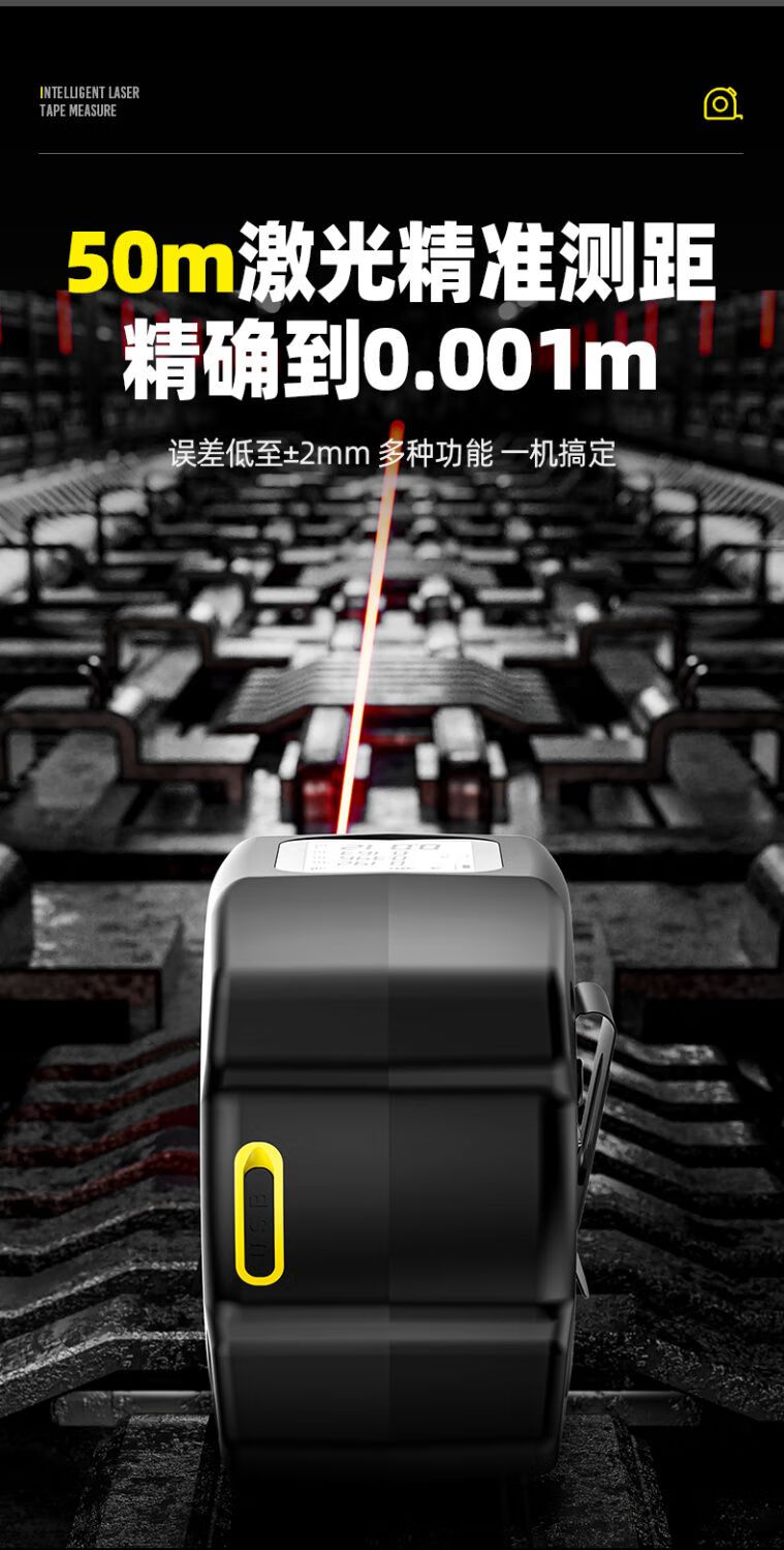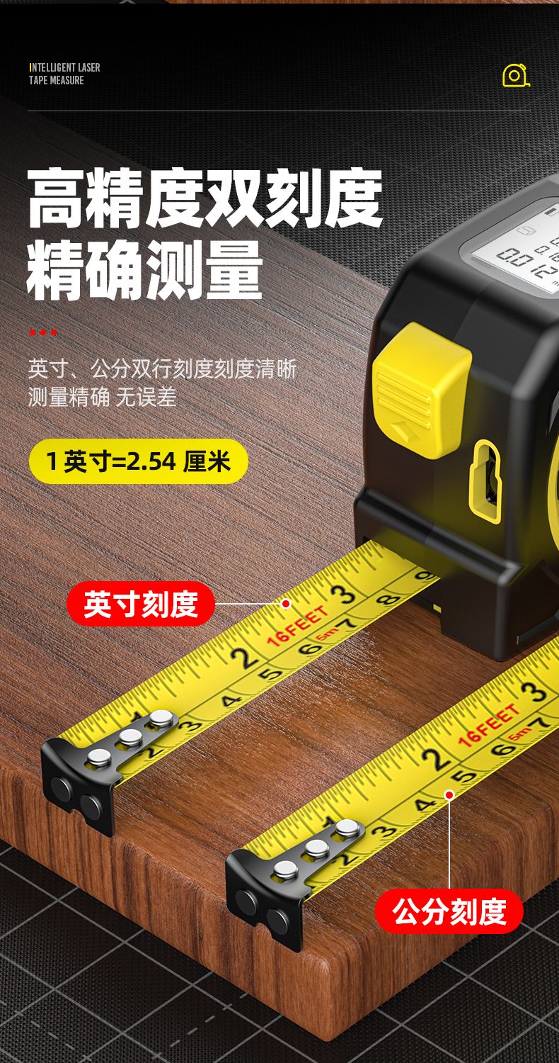 FANCYCHIC dual-horse portable multi-function laser distance meter, metric and inch double tape measure, three-in-one high-precision measuring ruler, compact 50-meter laser distance meter, 50M laser distance measurement + 5M metric and inch tape + multiple measurement modes